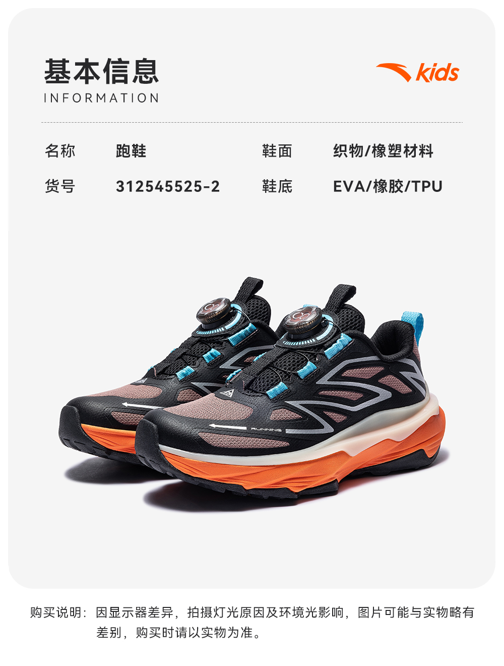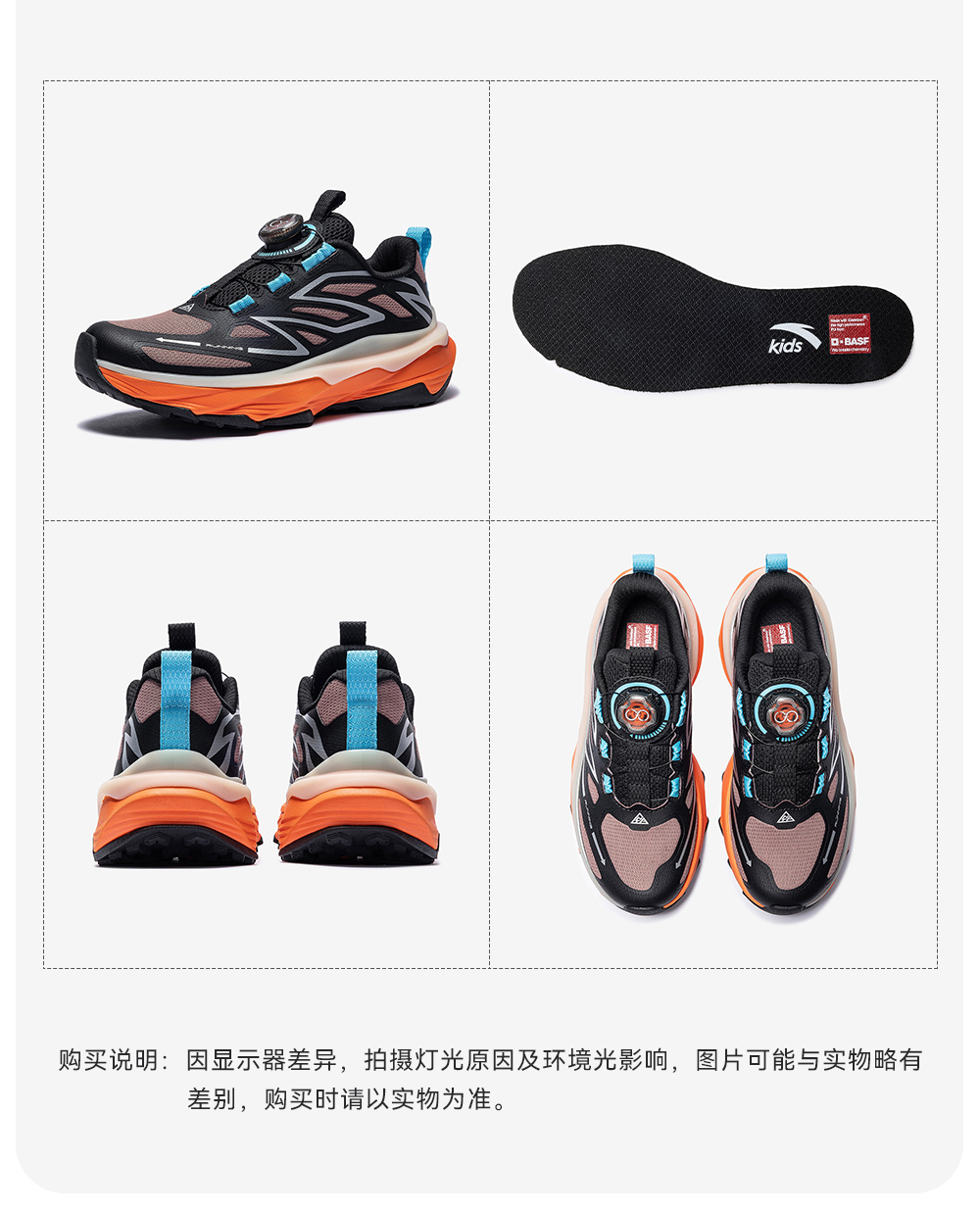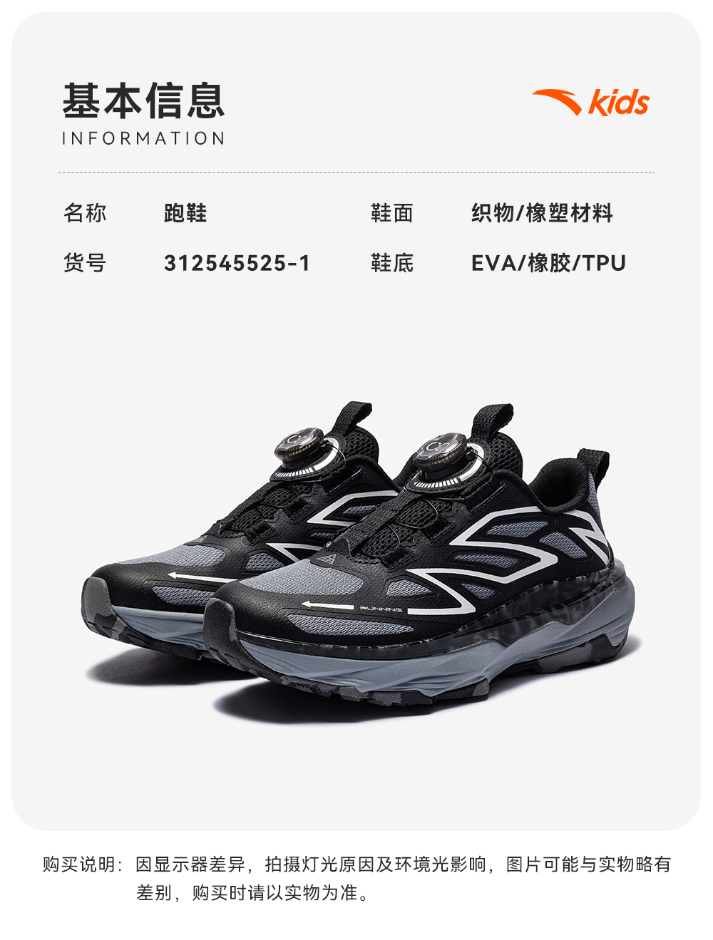 安踏童鞋儿童男大童跑鞋2025秋冬款户外徒步登山跑步旋钮运动鞋312545525