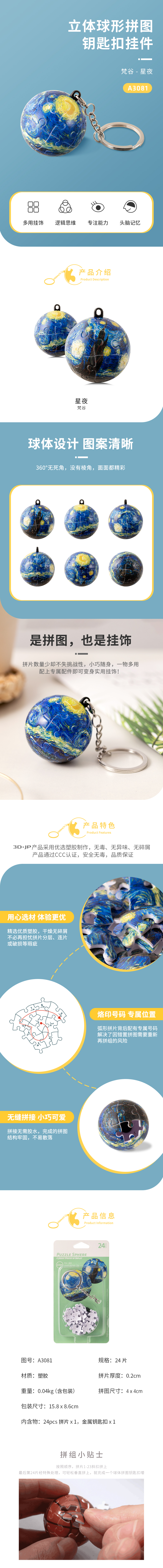 24片 钥匙扣拼图 塑料拼图 A3081 梵谷-星夜