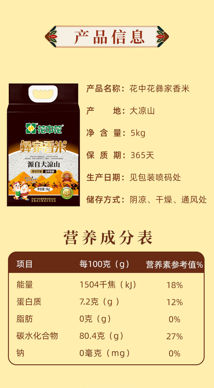 花中花 彝家香米 四川大米5kg 大凉山大米10斤真空装