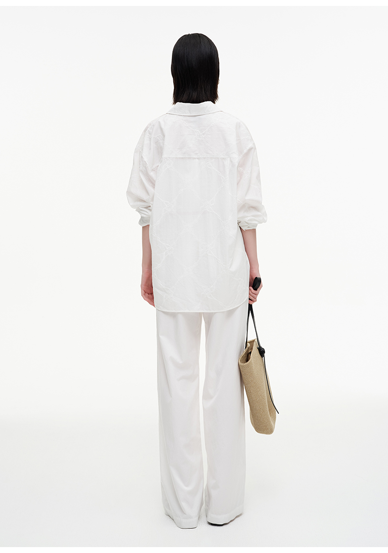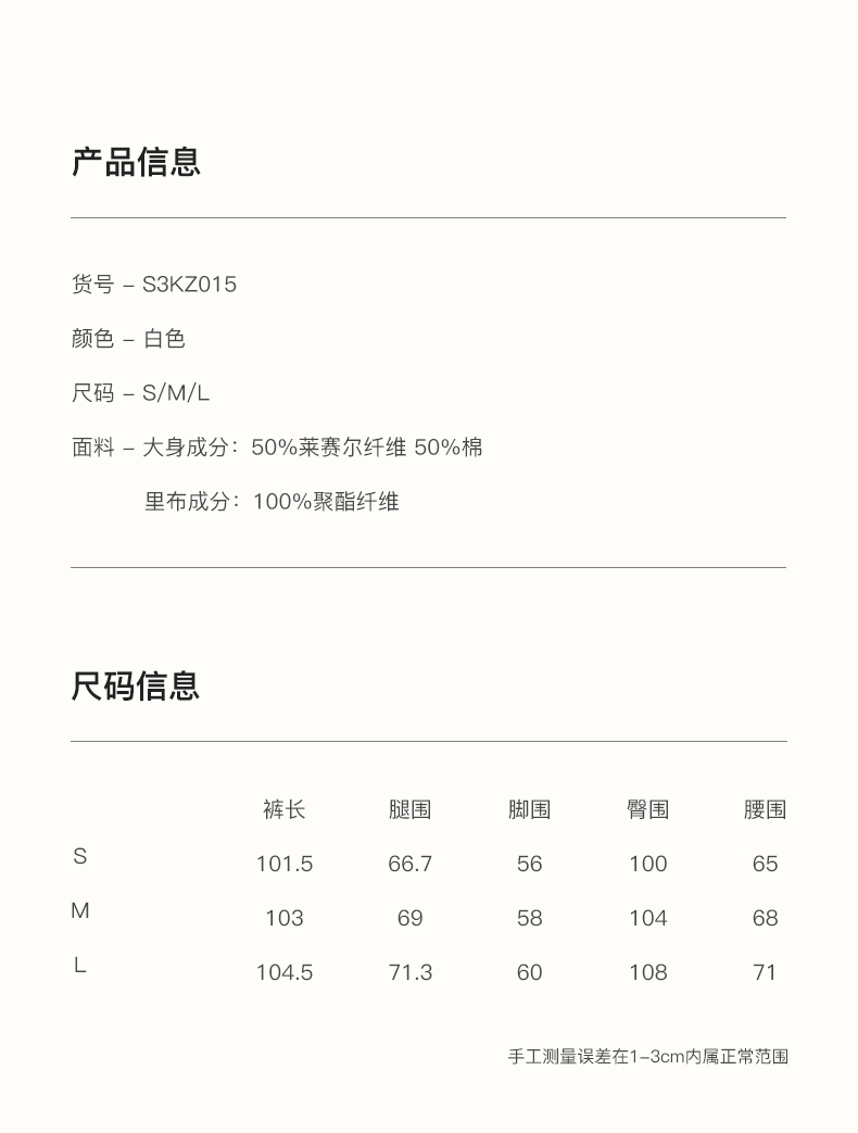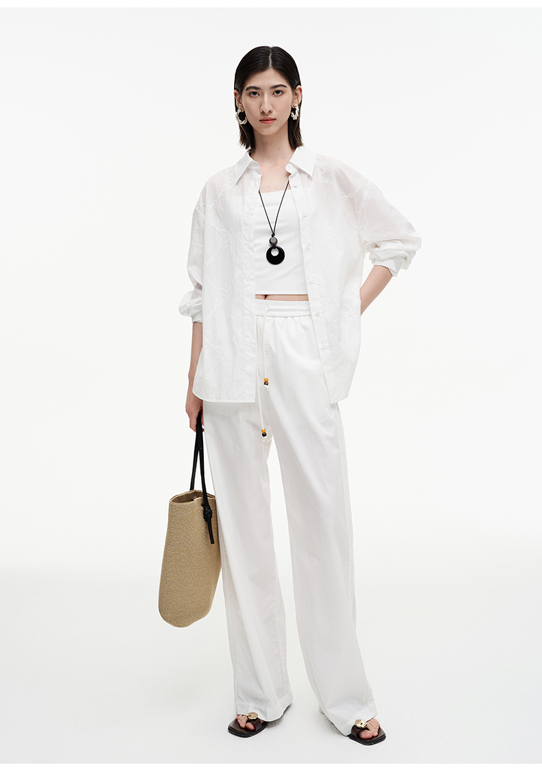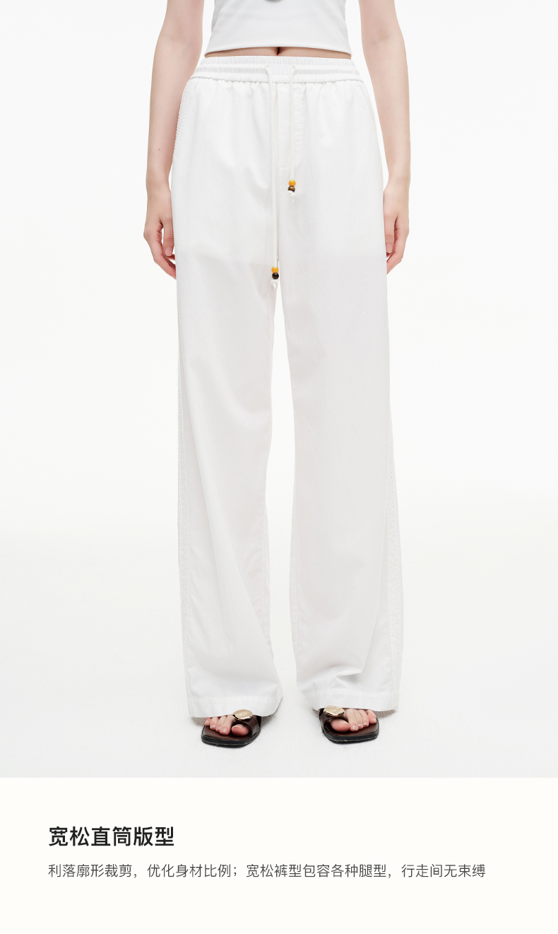 SELFWHO绿绒蒿系列莱赛尔棉白色休闲裤女2025秋季新款抽绳直筒裤