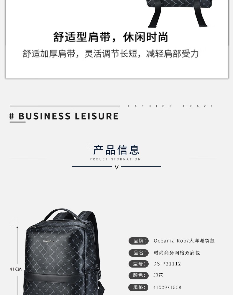 大洋洲袋鼠 休闲双肩包 DS-P21112
