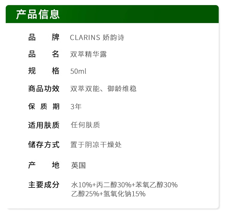 【一口价】Clarins 娇韵诗 双萃焕活修护精华 50ml 第九代清爽版
