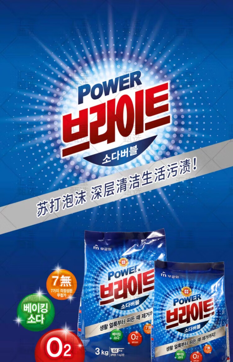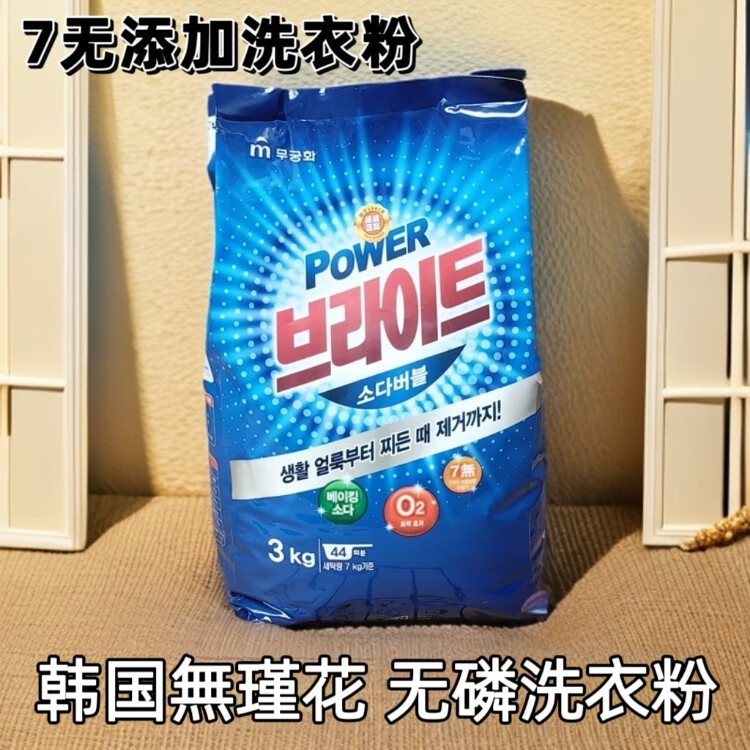 韩国进口無瑾花护色亮白强力去污去渍洗衣粉滚筒波轮通用无磷洗衣粉1kg/袋