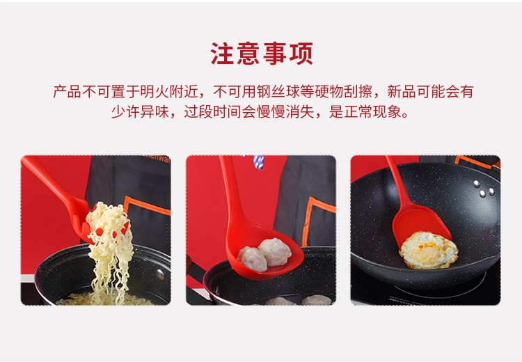 戴德生活馆Debo德铂瑞贝卡硅胶锅铲汤勺漏勺7件套红色厨房用具硅胶套装铲子
