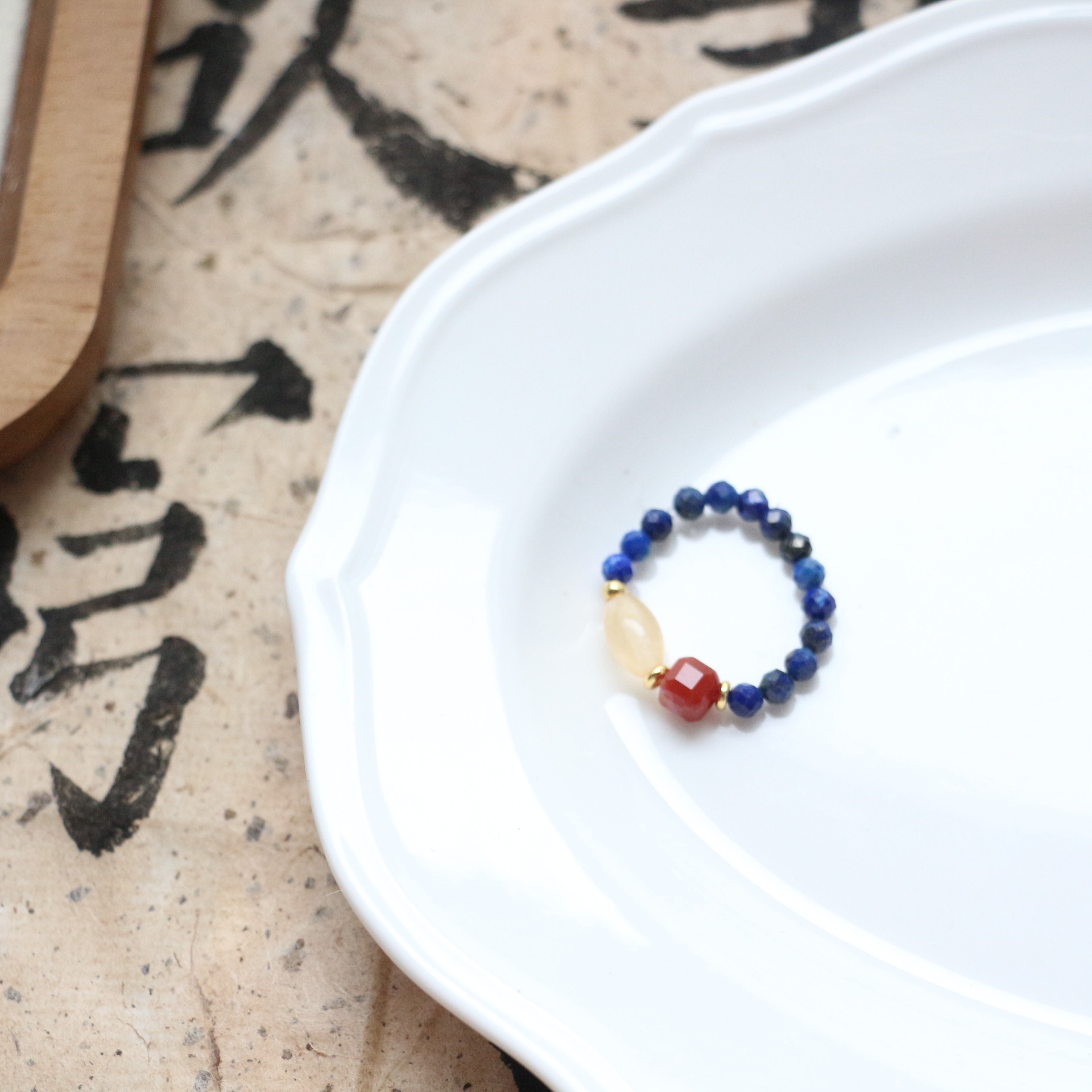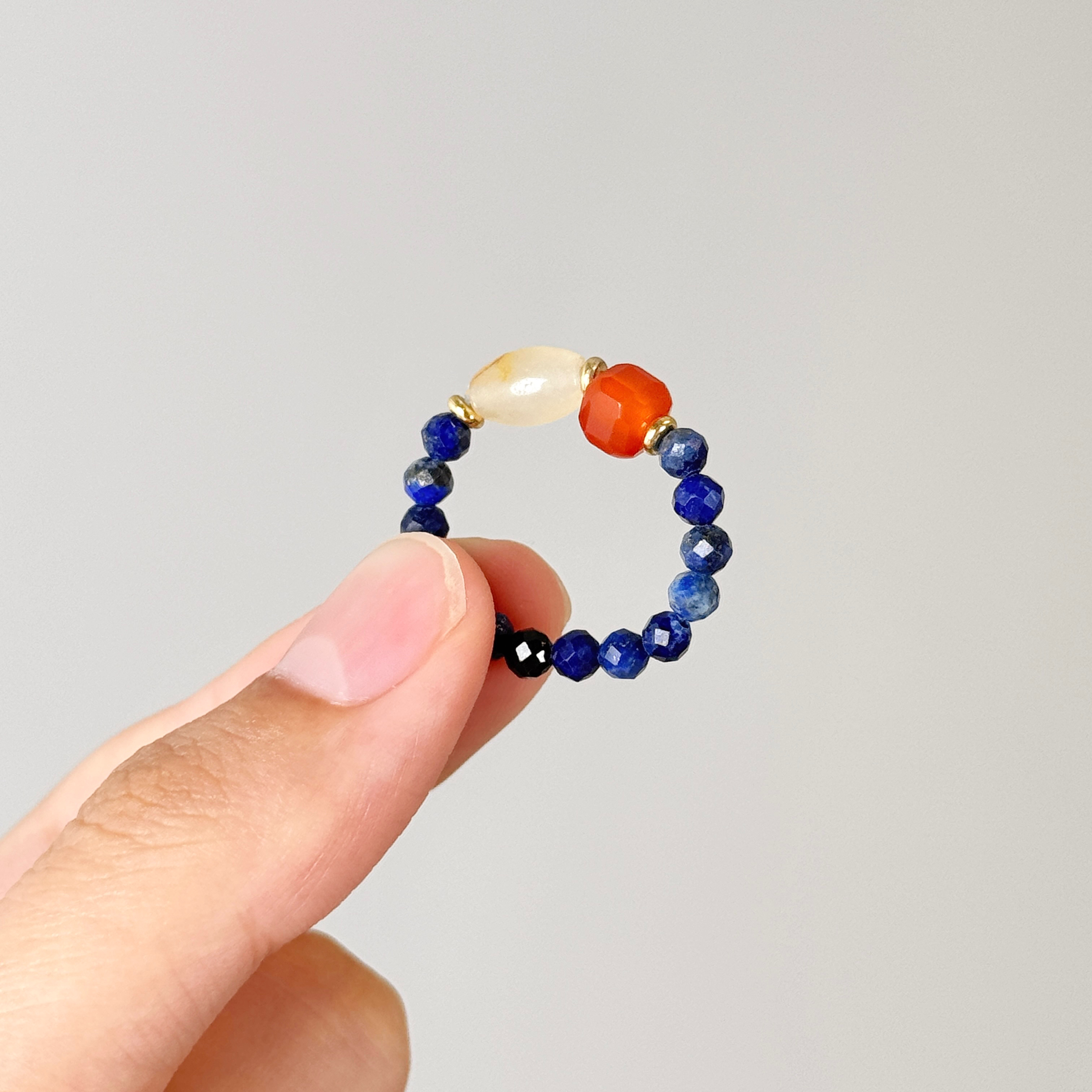 【品名】嫣红·黄水晶青金石玛瑙戒指
