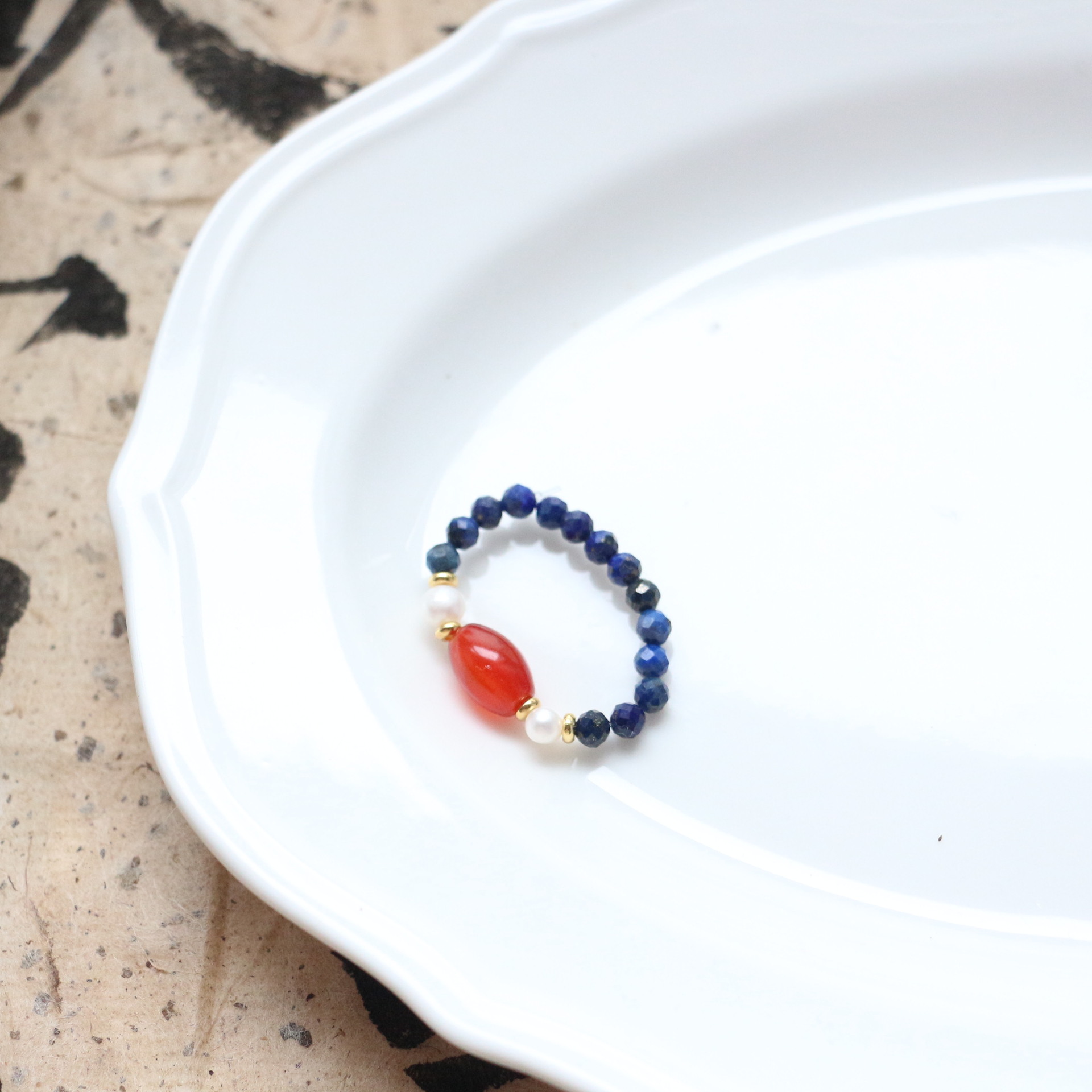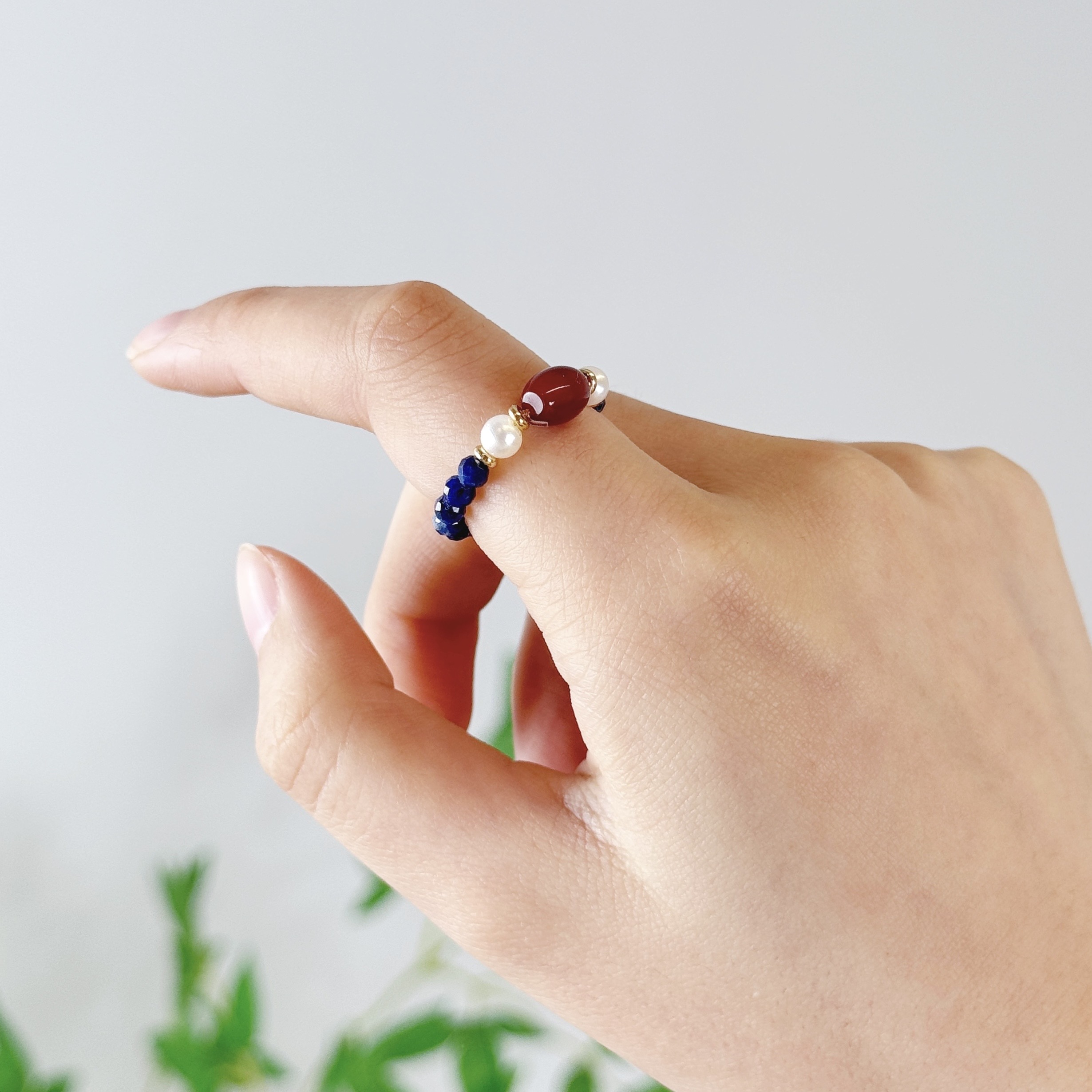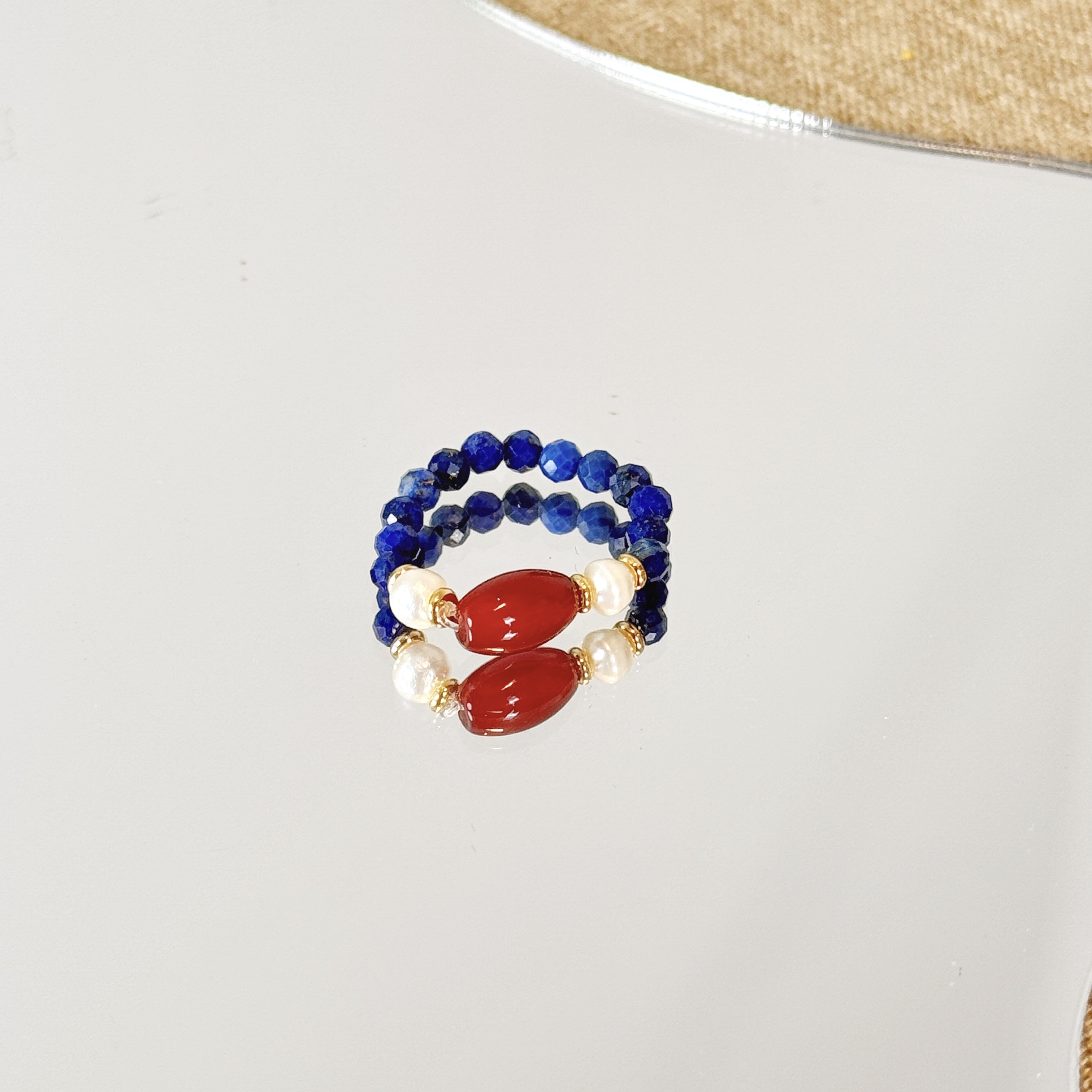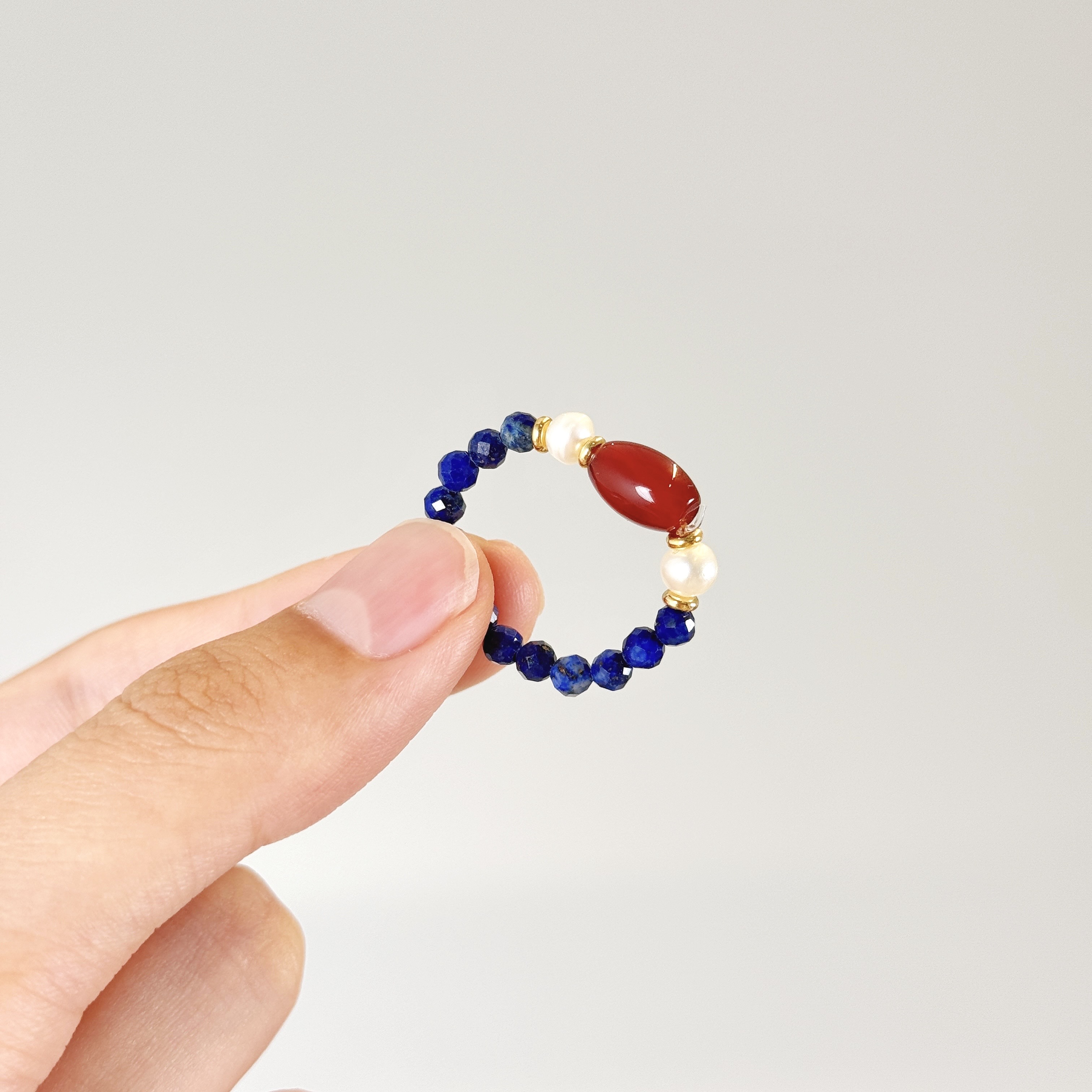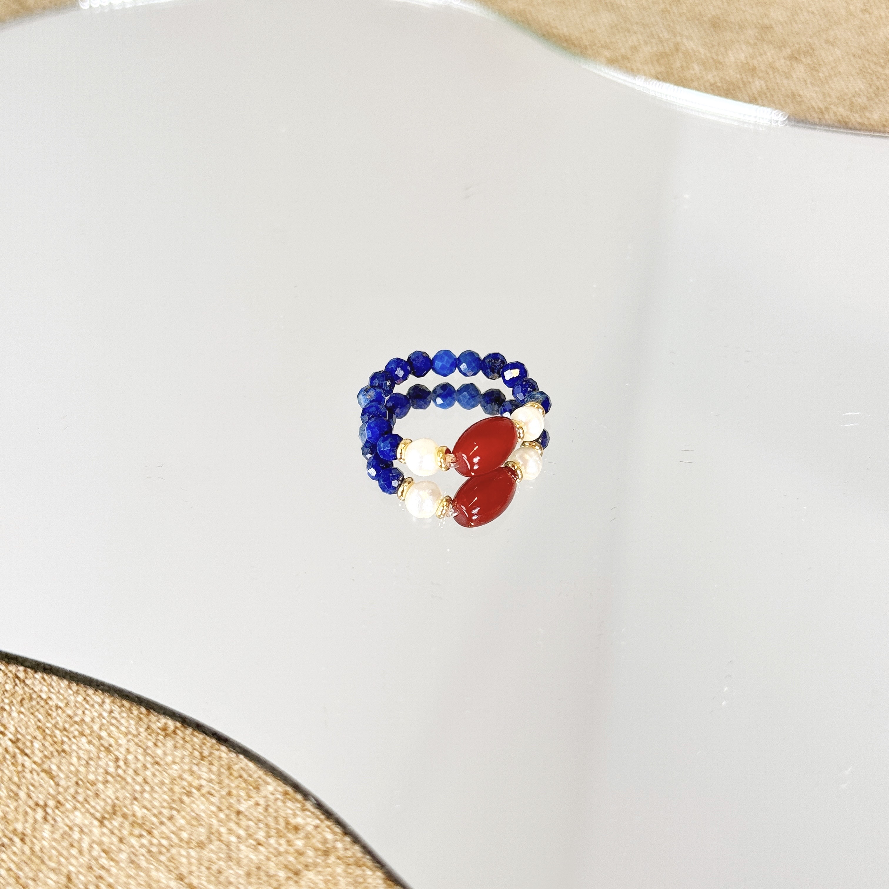 【品名】霓光·珍珠青金石玛瑙戒指