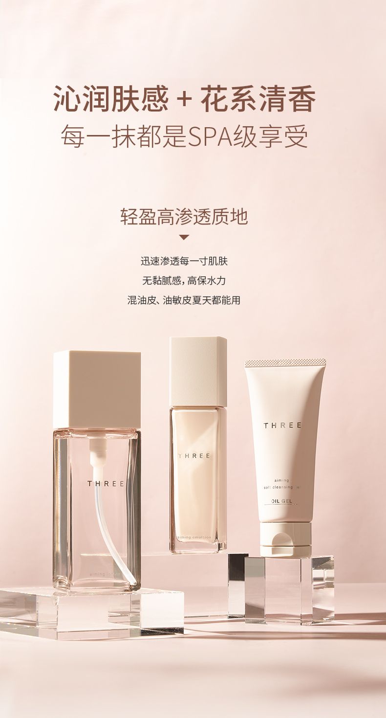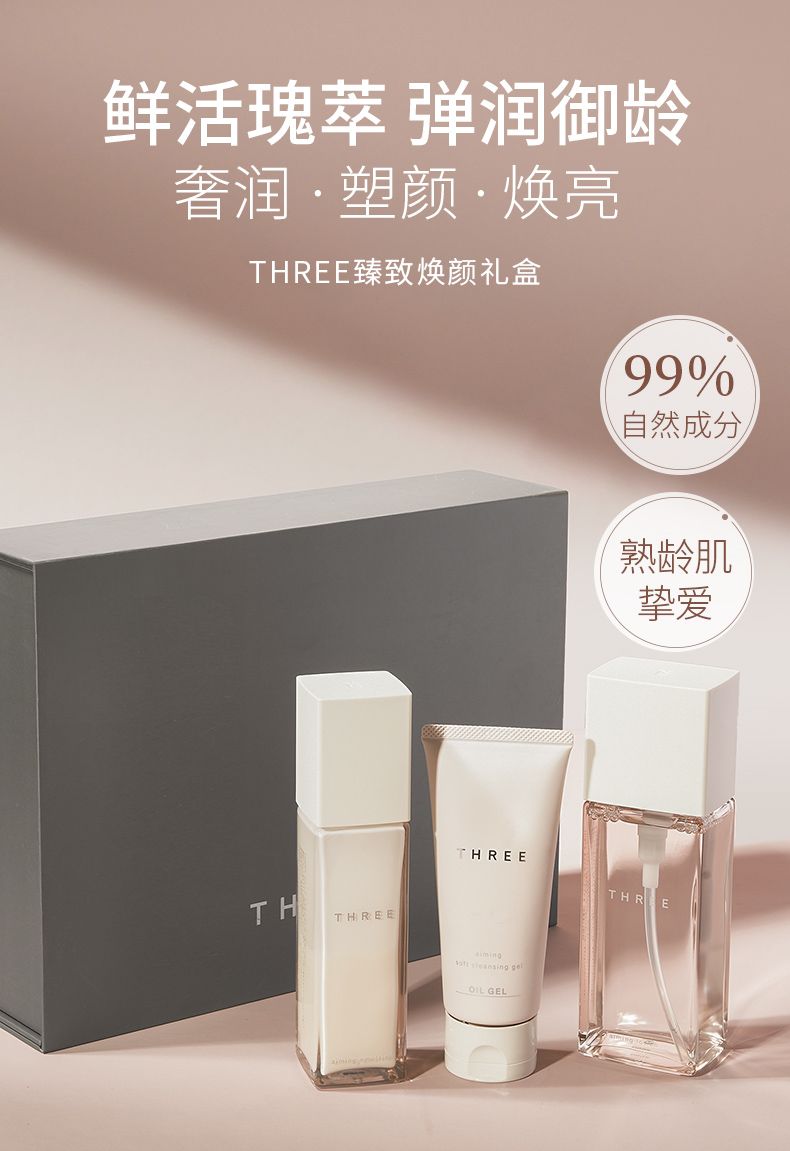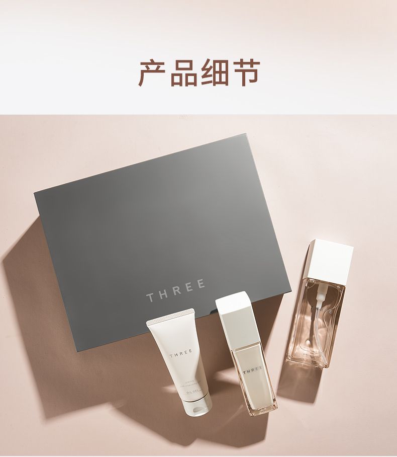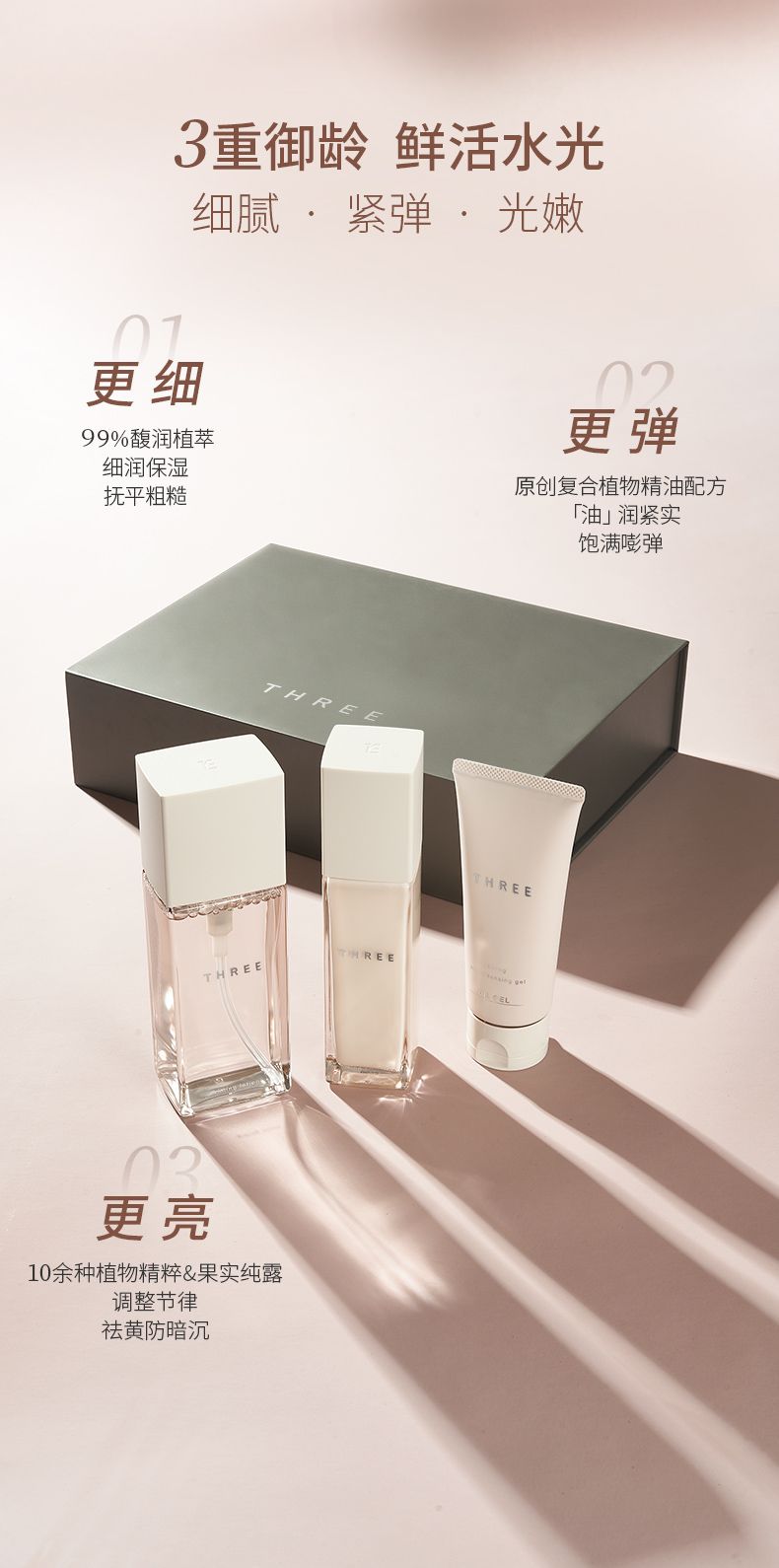【特卖】THREE 臻致焕颜礼盒 (THREE 臻致焕颜精华水+THREE 臻致焕颜乳液+THREE 臻致焕颜柔润卸妆啫喱)【保质期:2026年10-12月】