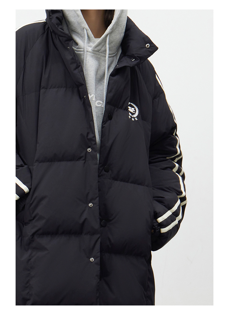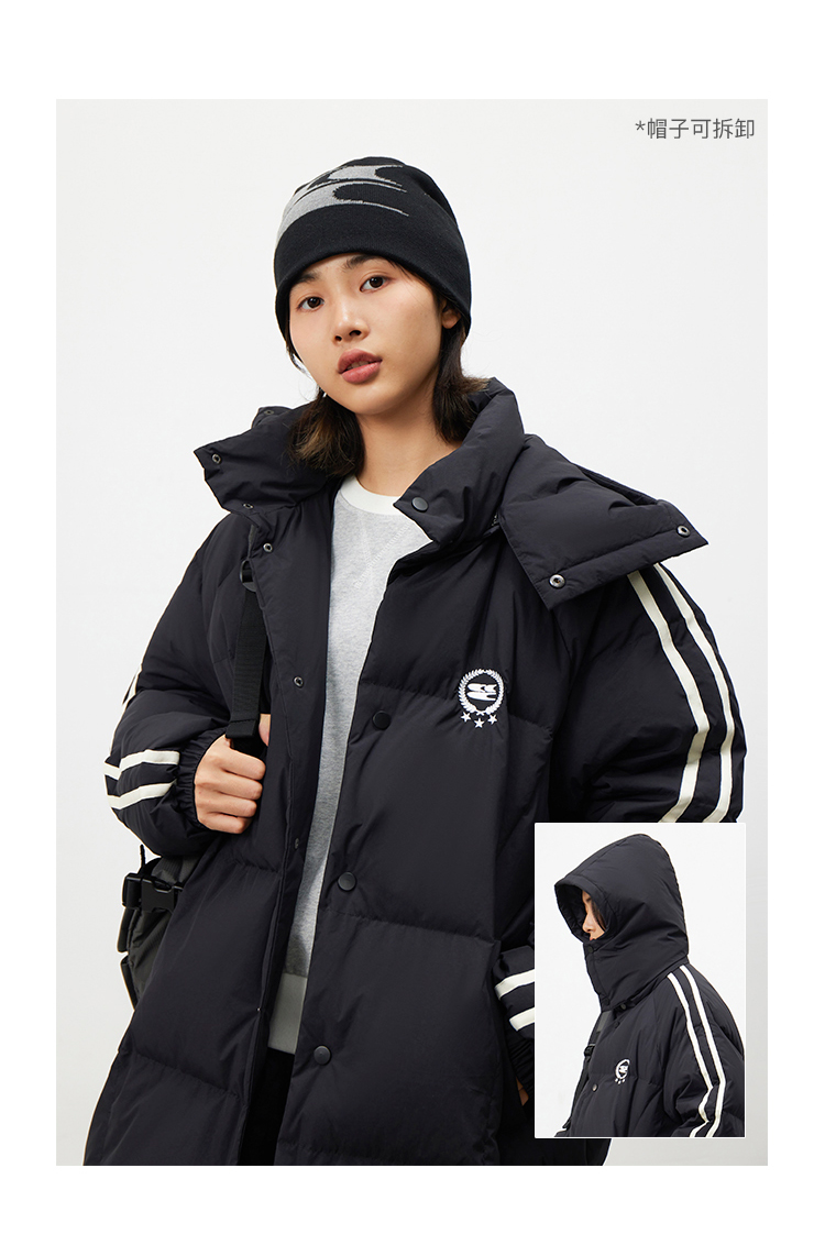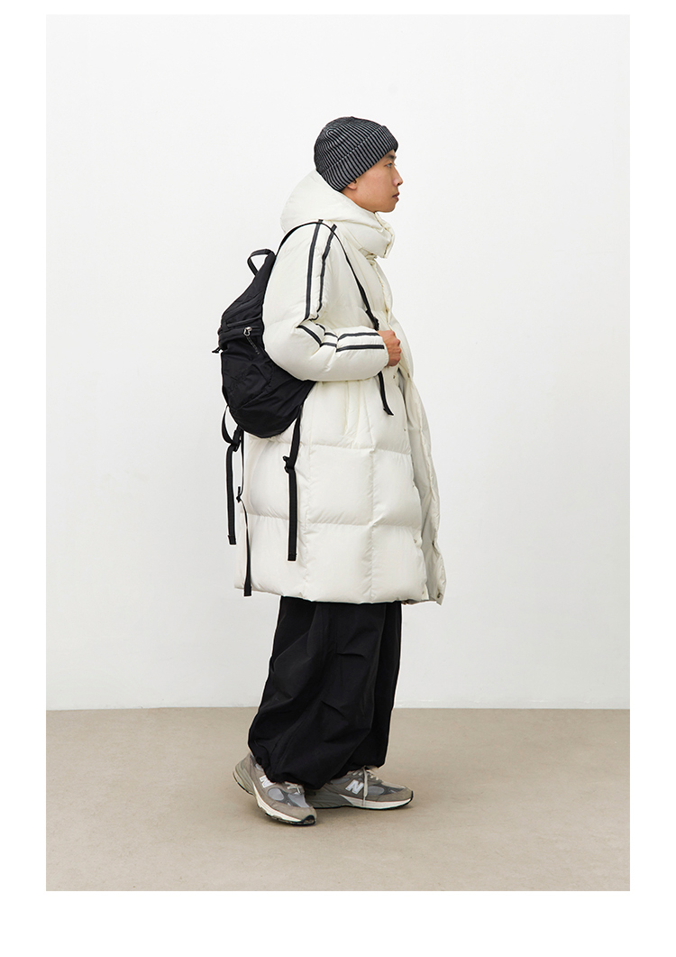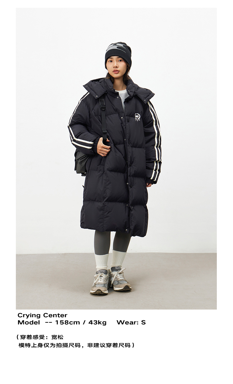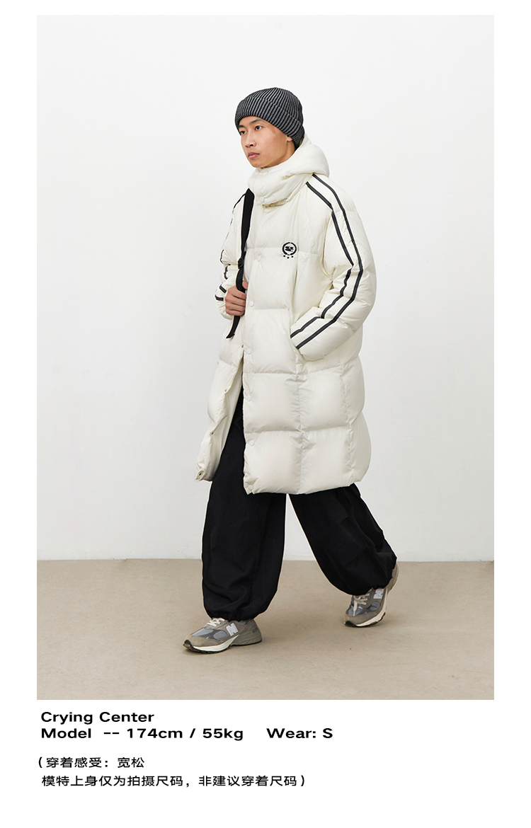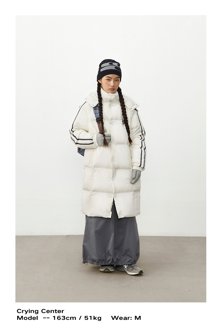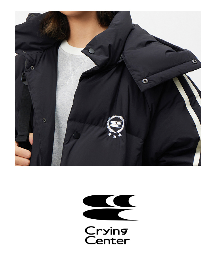 CryingCenter 黑白插肩织带长款可拆卸帽保暖羽绒服 哭喊中心