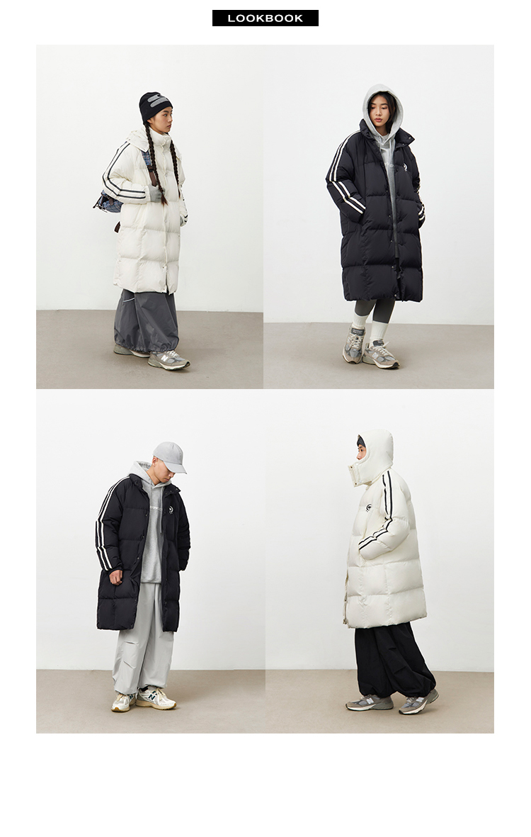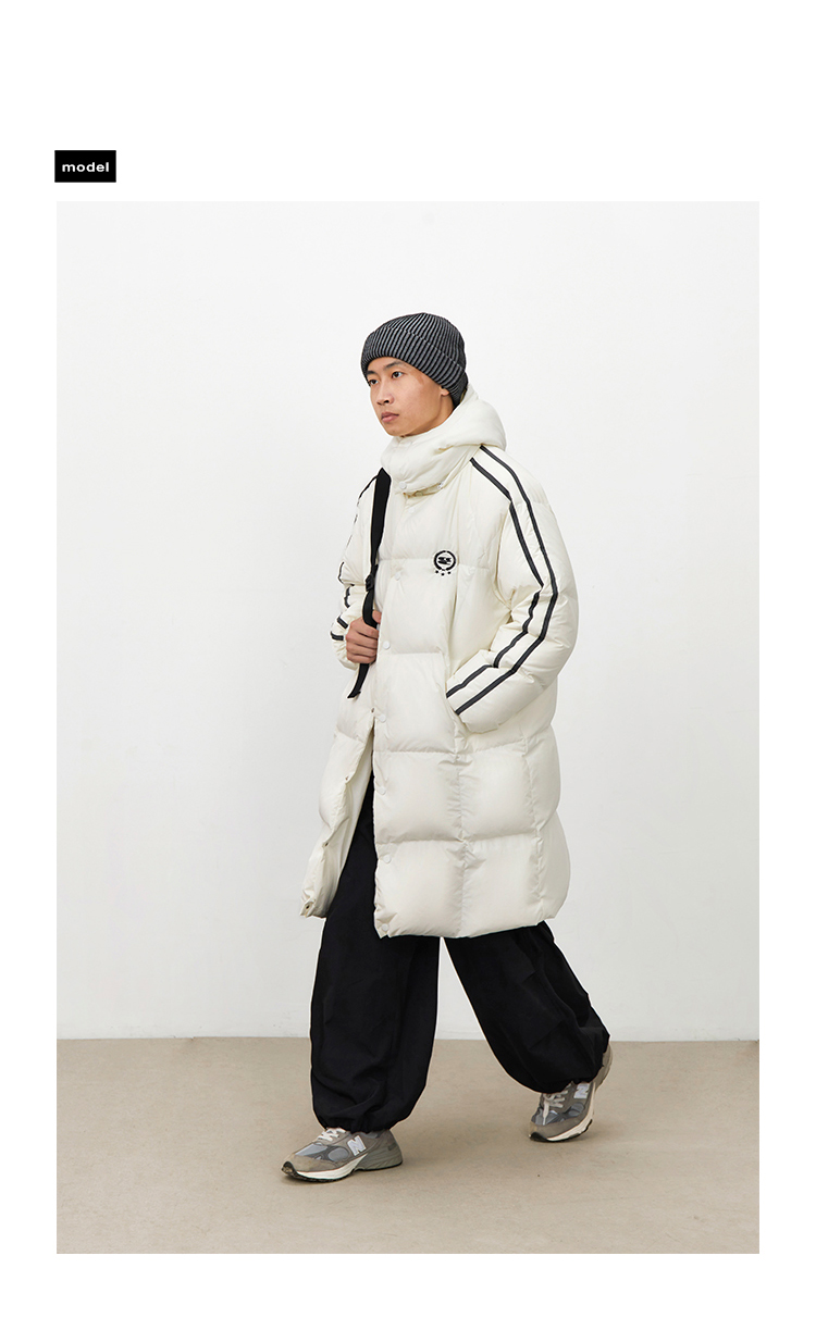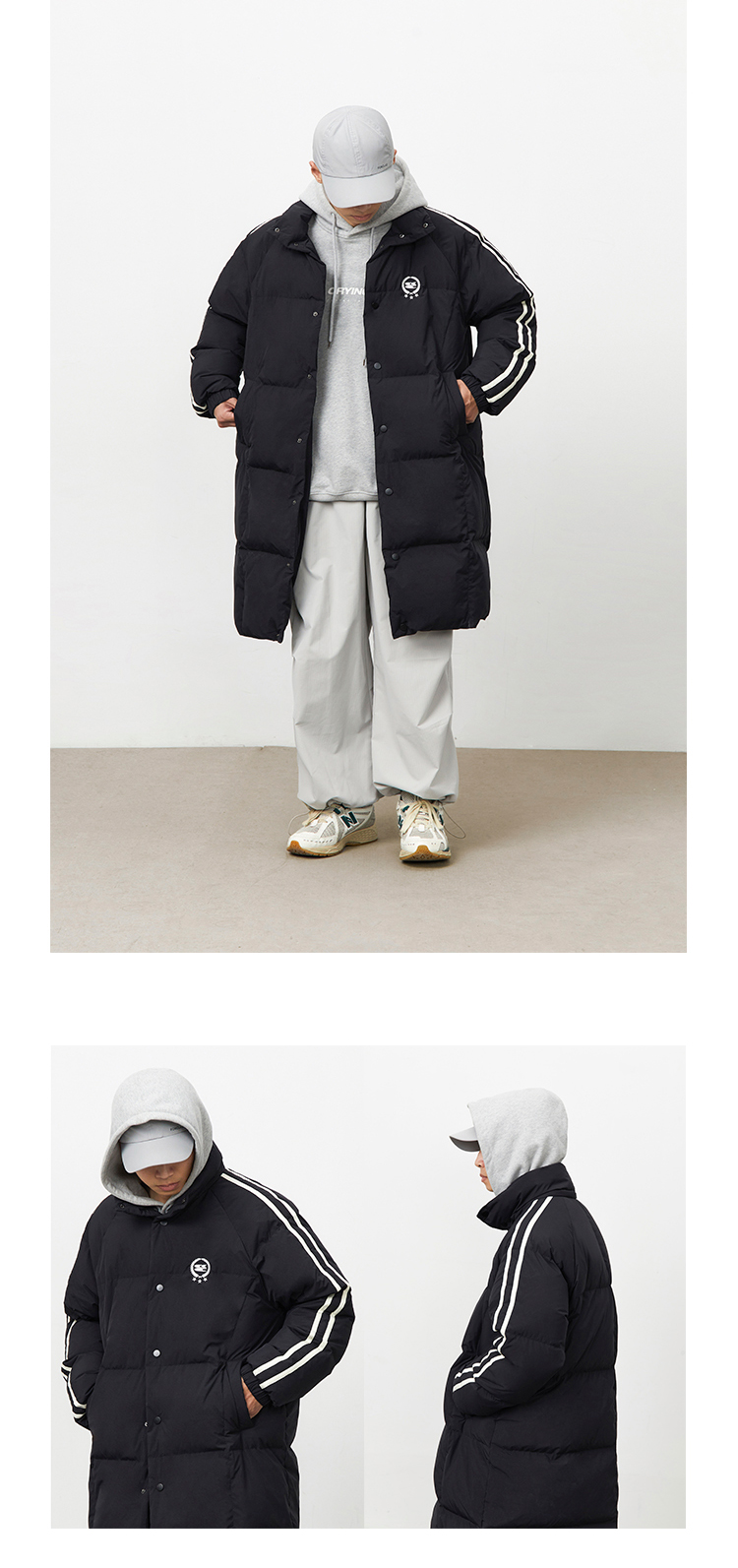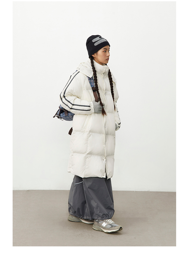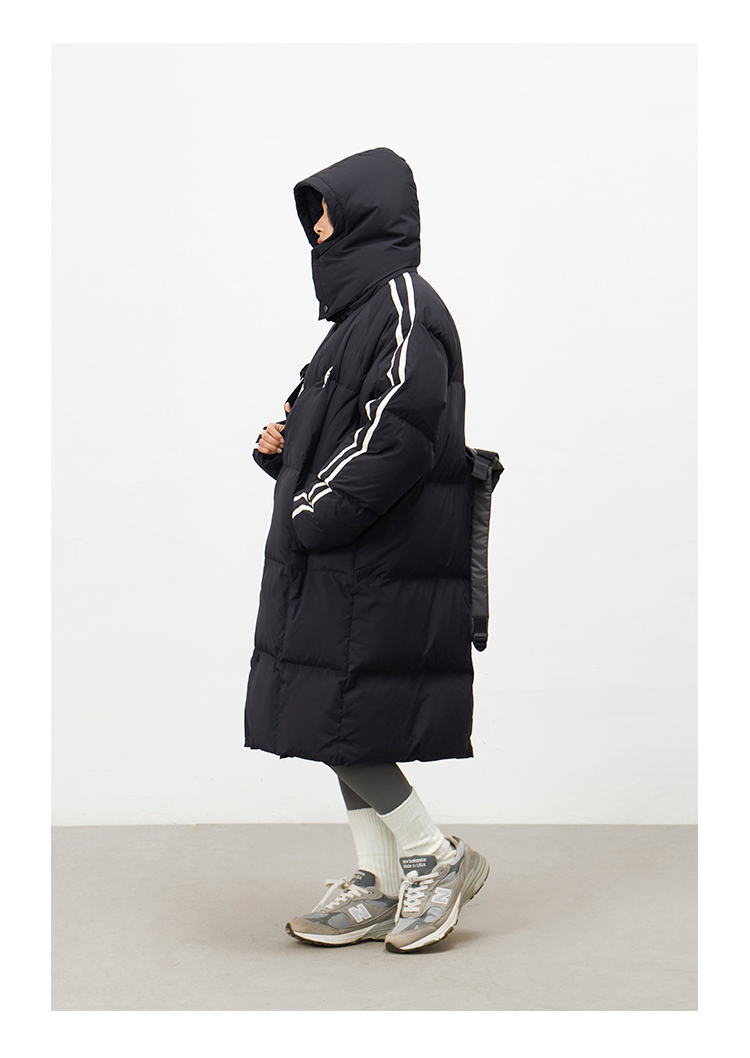 CryingCenter 黑白插肩织带长款可拆卸帽保暖羽绒服 哭喊中心