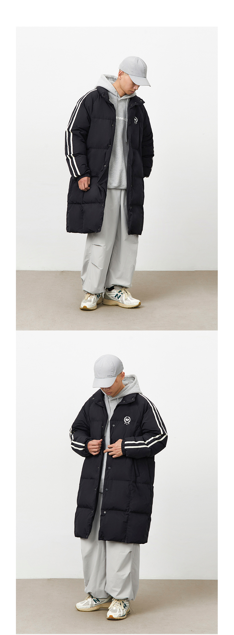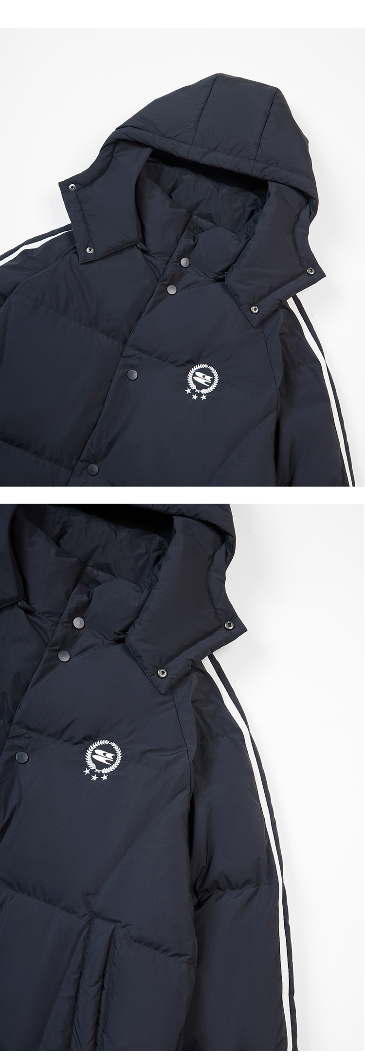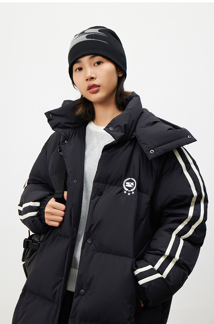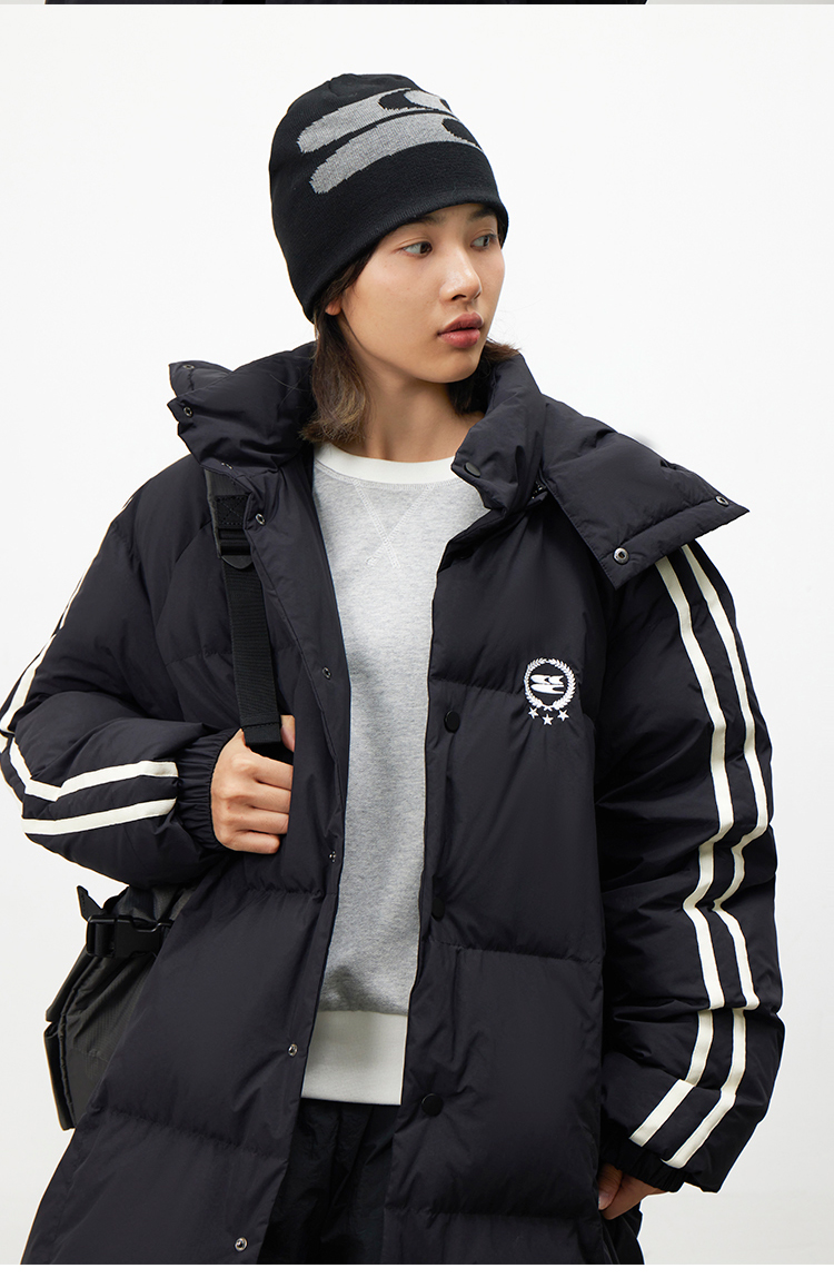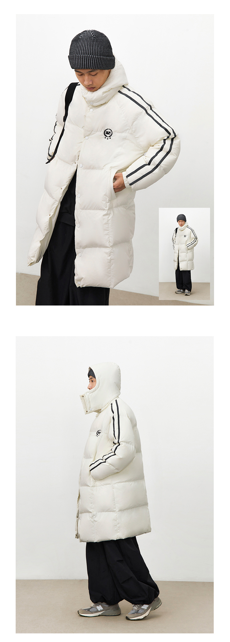 CryingCenter 黑白插肩织带长款可拆卸帽保暖羽绒服 哭喊中心
