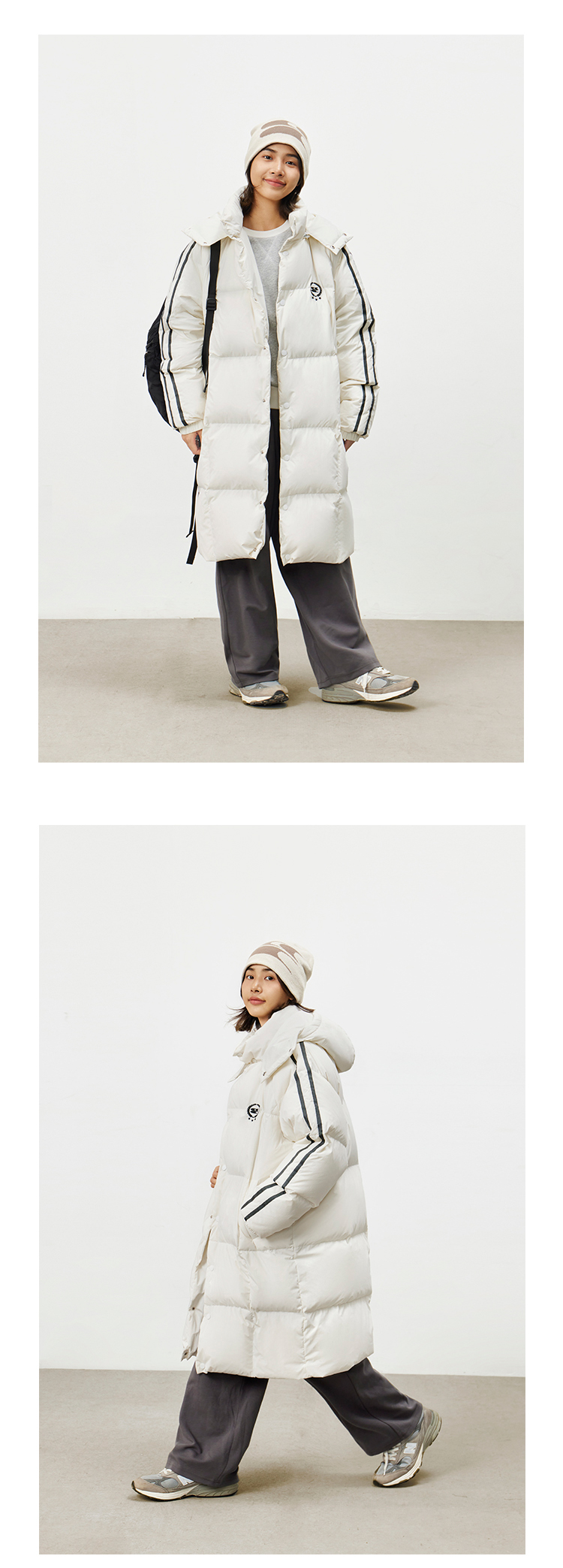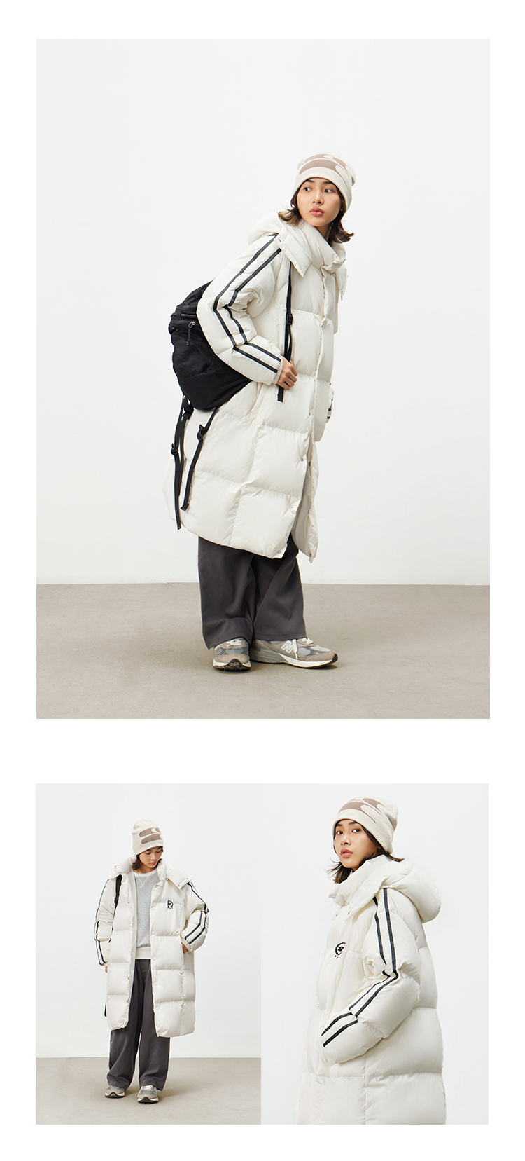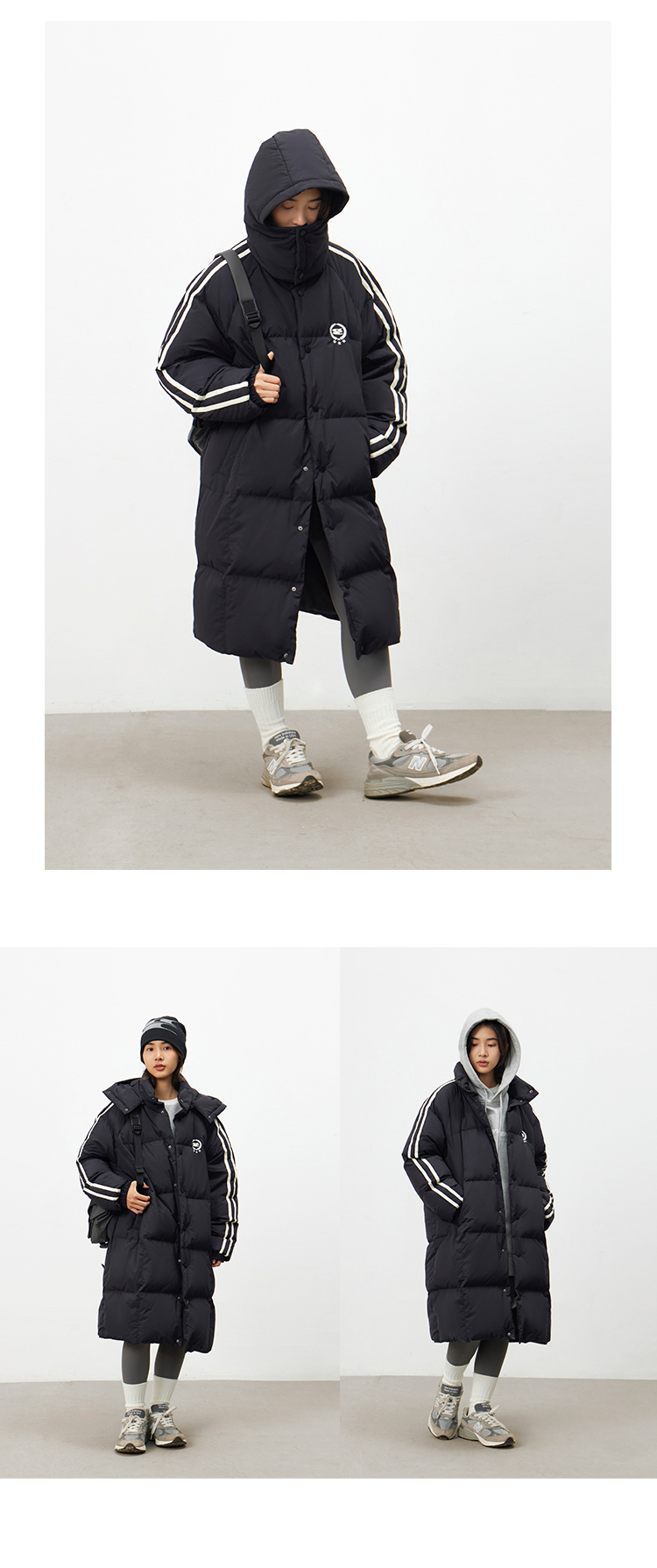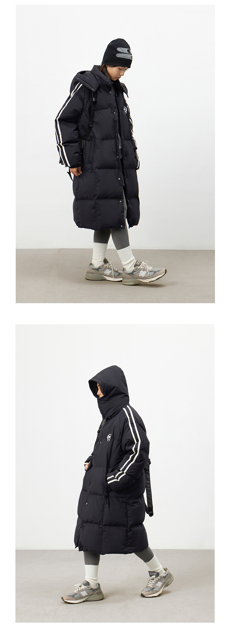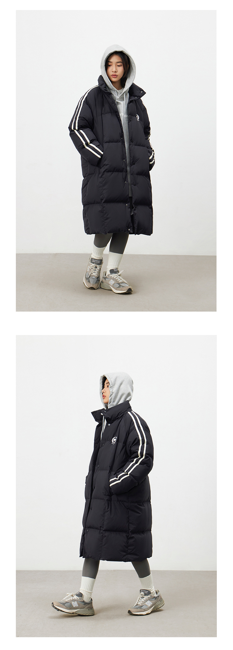 CryingCenter 黑白插肩织带长款可拆卸帽保暖羽绒服 哭喊中心