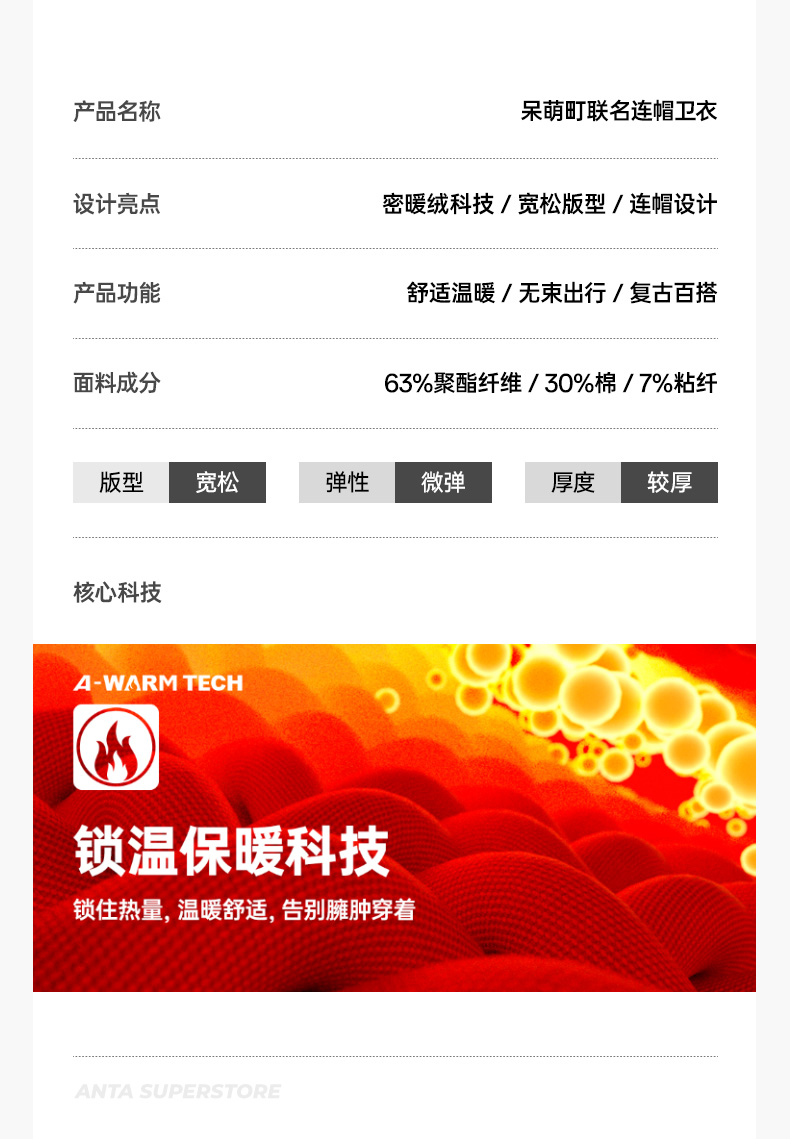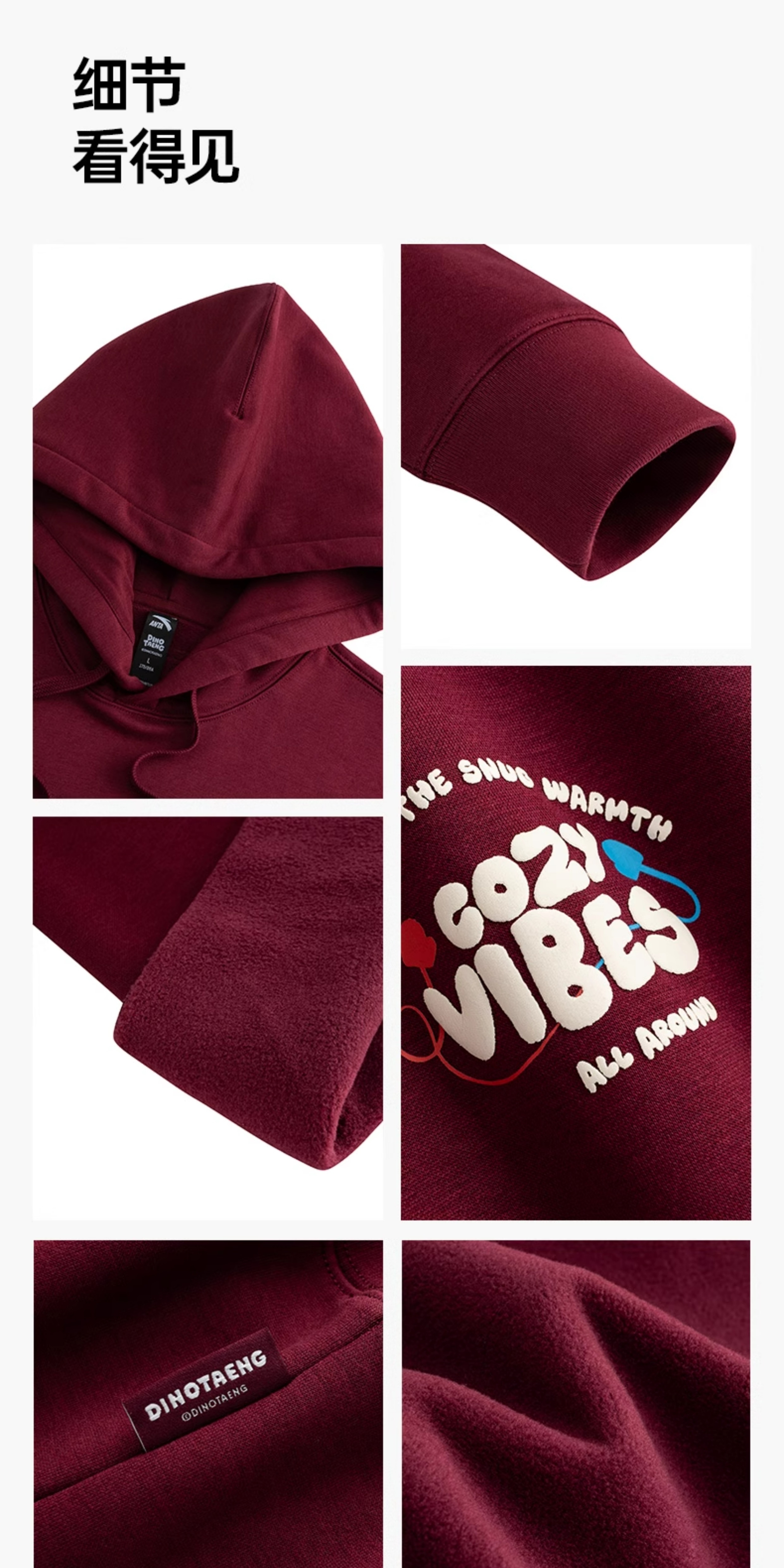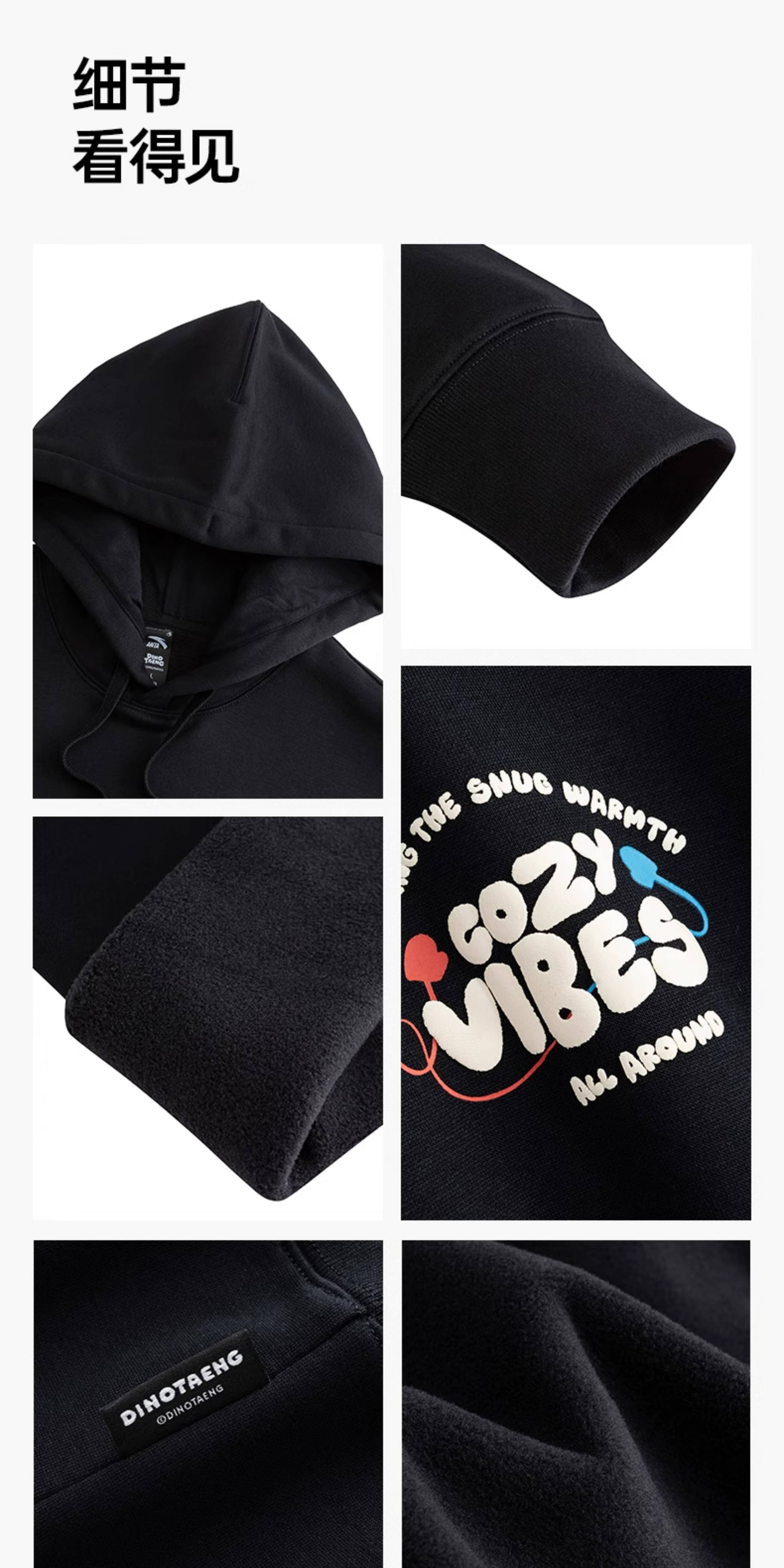 超级安踏X 呆萌町联名加绒连帽卫衣男女同款密暖绒保暖套头衫172548715U