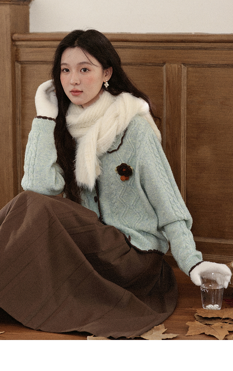 鹿向南 [雪中絮语] 法式显白软糯亲肤北极绒毛衣灯芯绒半裙套装女
