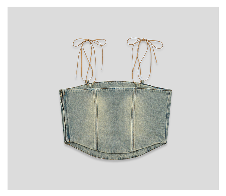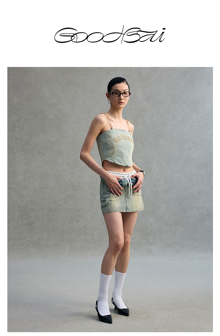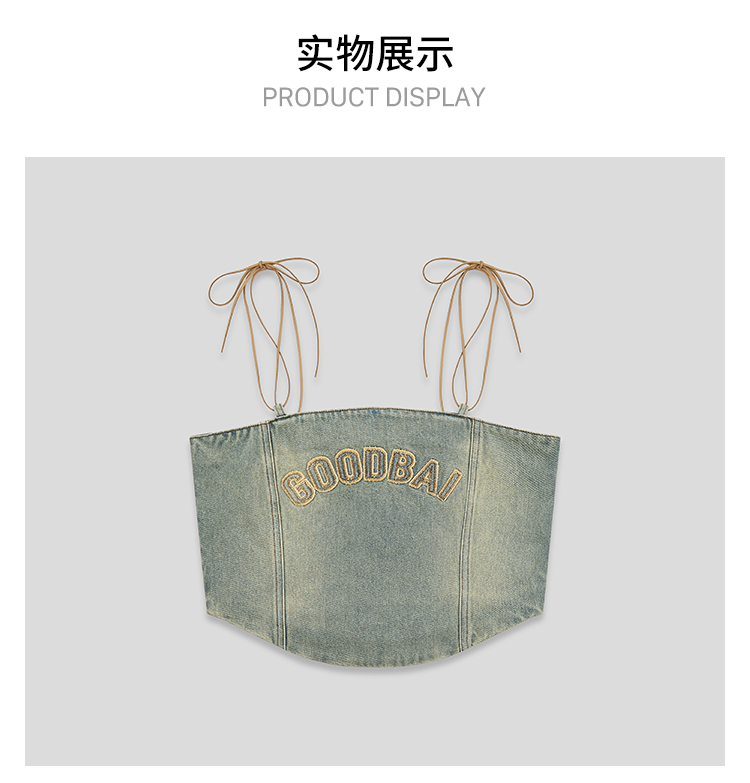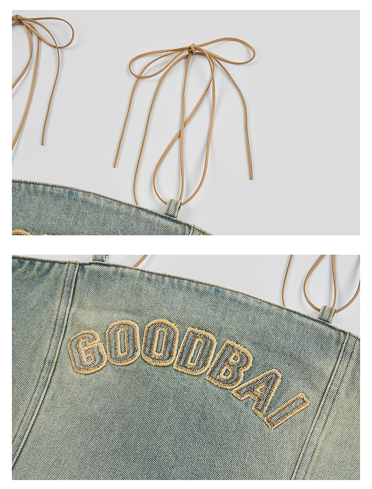 GOODBAI logo贴布绣水洗牛仔贴身拉链吊带背心