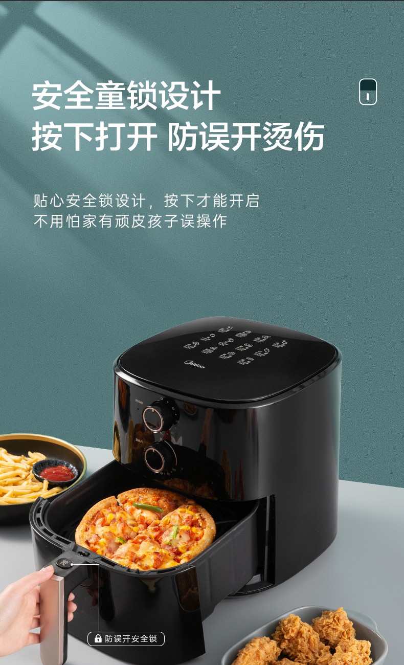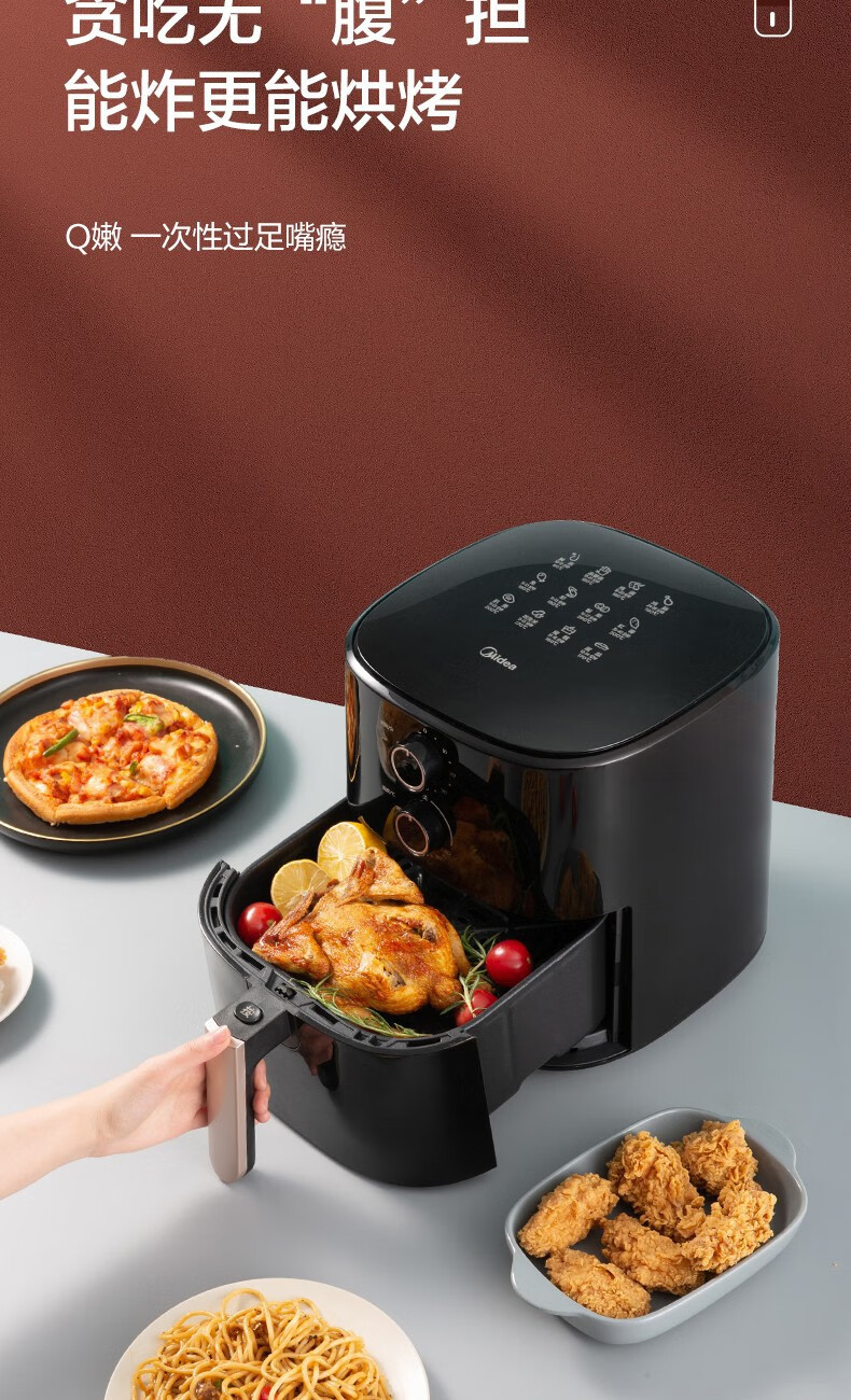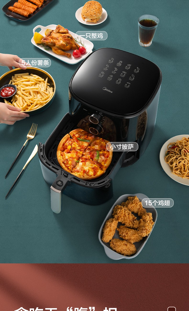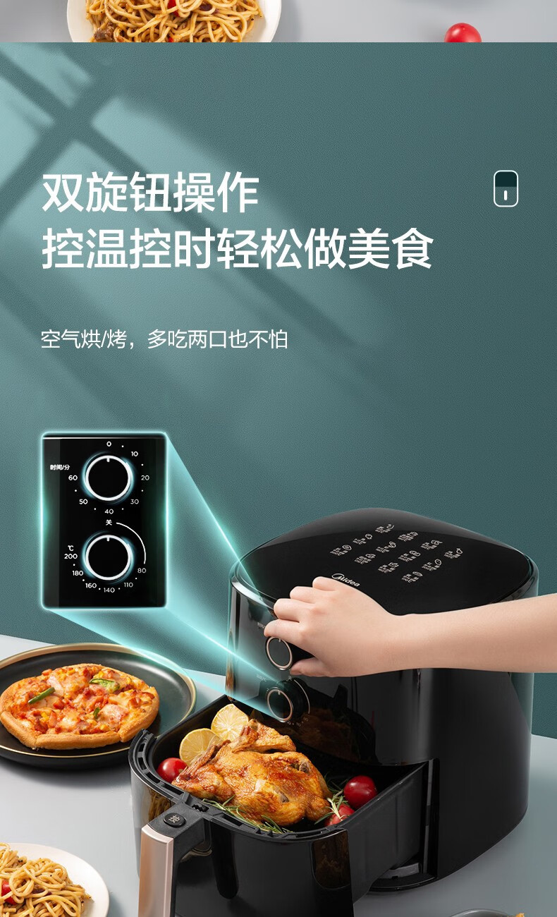 美的(Midea) 空气炸锅MF-KZ50M4-707大容量5L家用多功能空气炸锅不沾低脂双旋控制 5L