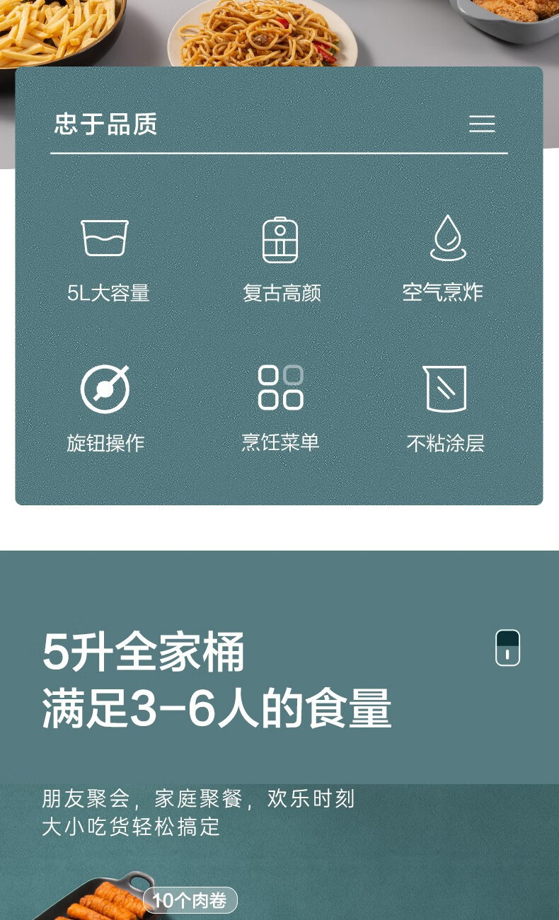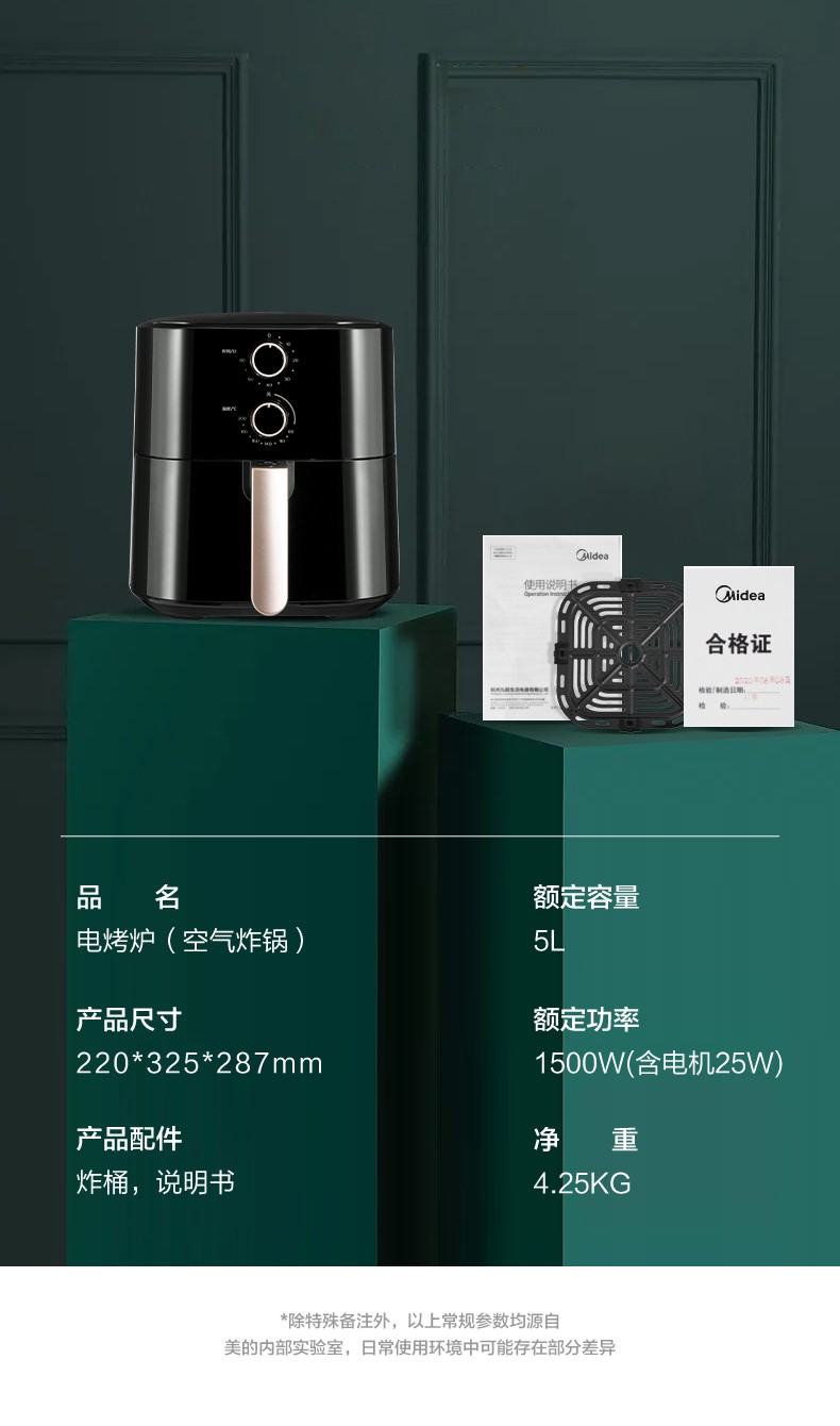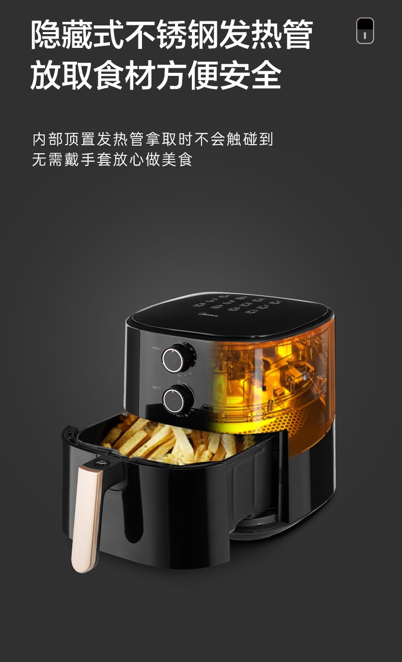 美的(Midea) 空气炸锅MF-KZ50M4-707大容量5L家用多功能空气炸锅不沾低脂双旋控制 5L