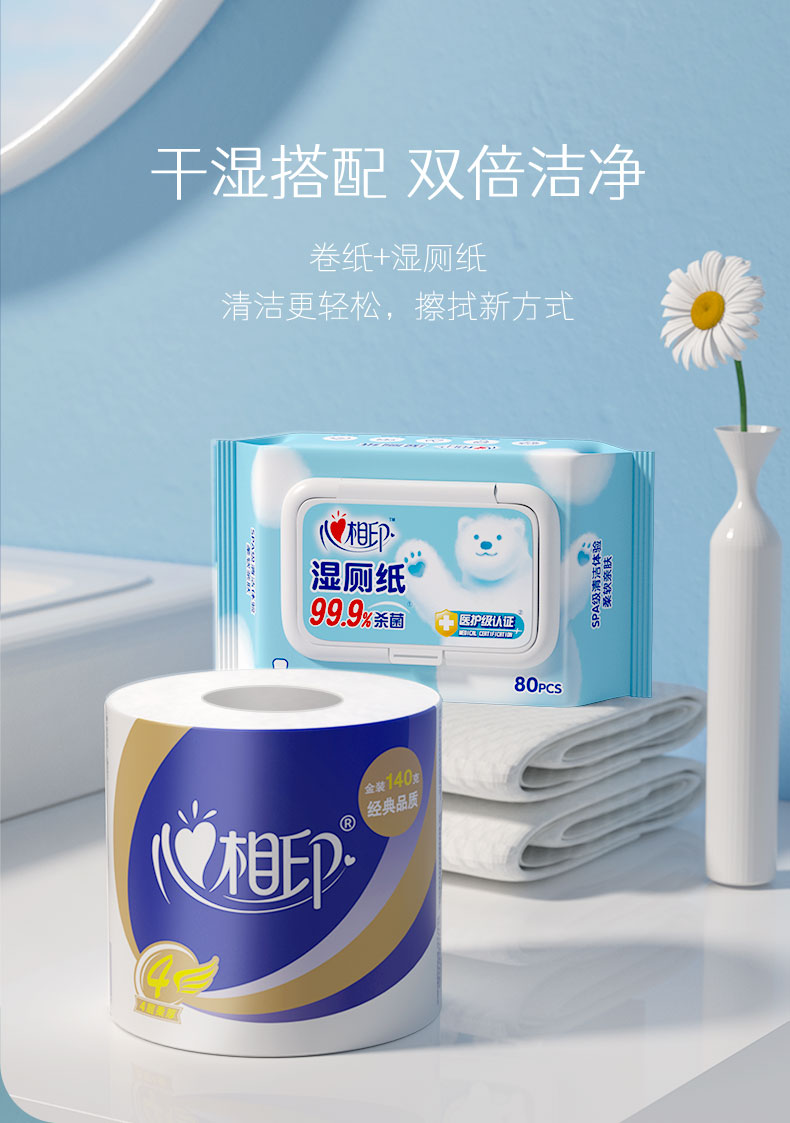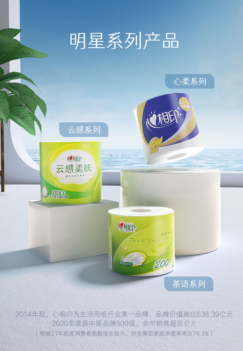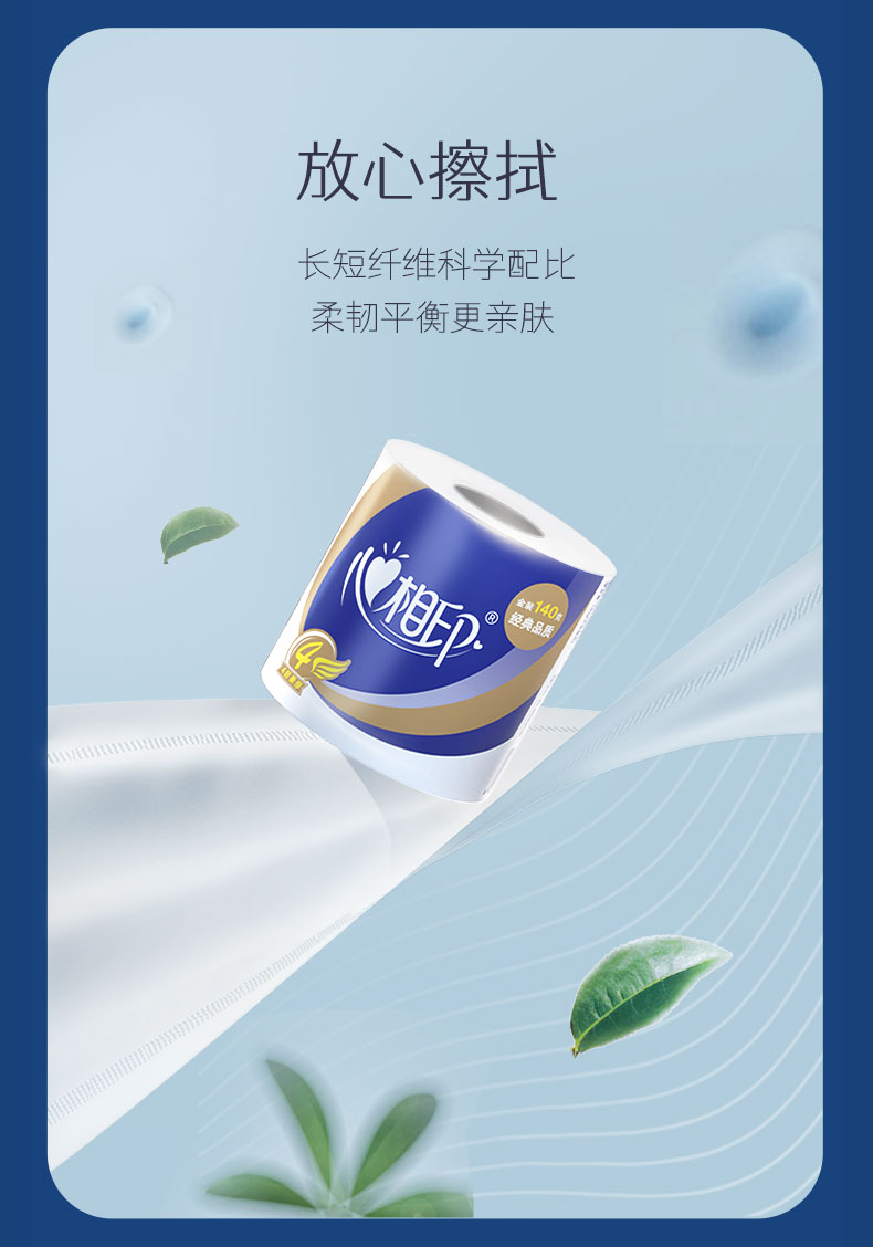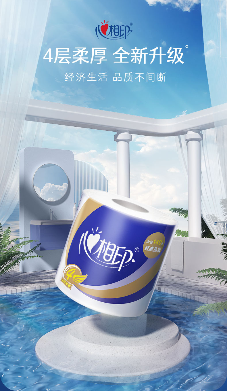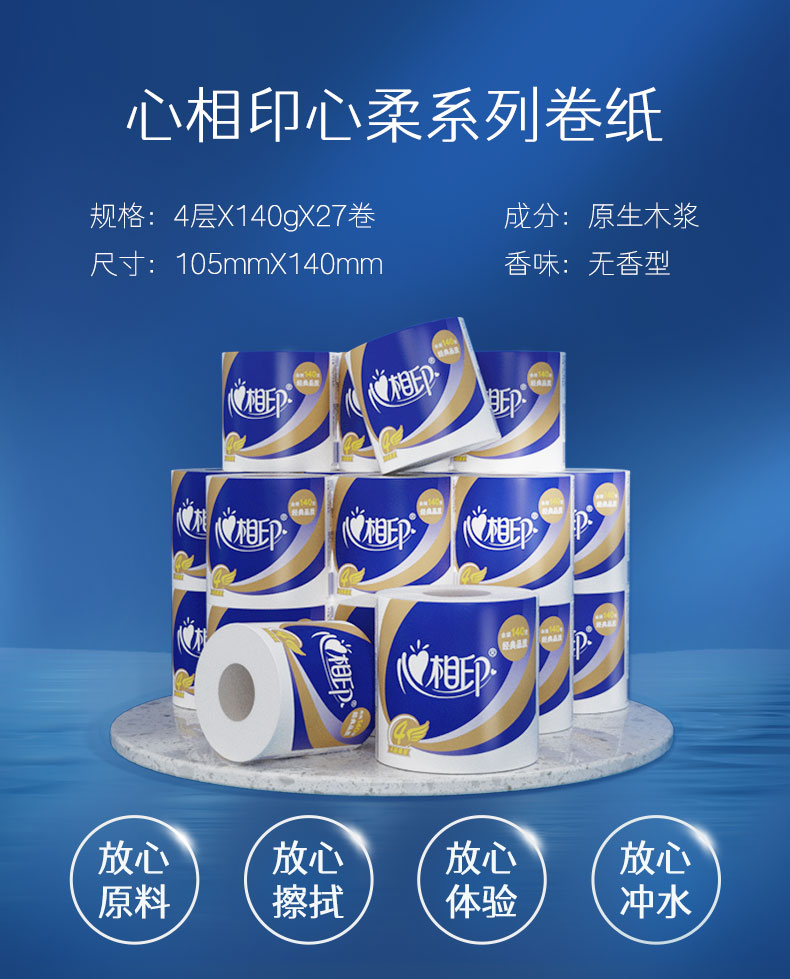BT910(箱装)心相印140克27粒装四层卷筒卫生纸(四层)