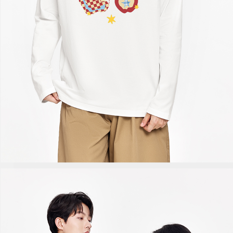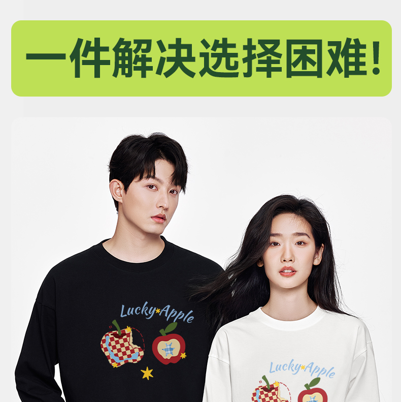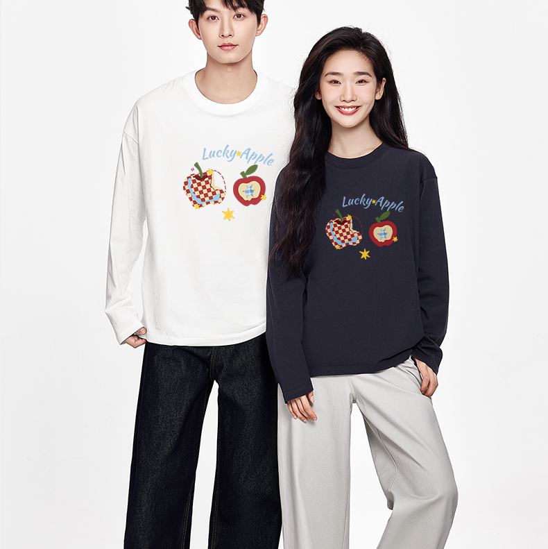 「棉的美学」230g重磅纯棉长袖叠穿T恤小众设计感苹果印花休闲上衣