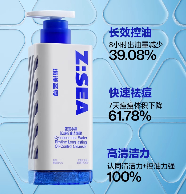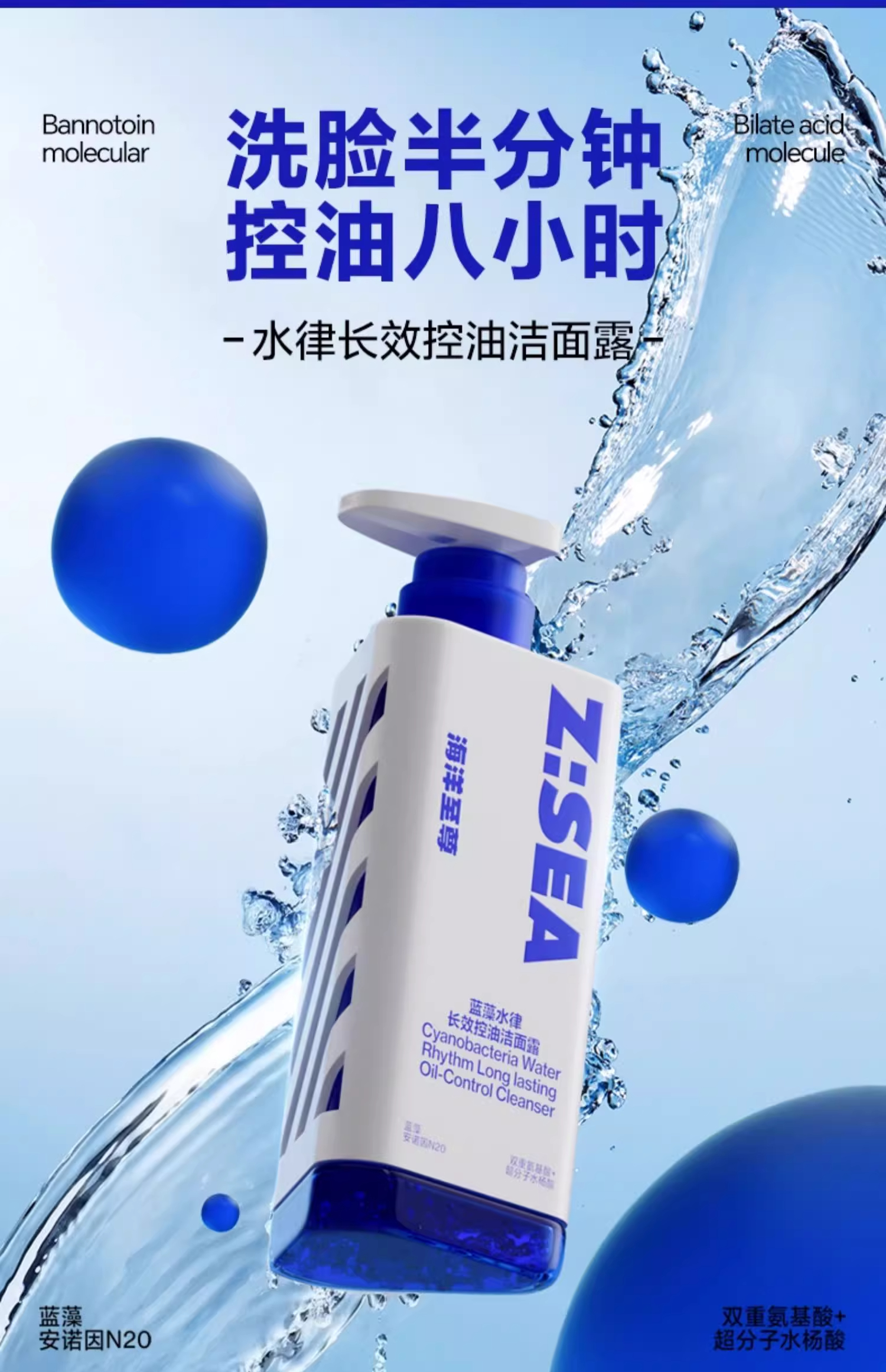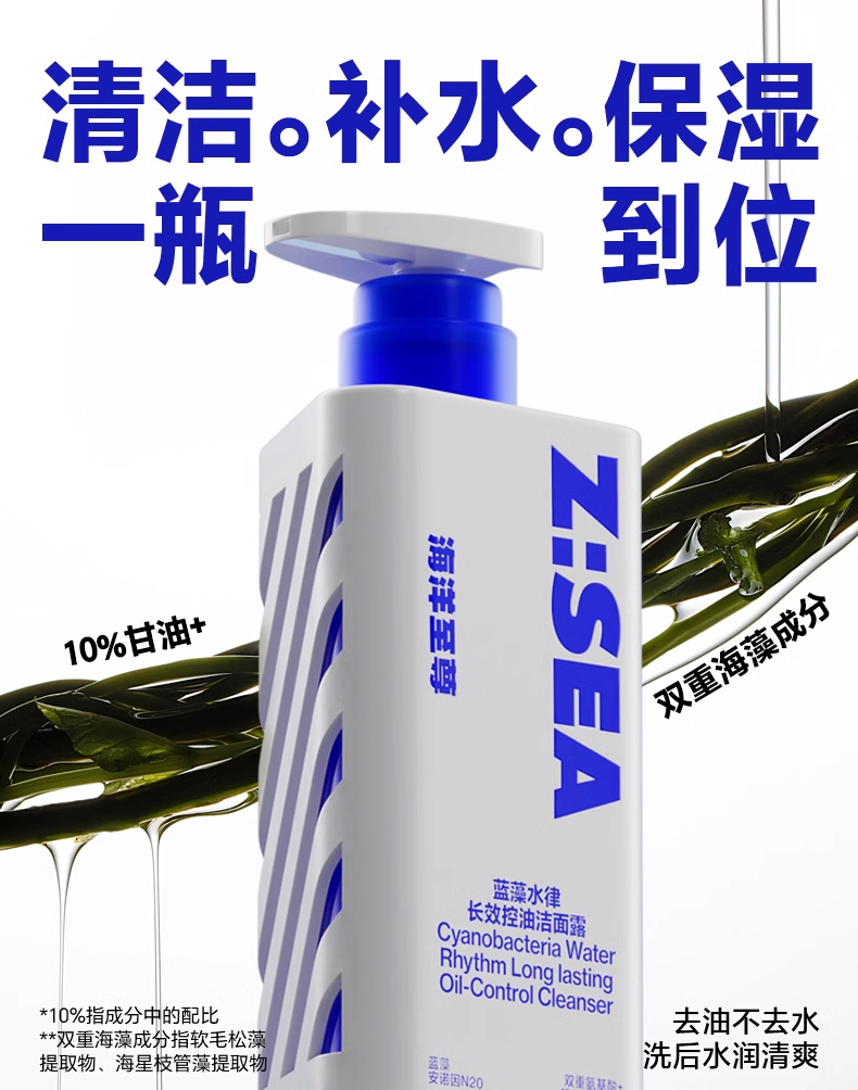 商城【洁面家族】海洋至尊蓝藻水律长效控油洁面露