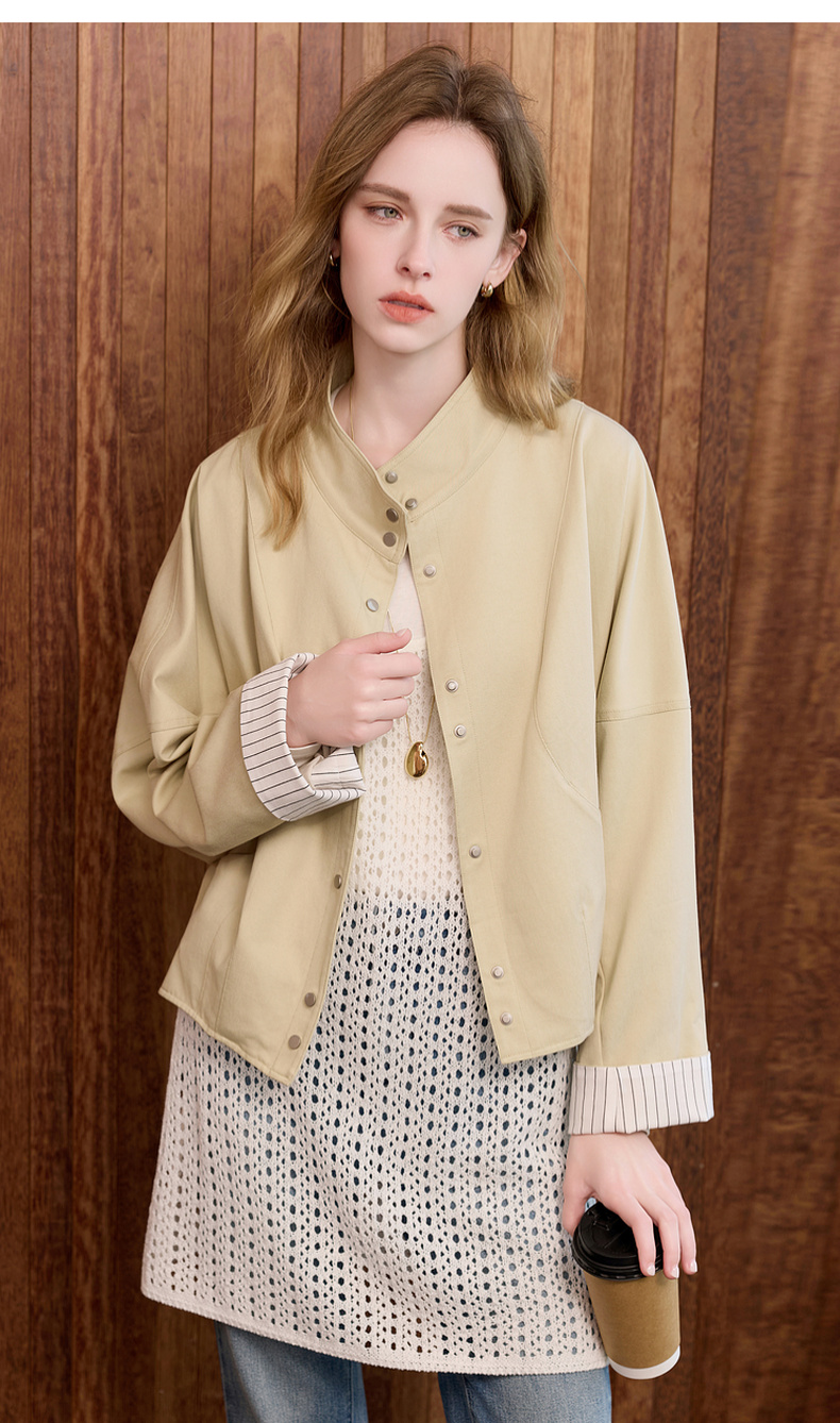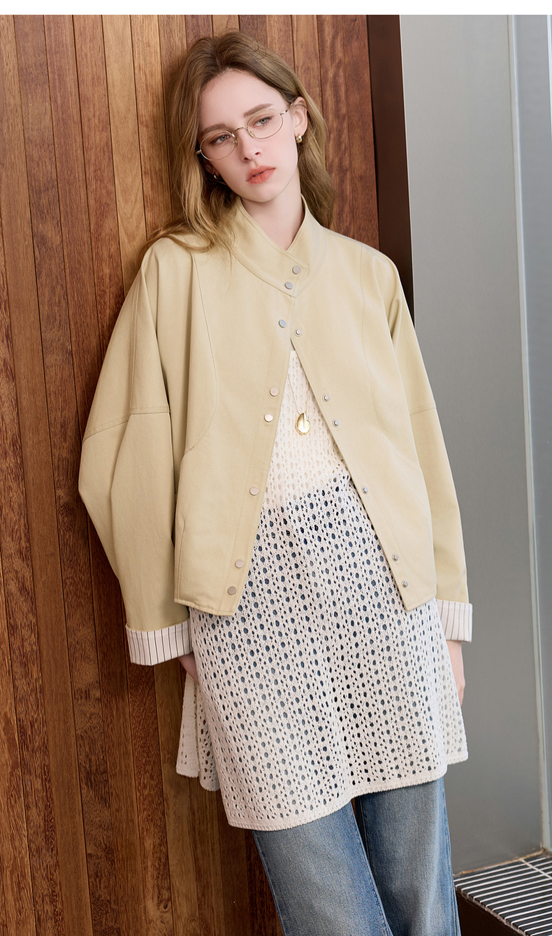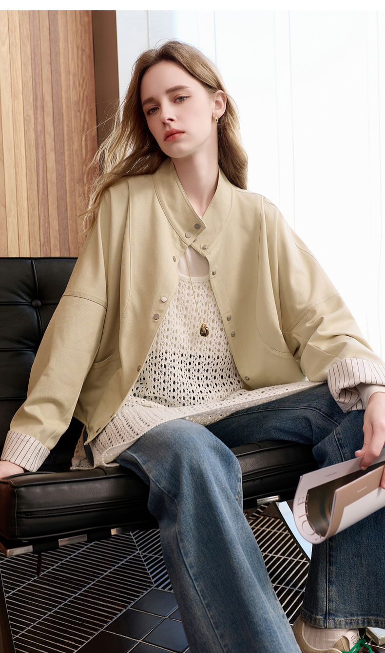 【莱赛尔】三彩2025秋季新款休闲外套立领宽松夹克简约M