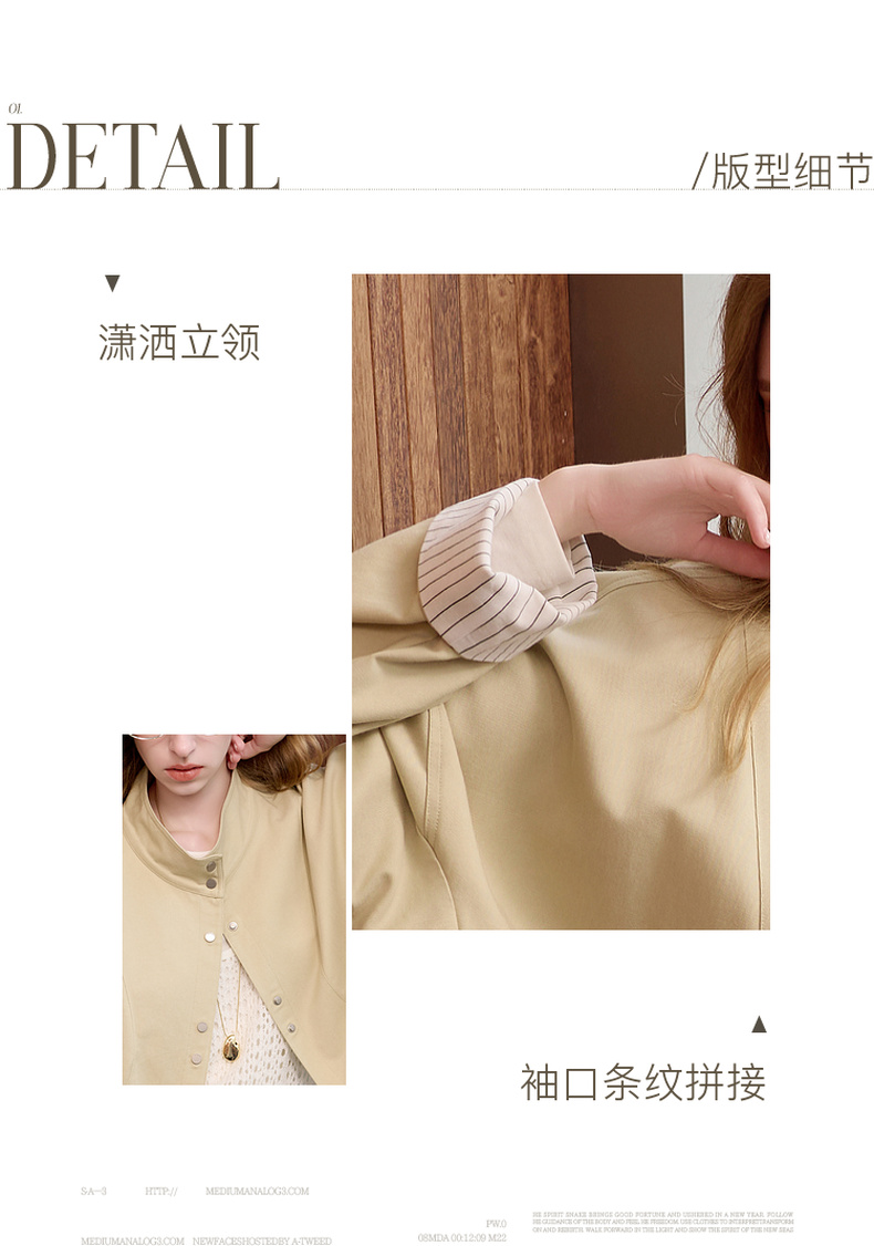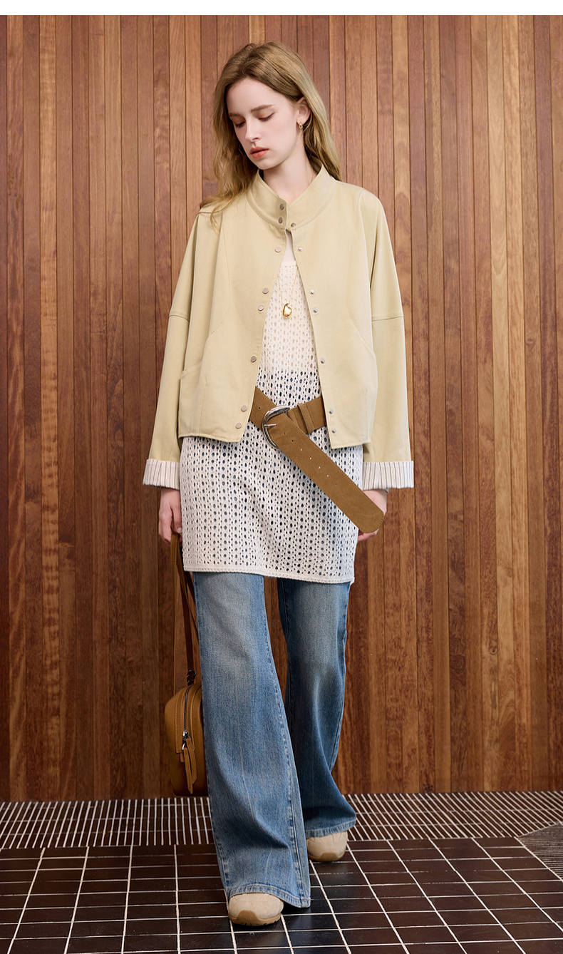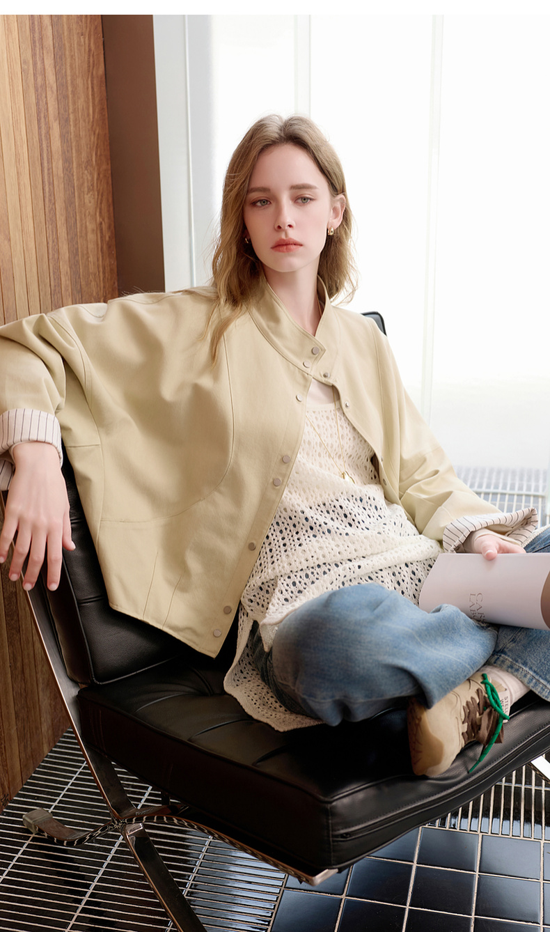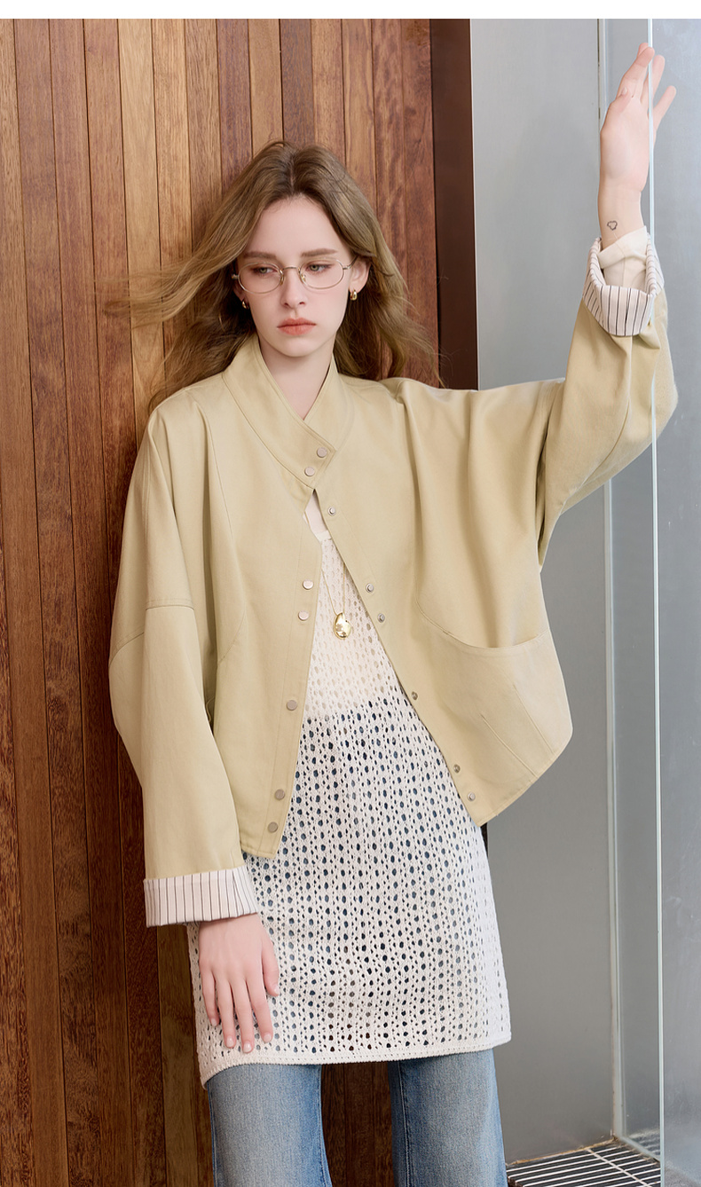 【莱赛尔】三彩2025秋季新款休闲外套立领宽松夹克简约M