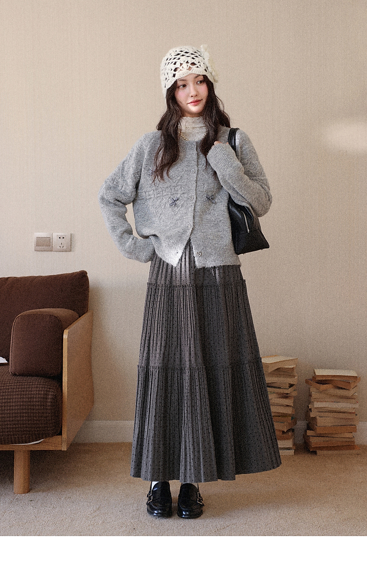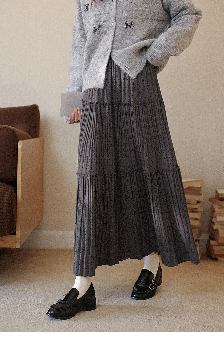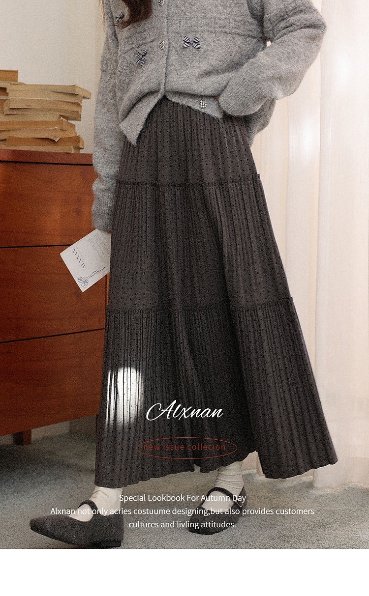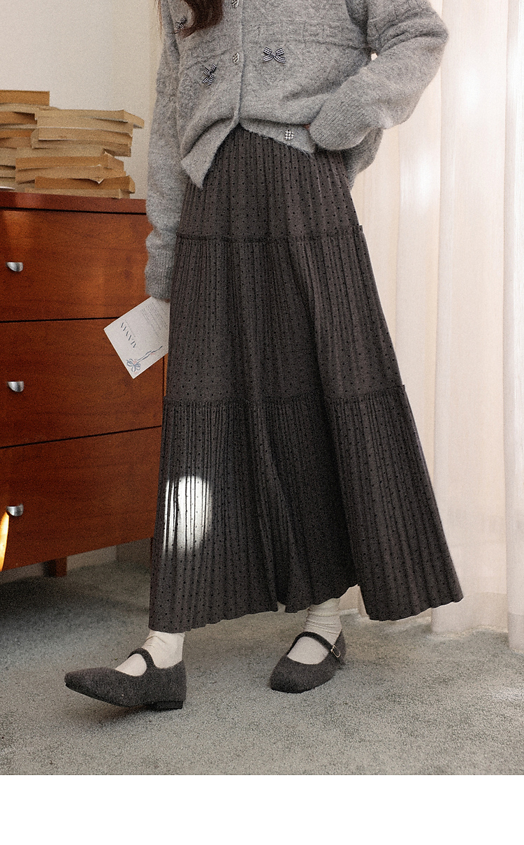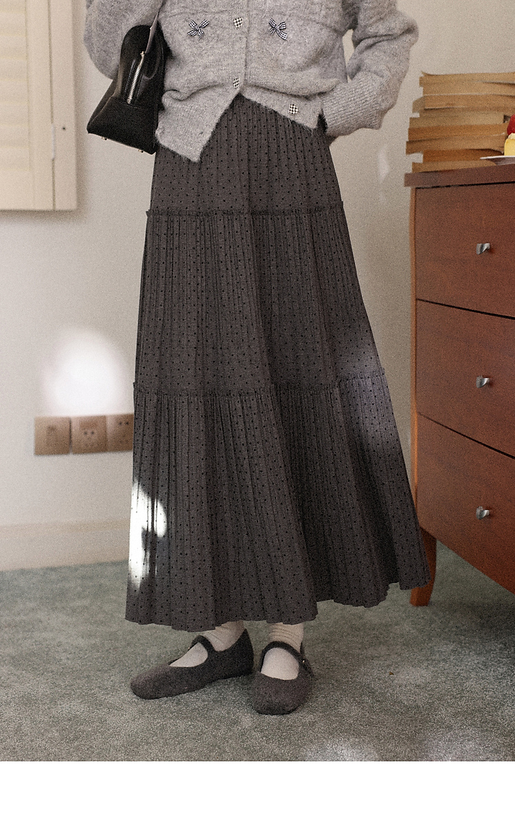 鹿向南「掠过心弦」灰色波点拼接半身裙秋冬季小众设计感A字裙女