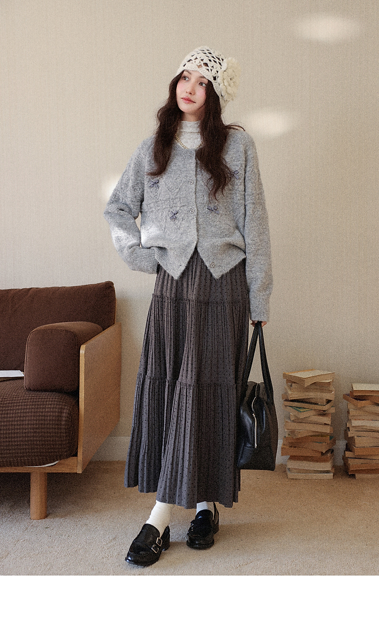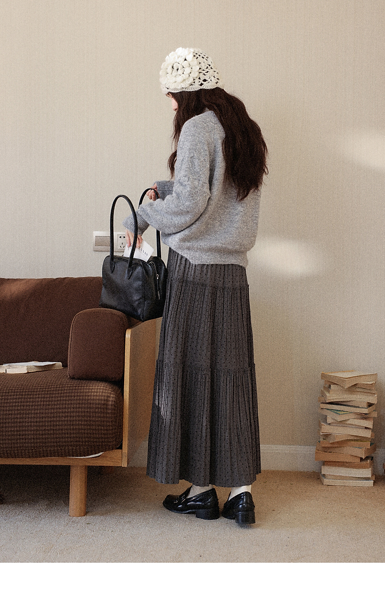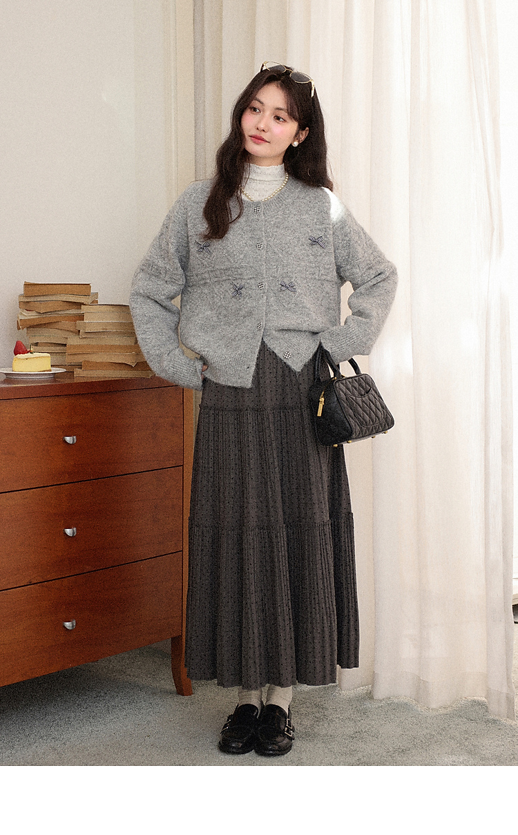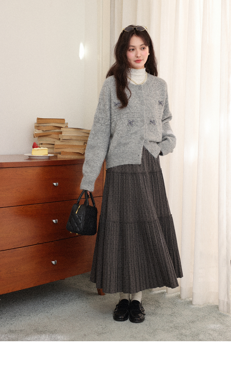 鹿向南「掠过心弦」灰色波点拼接半身裙秋冬季小众设计感A字裙女