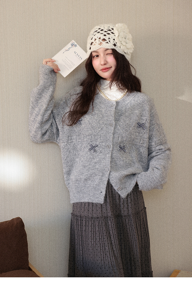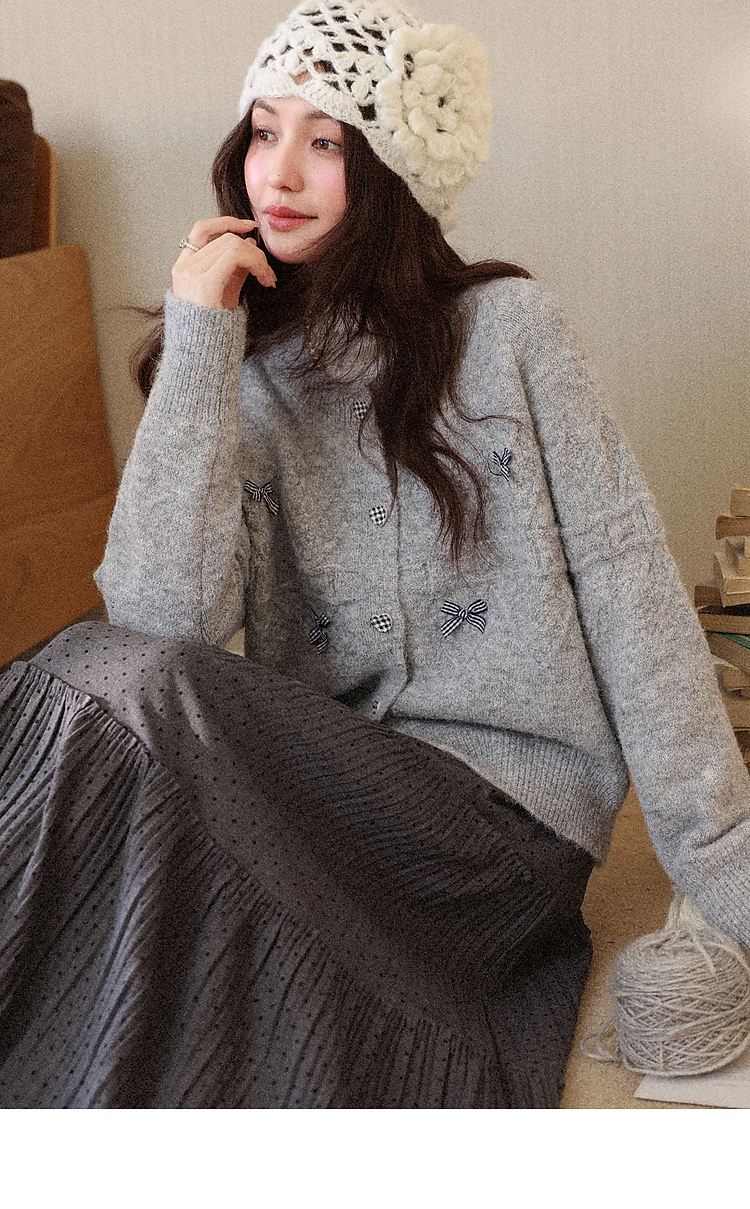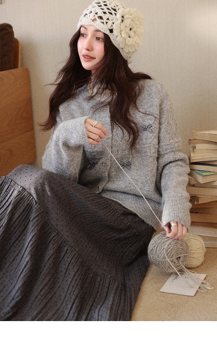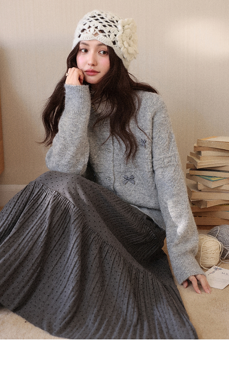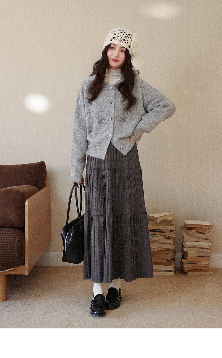 鹿向南「掠过心弦」灰色波点拼接半身裙秋冬季小众设计感A字裙女