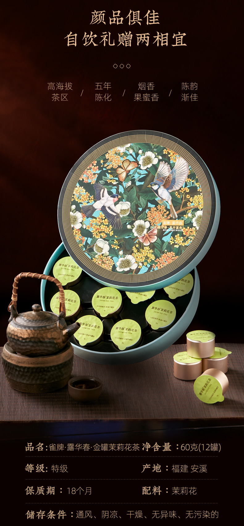 雀牌·露华春-金罐茶茉莉花茶礼盒60g
