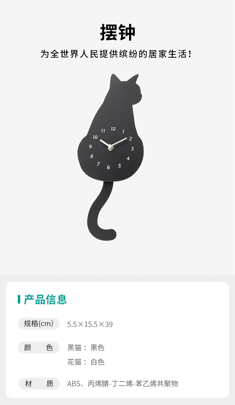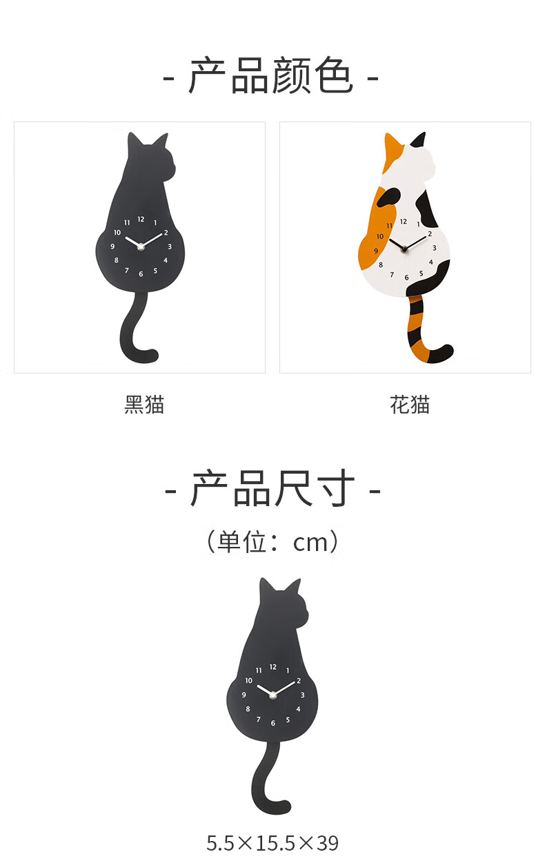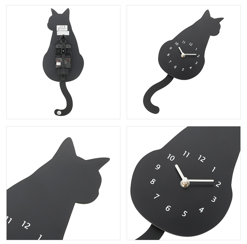 新款挂钟现代时尚挂墙简约卡通摆钟猫黑猫花猫时钟