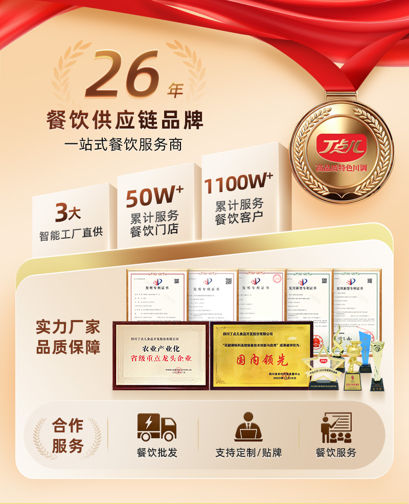 - 四川丁点儿食品开发股份有限公司,是集川菜调味料研发、生产、销售、服务为一体的现代化企业,专注为餐饮客户提供川菜调味解决方案。公司成立至今,服务了超百万家的餐饮门店以及连锁品牌。
