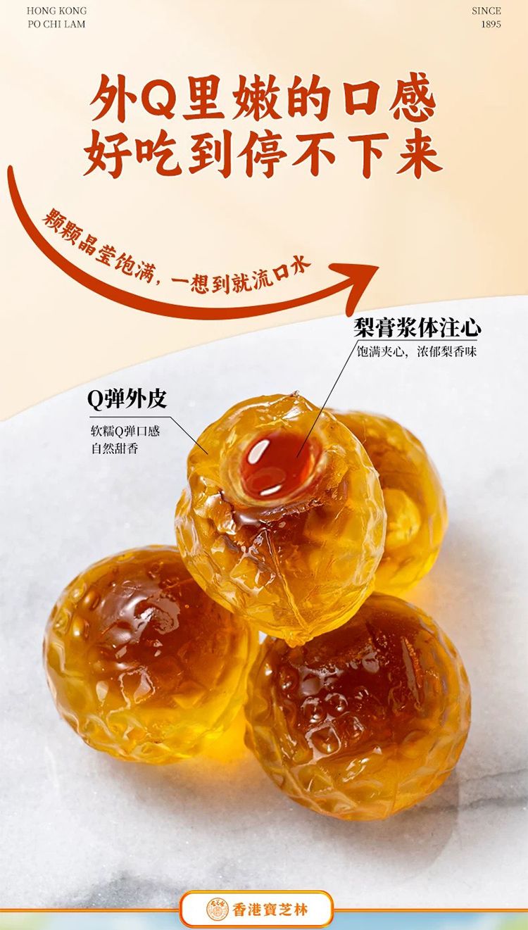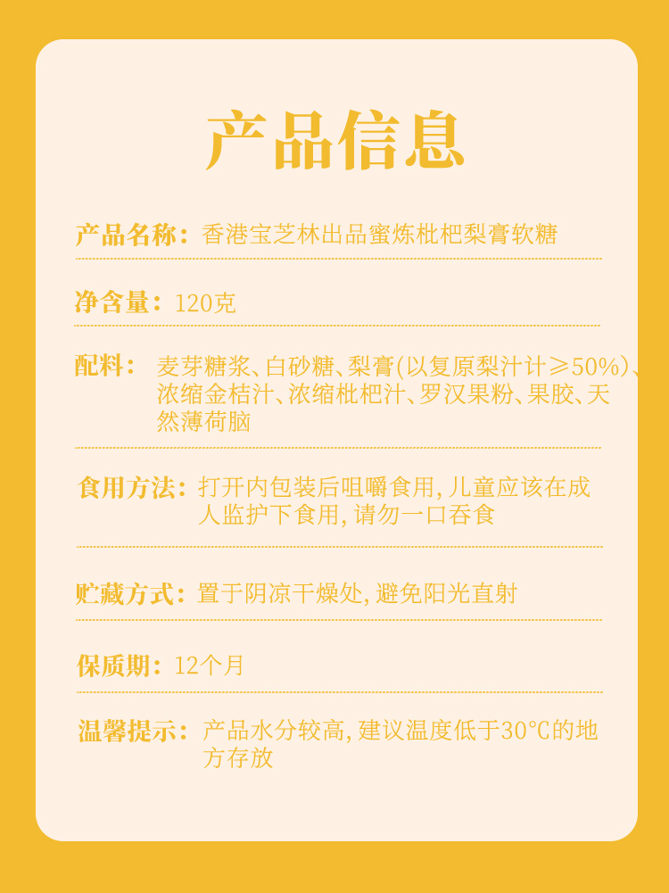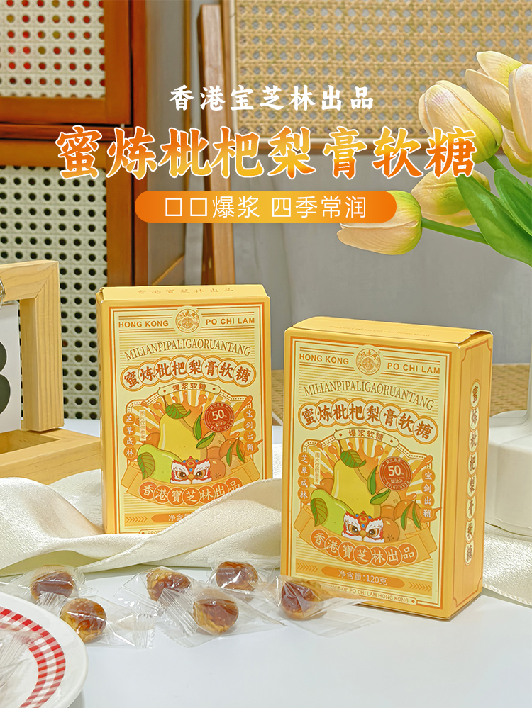 (5盒)香港宝芝林 蜜炼枇杷梨膏软糖120g/盒 天然润喉浓缩物:梨汁+金桔+枇杷+罗汉果 古法熬制 清新口气+咽喉按摩
