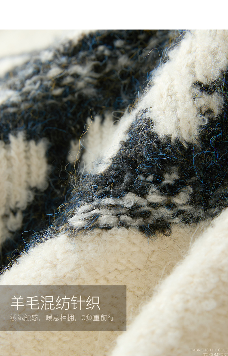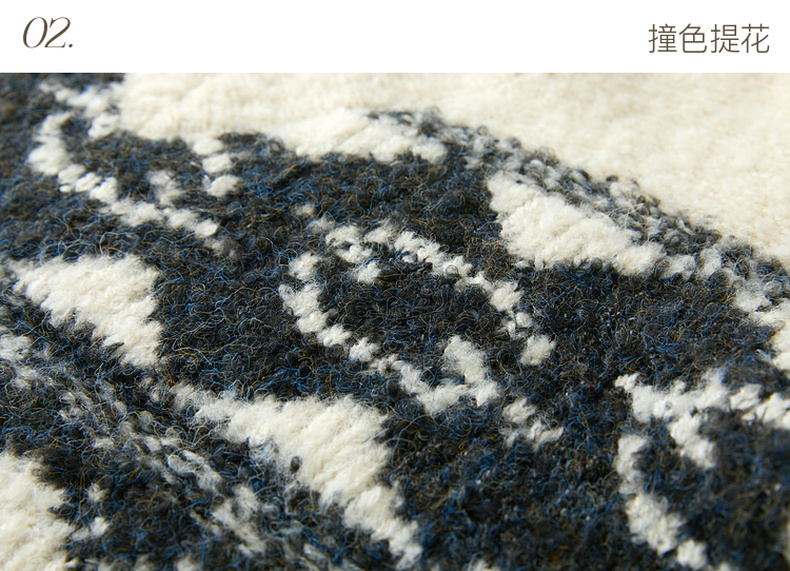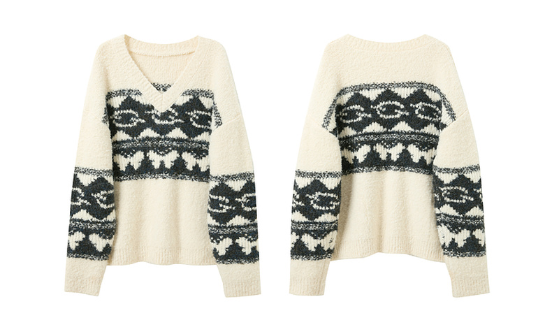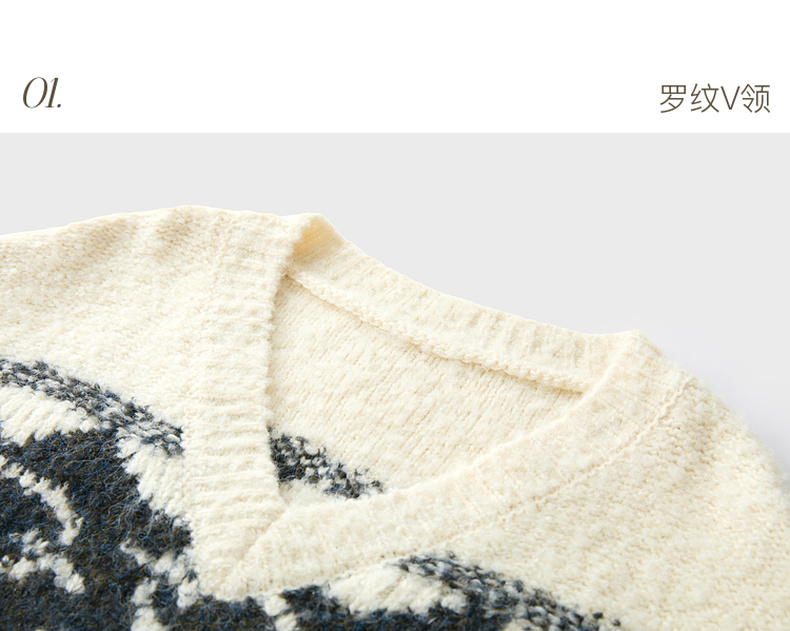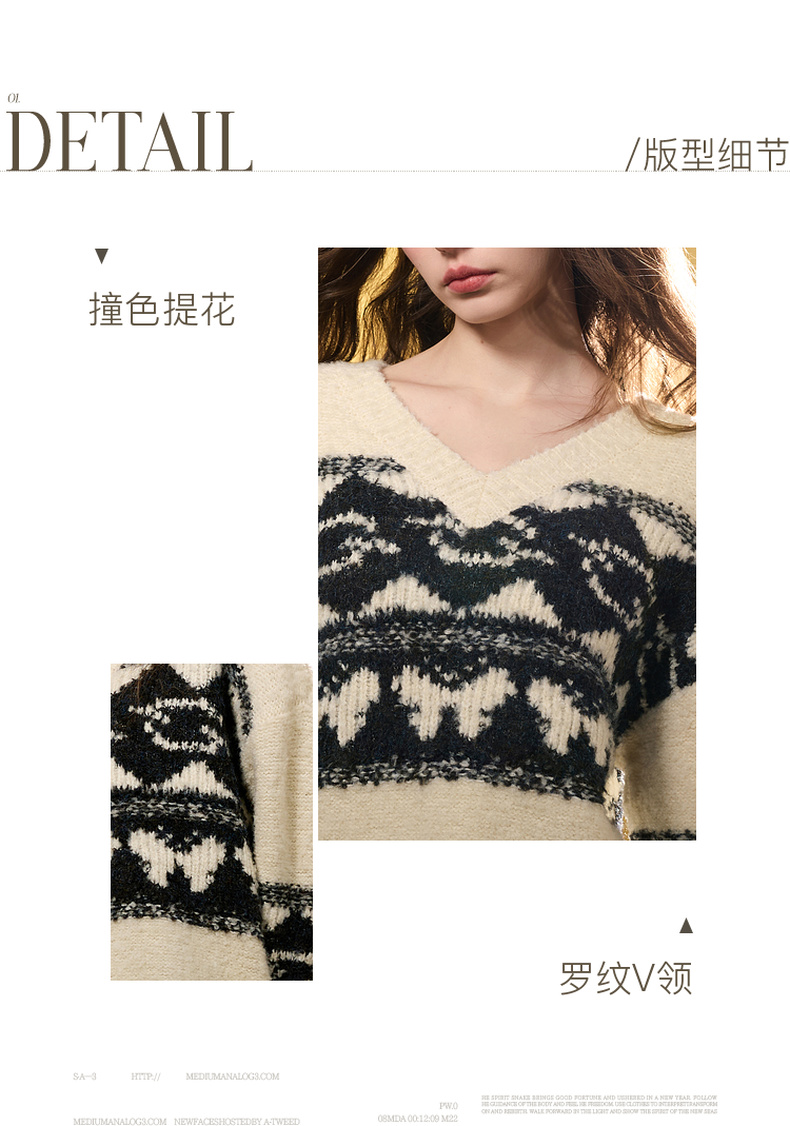 三彩2025冬季新款慵懒宽松V领针织衫长袖提花套头衫上衣显瘦百搭M