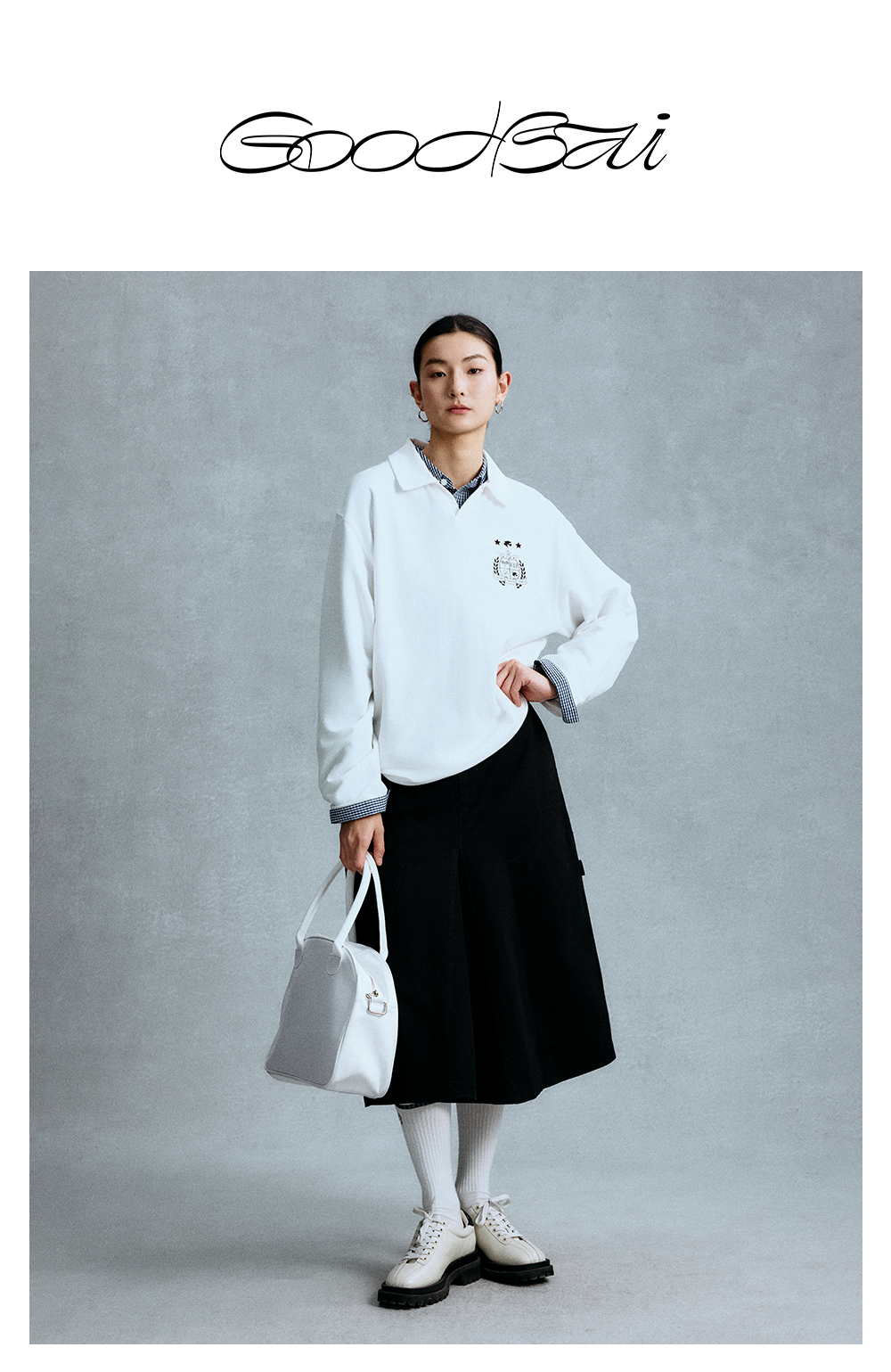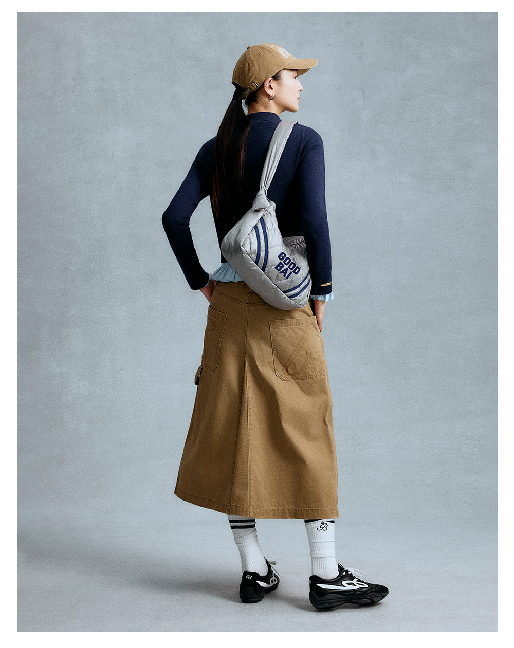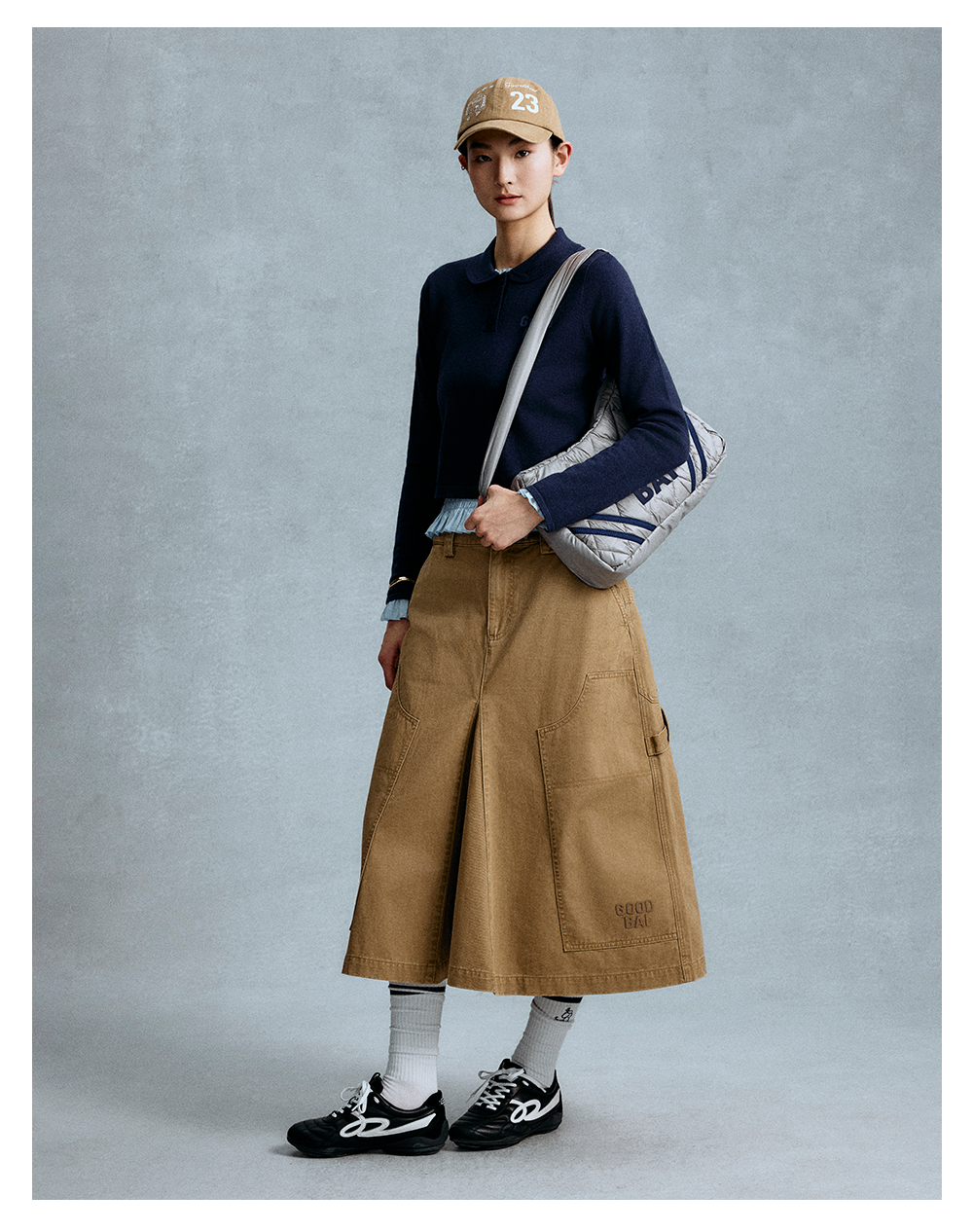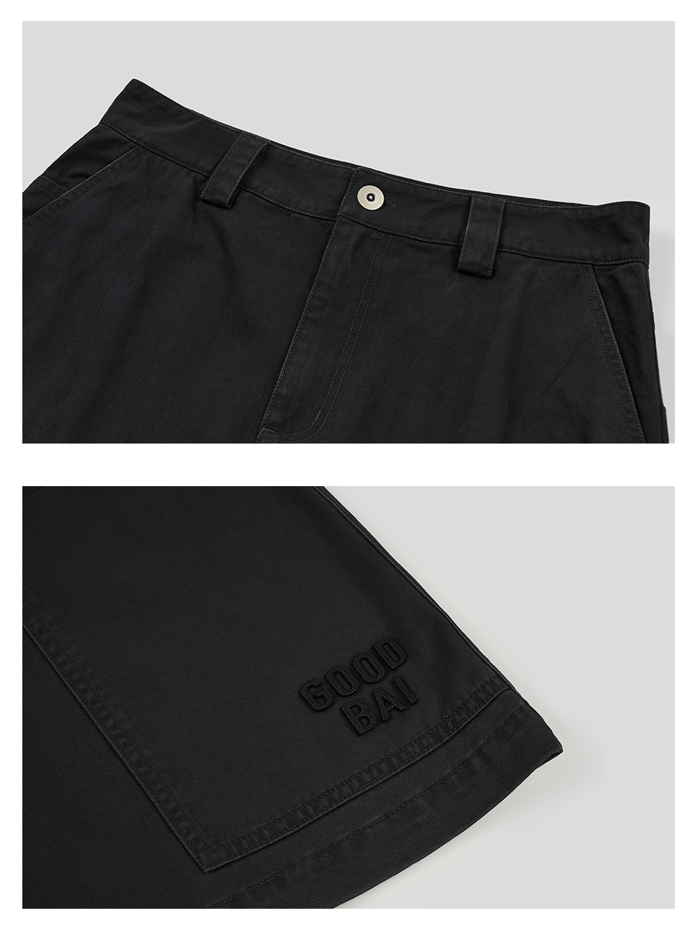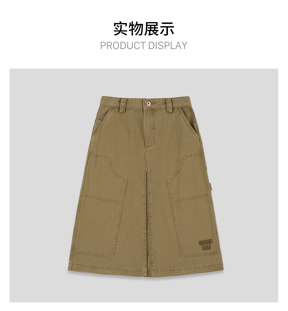 GOODBAI 粗体logo贴布绣工装A版拼接中长半身裙
