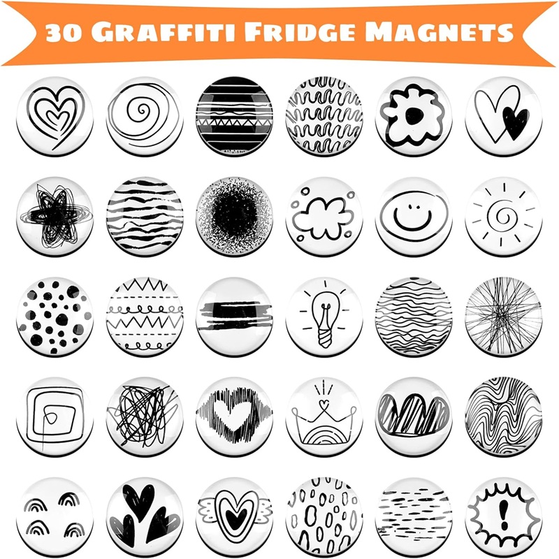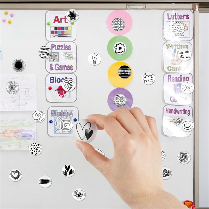 【30个/包】磁吸冰箱贴 艺术线条涂鸦白板磁性贴片 照片固定黑板强力磁贴 3cm
