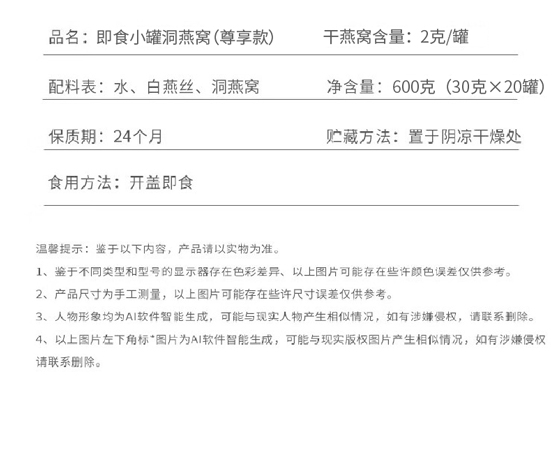 北京同仁堂 即食小罐洞燕窝 (尊享款)600g (30g*20瓶/盒) (1:3)