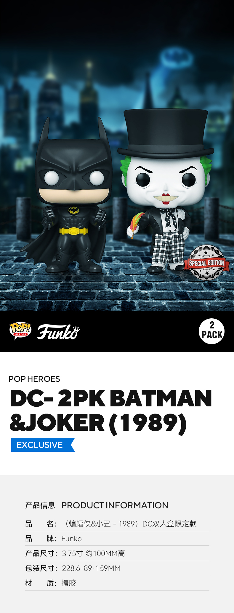 Funko POP! Heroes DC 2PK Batman&Joker 美漫 DC英雄1989蝙蝠侠&小丑限定款双人盒公仔手办摆件 58447