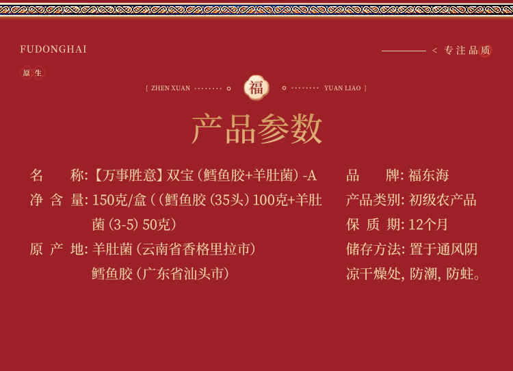 福东海万事胜意双宝(鱈鱼胶+ 羊肚菌)-A 150克/盒 特渠专款—rxs