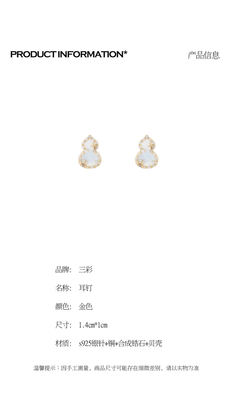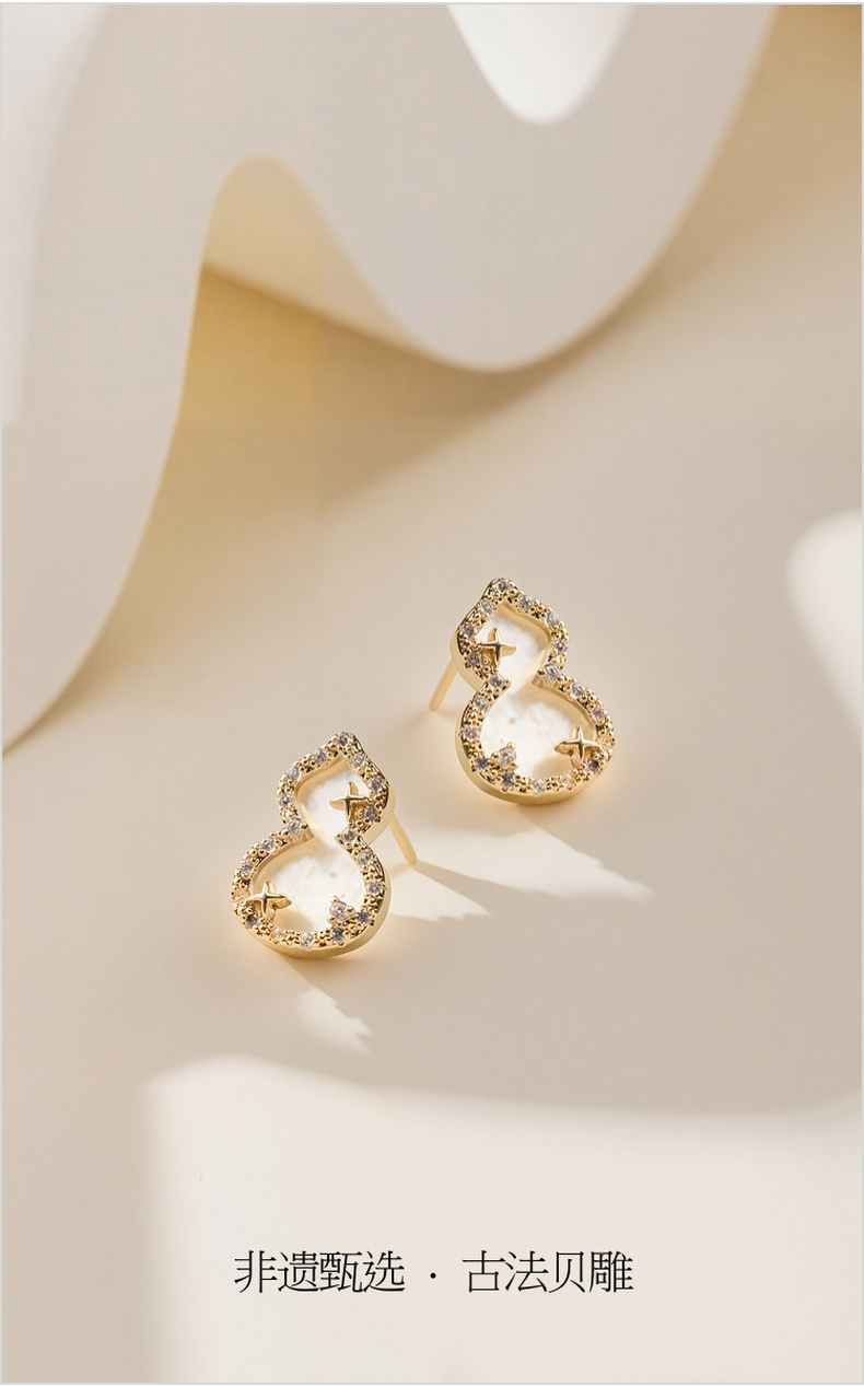 三彩2026新款国风贝壳葫芦耳钉s925银针轻奢福禄镶锆通勤小众
