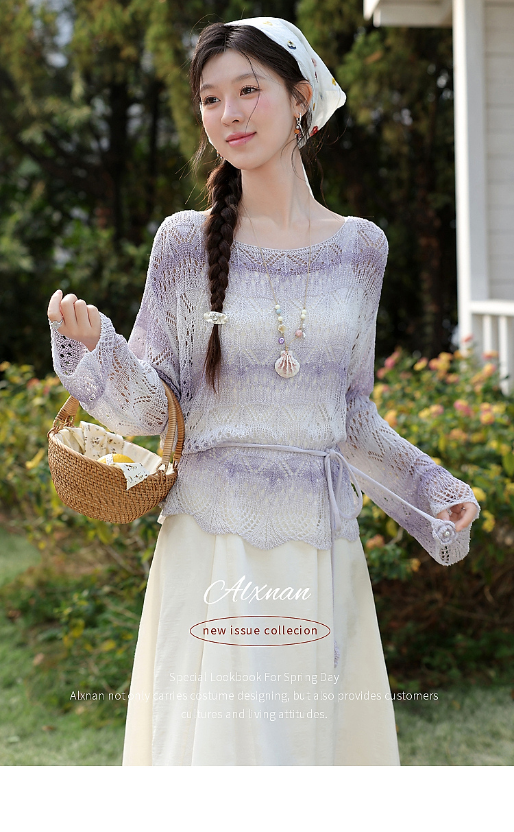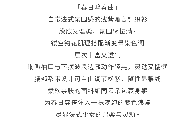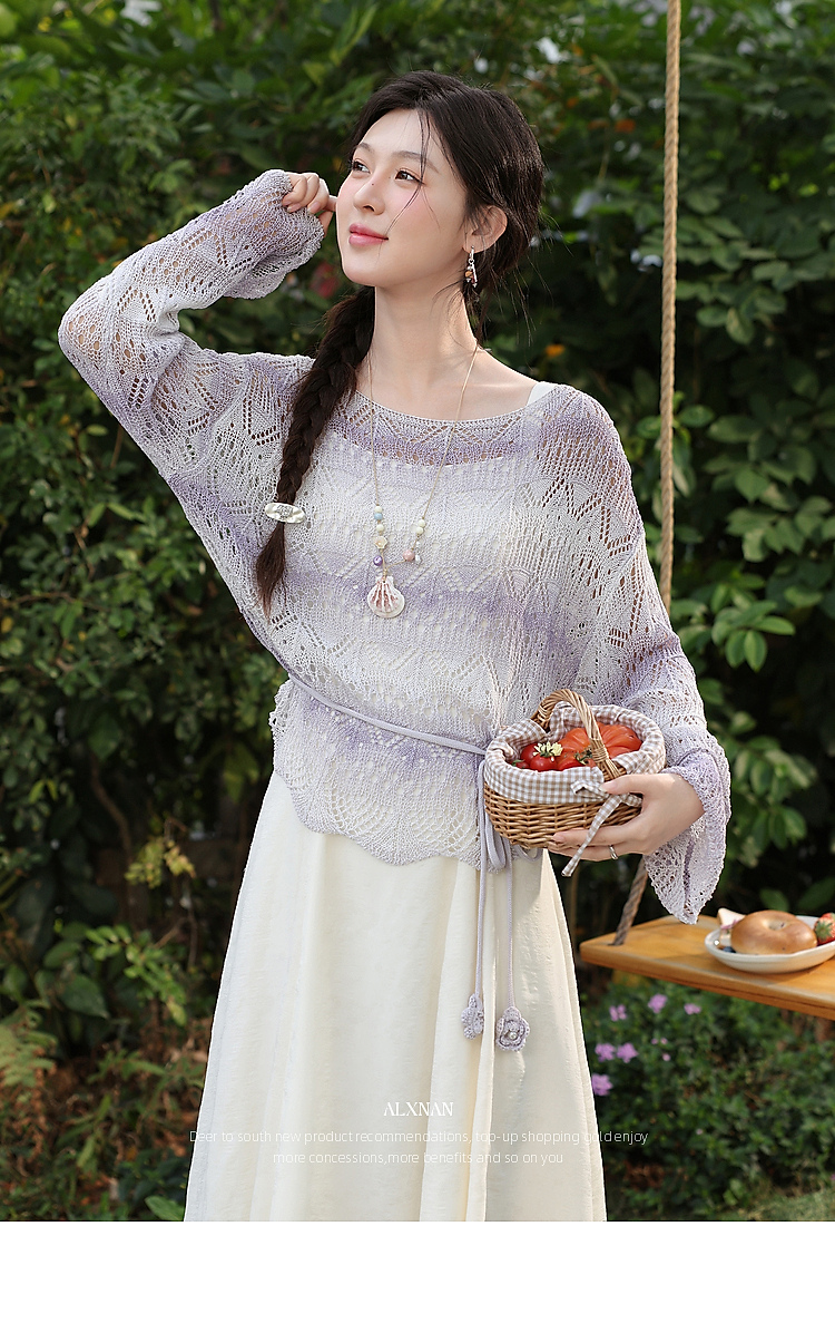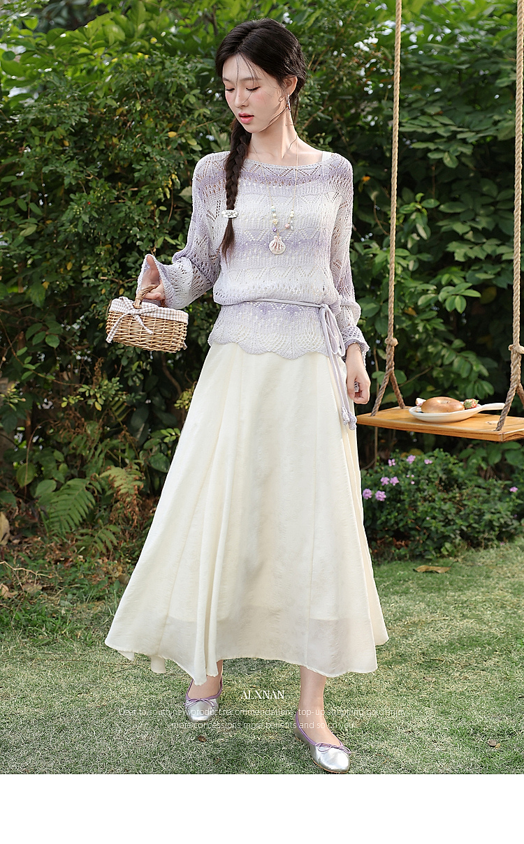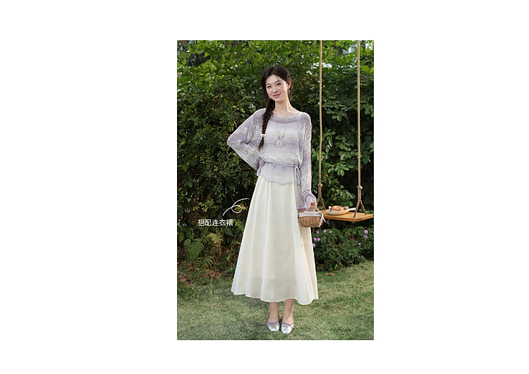 鹿向南「花漾漫语」浅杏色连衣裙紫色针织衫两件套春季新款套装女