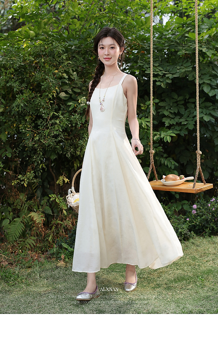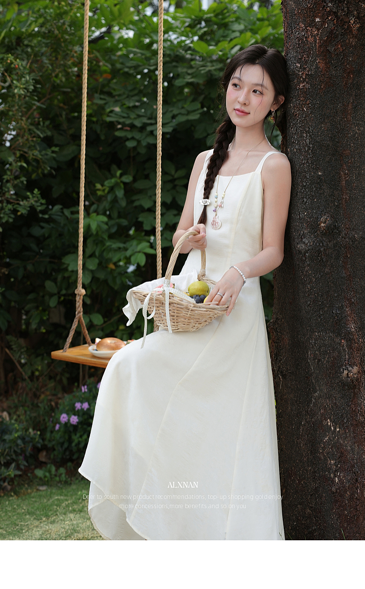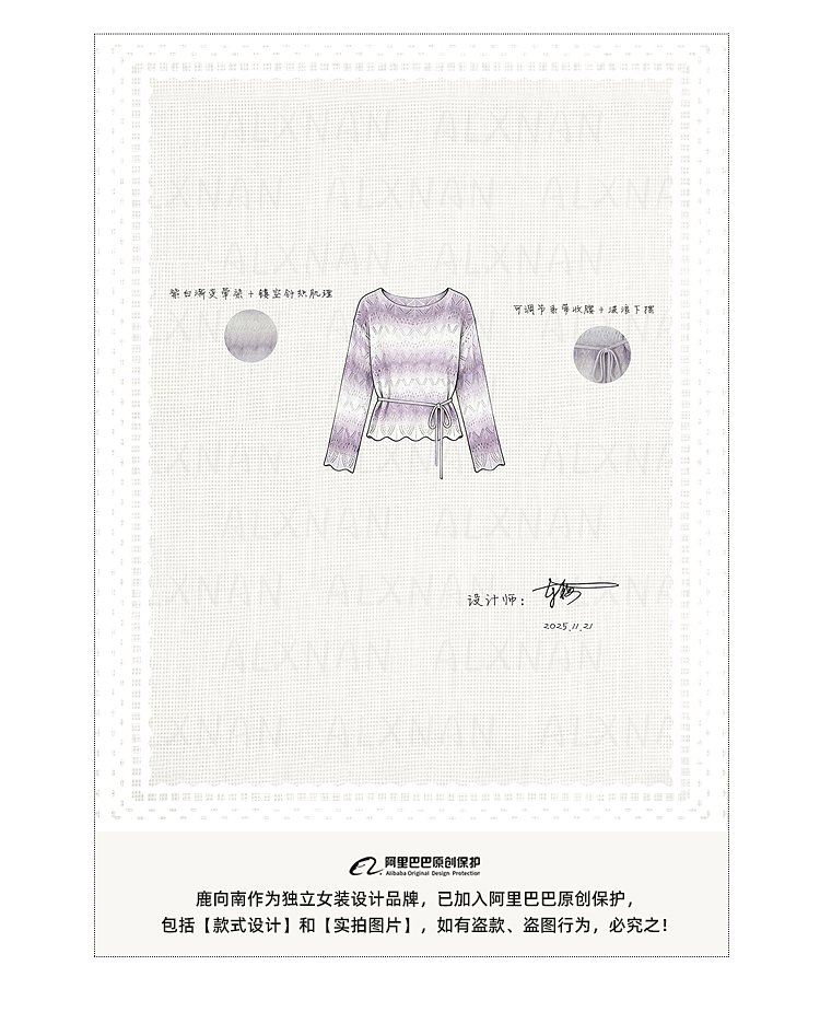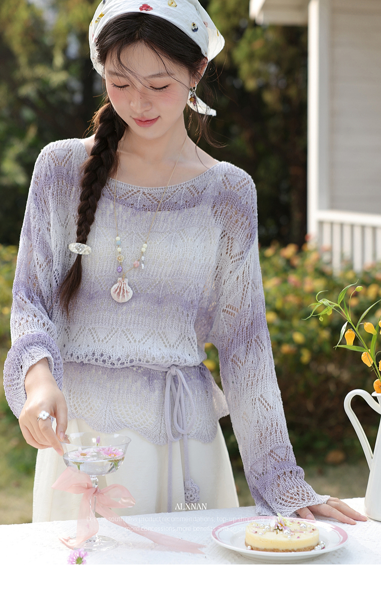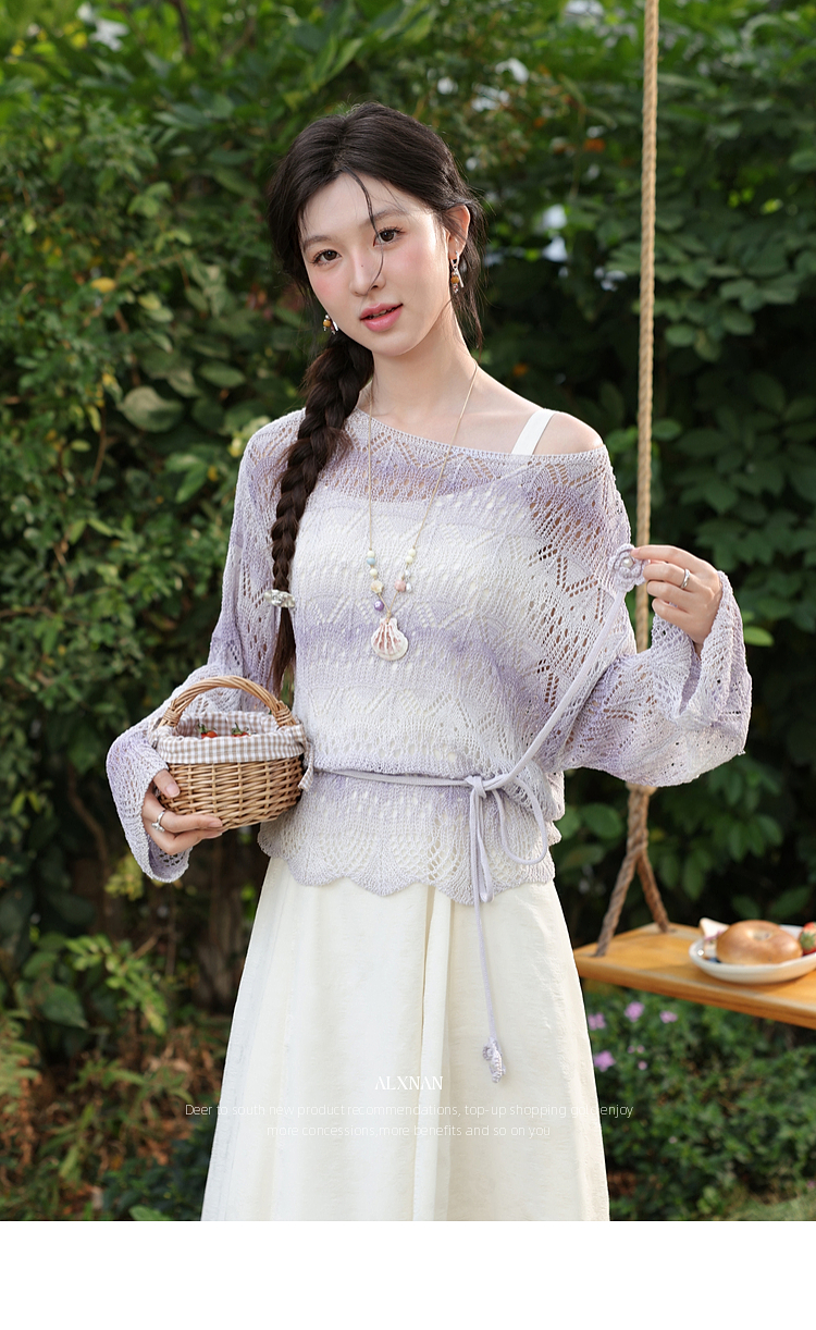 鹿向南「花漾漫语」浅杏色连衣裙紫色针织衫两件套春季新款套装女