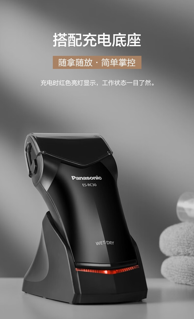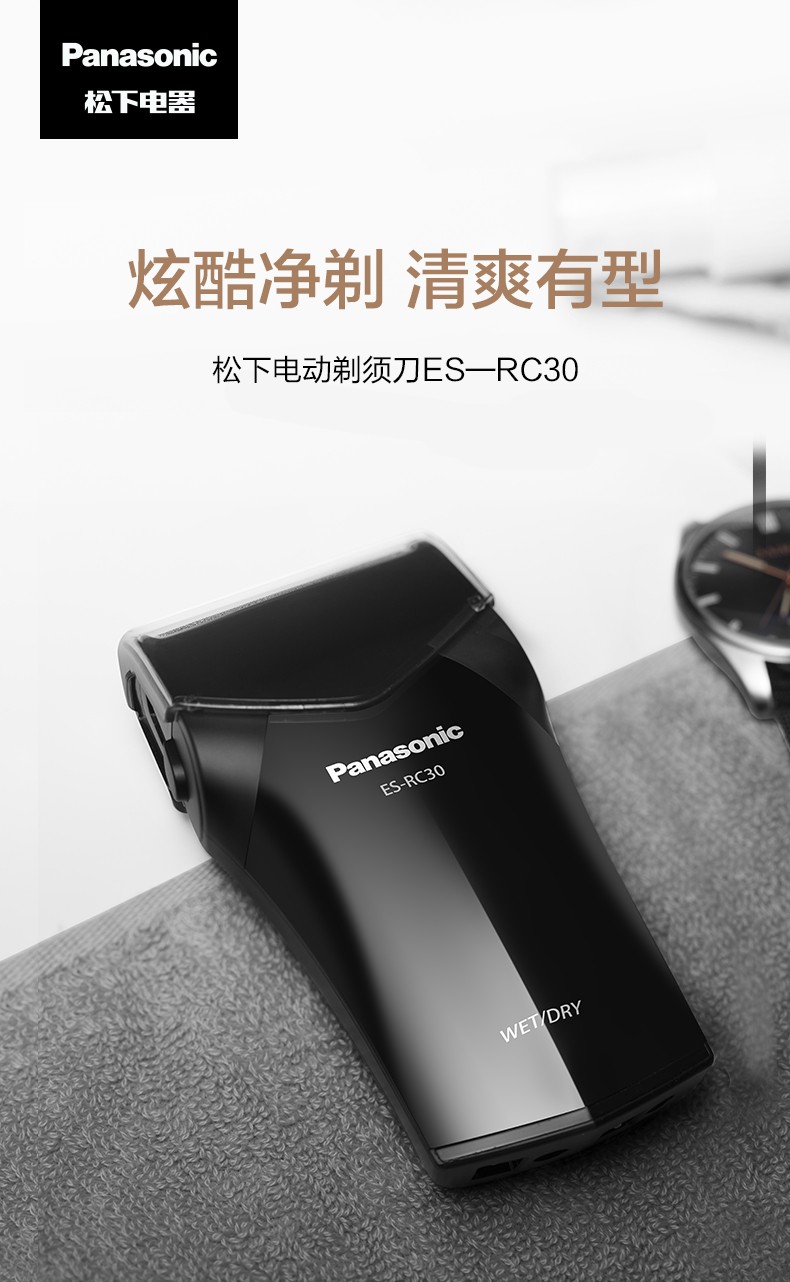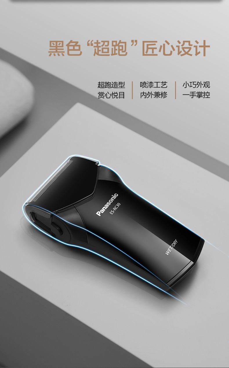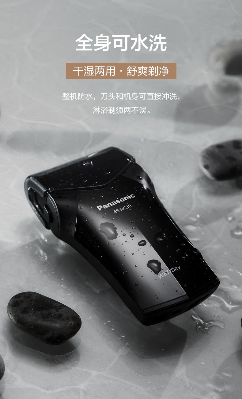 松下(Panasonic)剃须刀电动男士刮胡刀全身水洗刀网细腻贴合面部丝滑充电式刮胡子刀 ES-RC30-K405 丝滑亲肤利落剃须 礼盒装