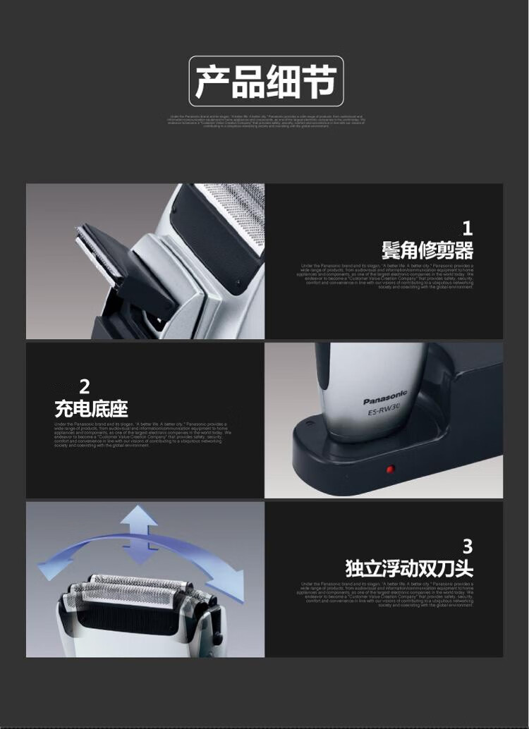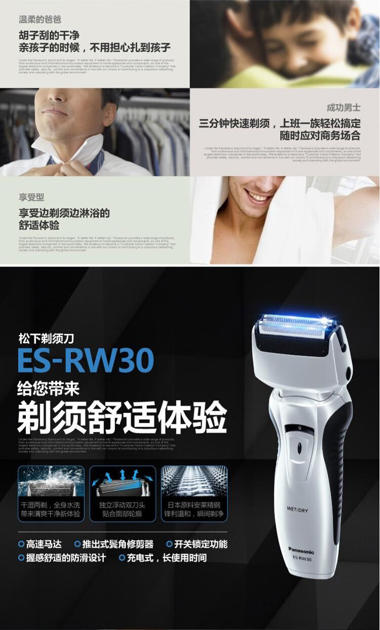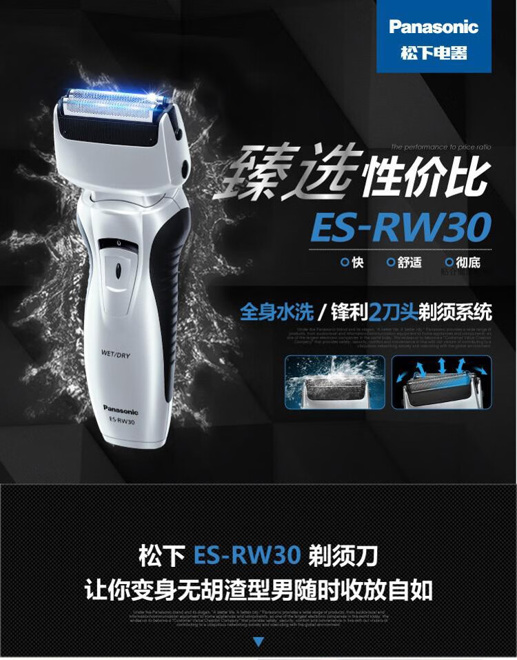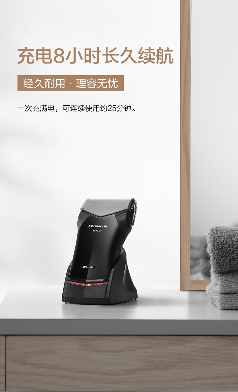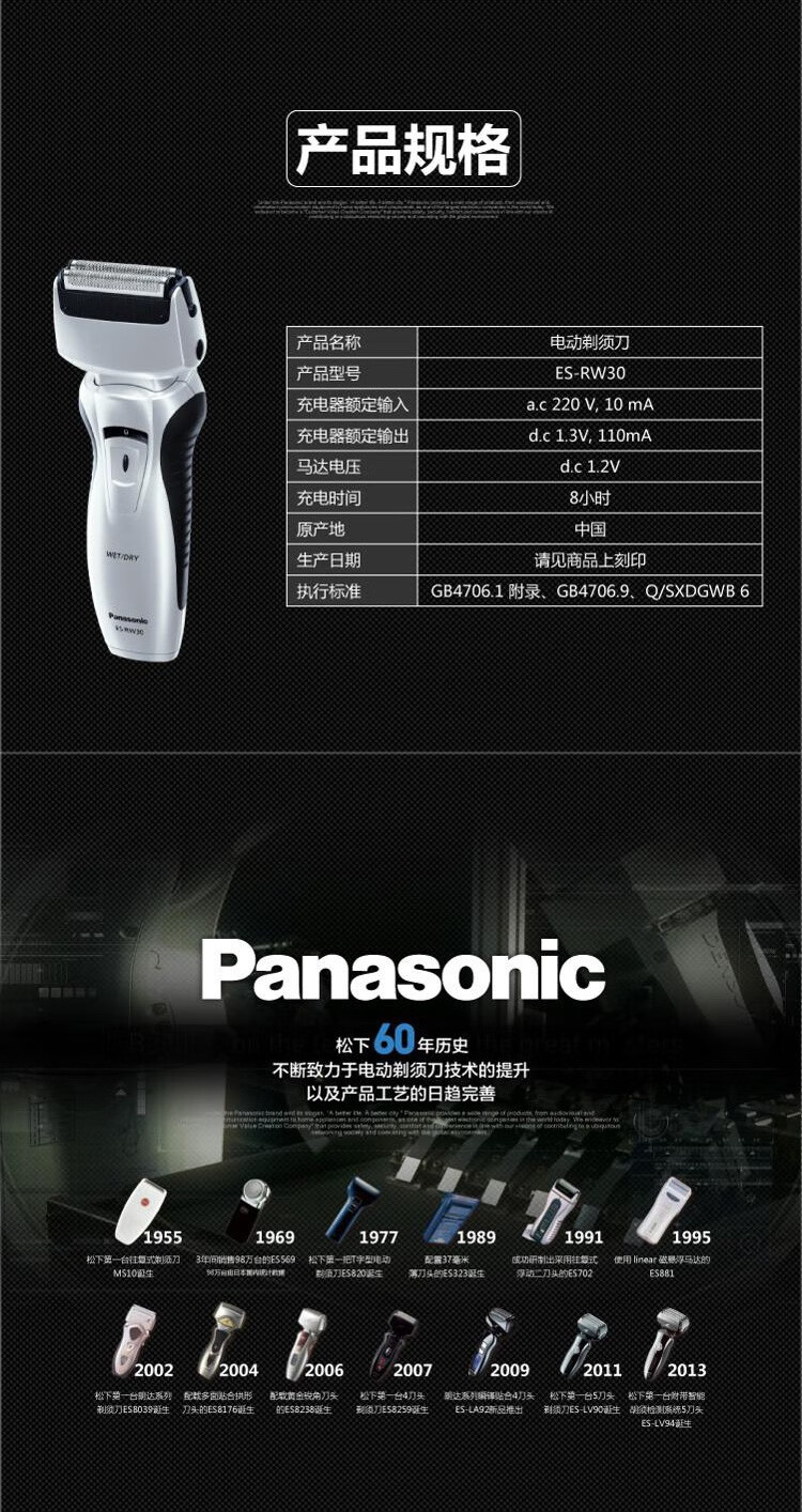 松下(Panasonic)剃须刀电动男士刮胡刀全身水洗刀网细腻贴合面部丝滑充电式刮胡子刀 ES-RC30-K405 丝滑亲肤利落剃须 礼盒装