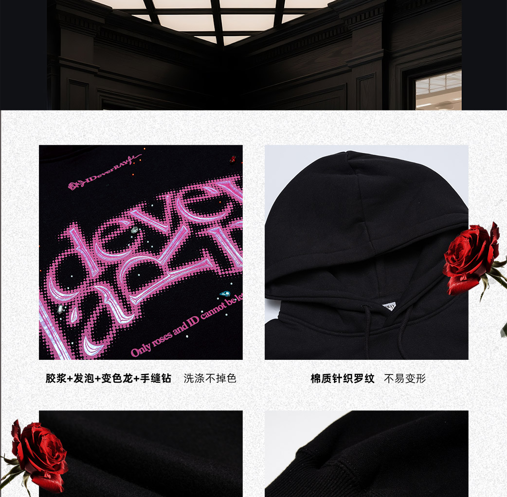 【限时福利】IDEVERRAY原创秋冬新款高级感工艺情侣表白送礼印花烫钻连帽卫衣