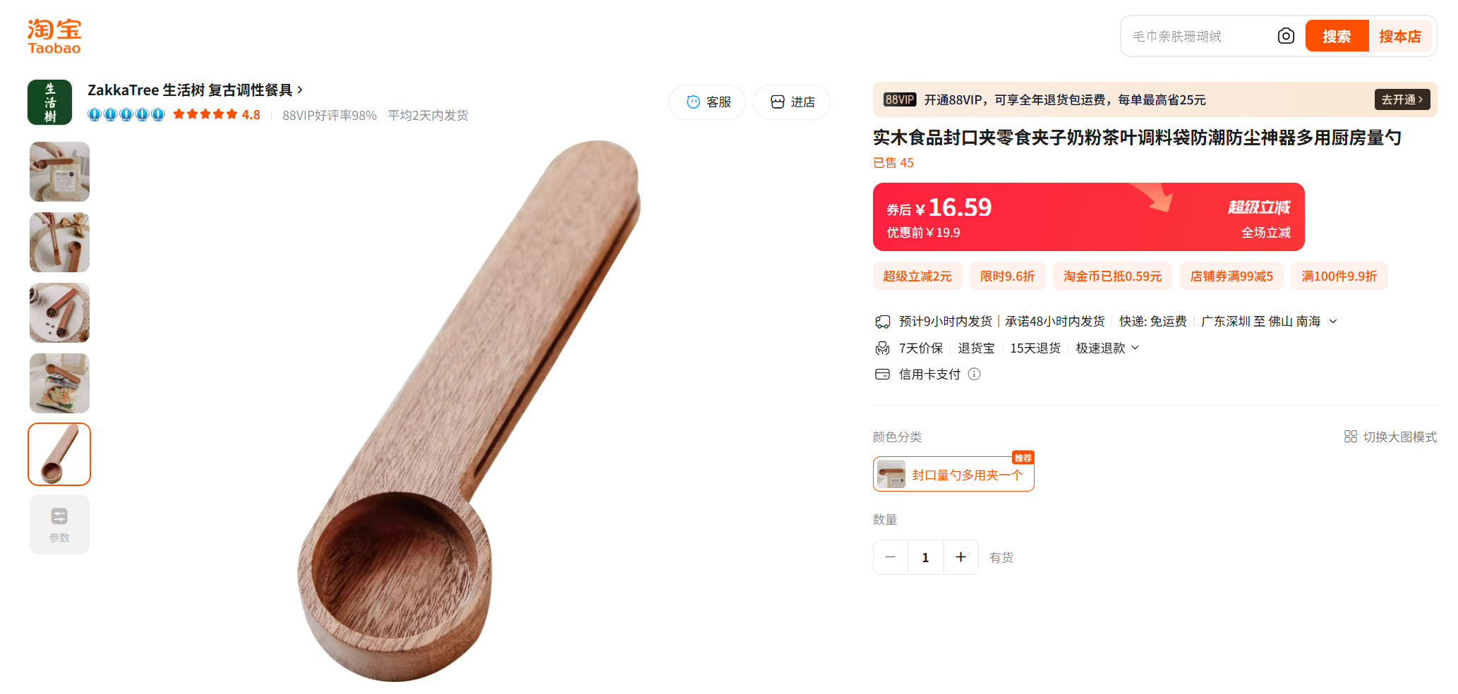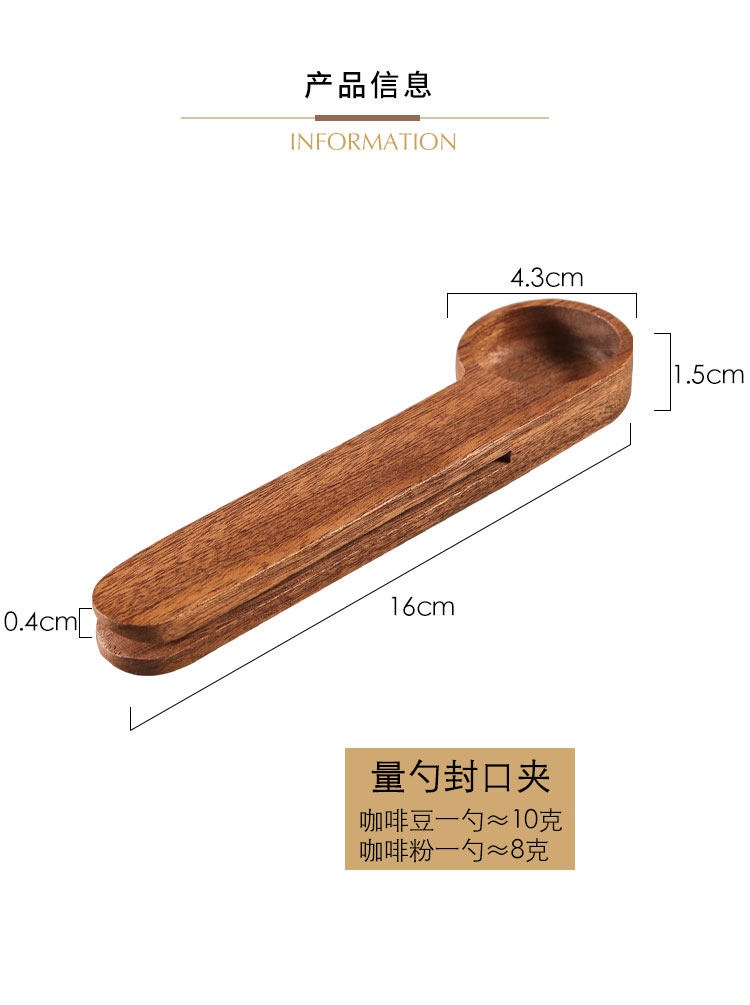 食品咖啡实木封口量勺多用夹 可夹封零食,开封包装等