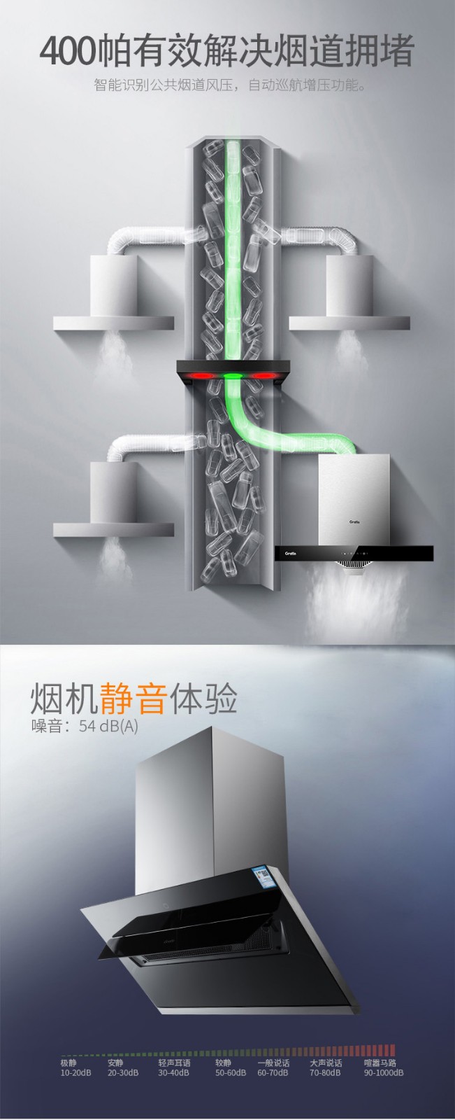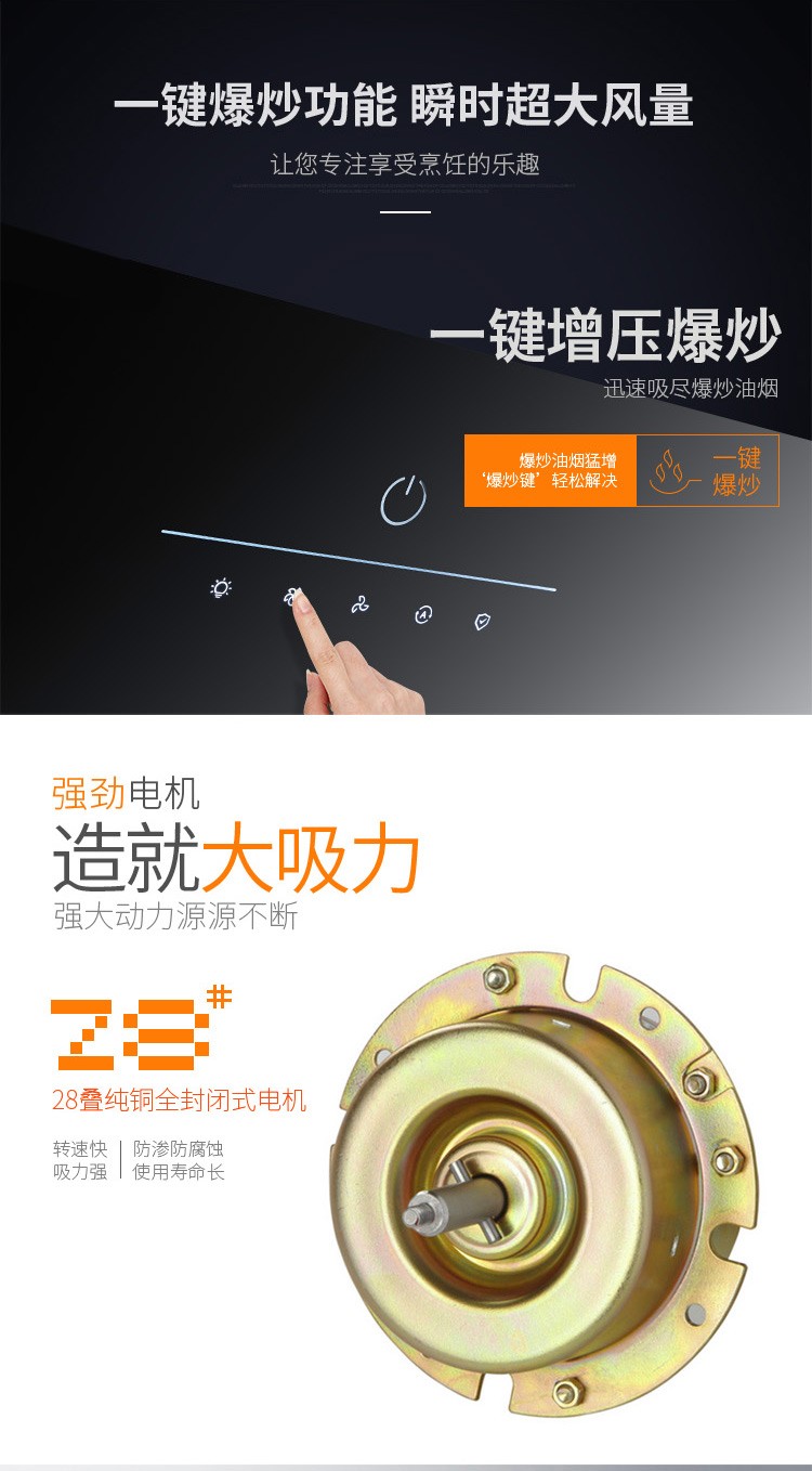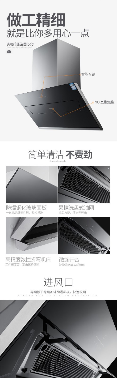 格瑞泰CXW-220-ED805高端全自动家用强力大风量无缝集烟腔油烟