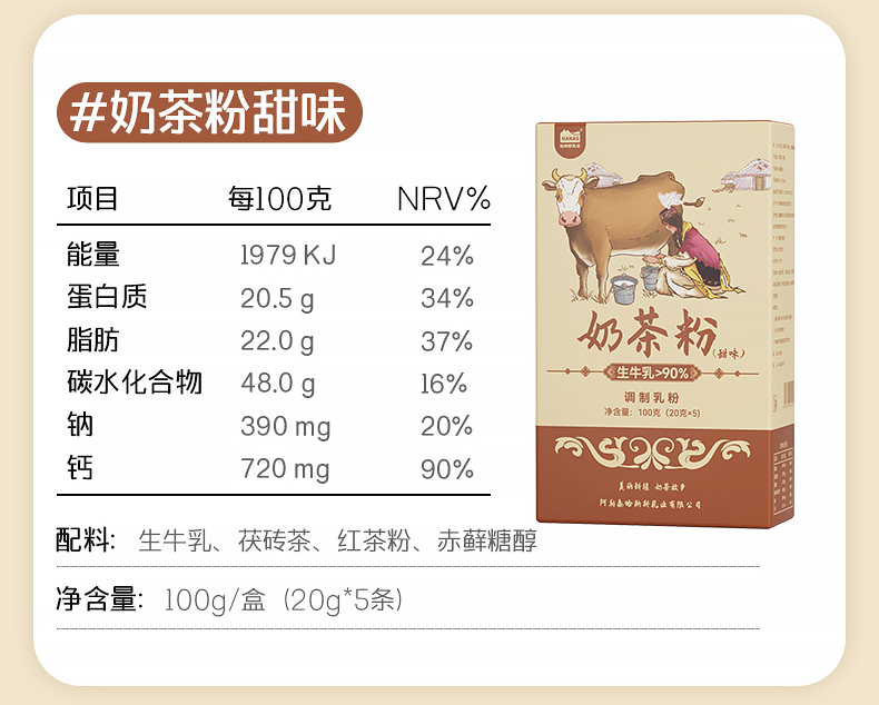 【乐刻甄选】哈纳斯新疆鲜奶奶茶粉100g*3盒小包装