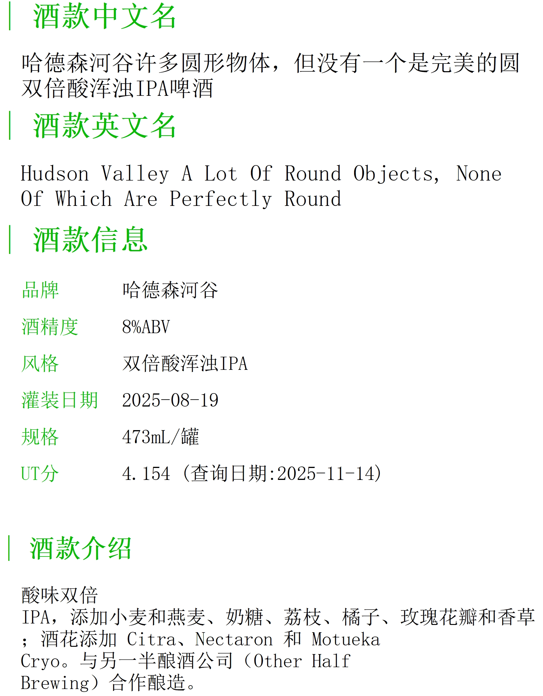 哈德森河谷许多圆形物体,但没有一个是完美的圆双倍酸浑浊IPA啤酒