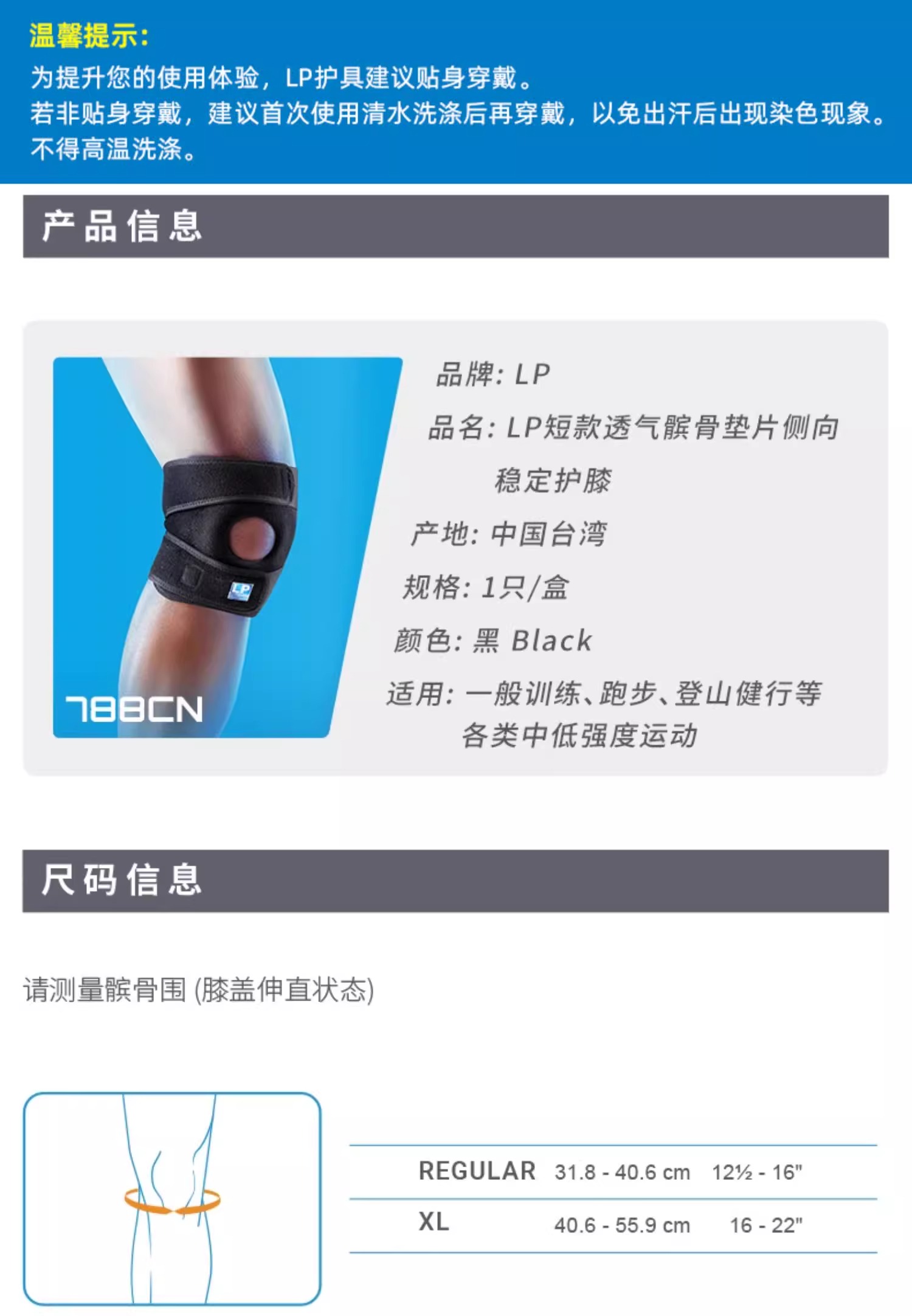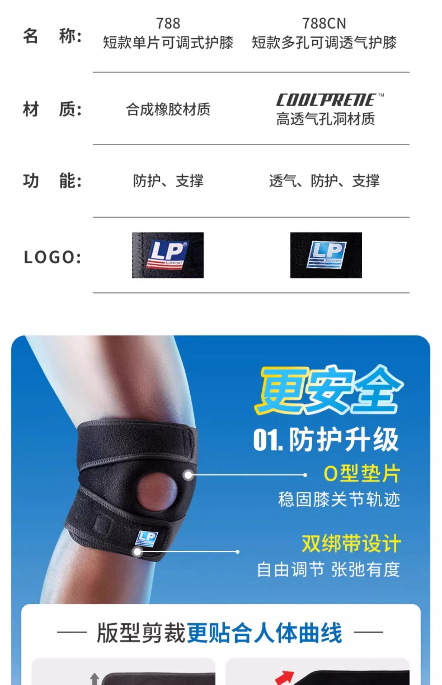 【LP】Coolprene可调式髌腱稳定透气运动护膝 单只装 788CN