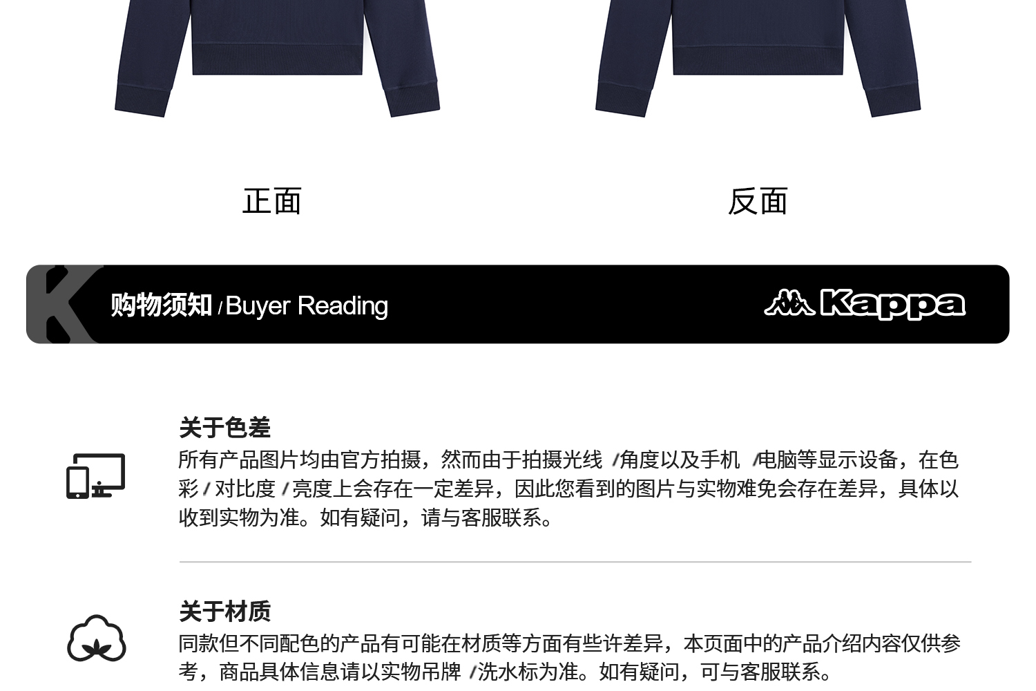 Kappa卡帕背靠背新款半拉链运动卫衣女款纯棉休闲针织套头衫上衣K0F22WT30